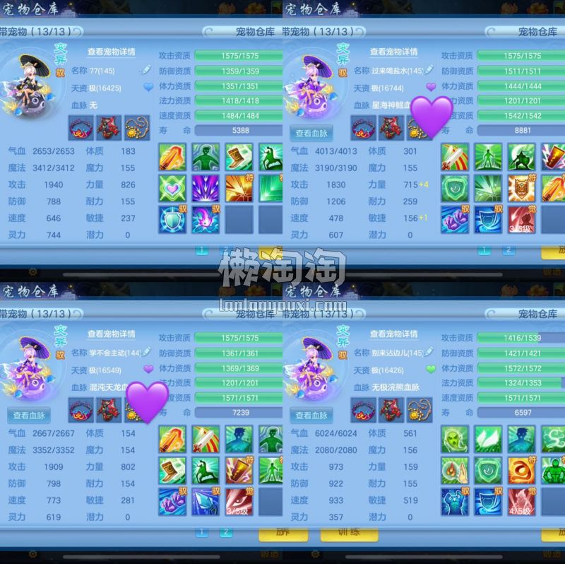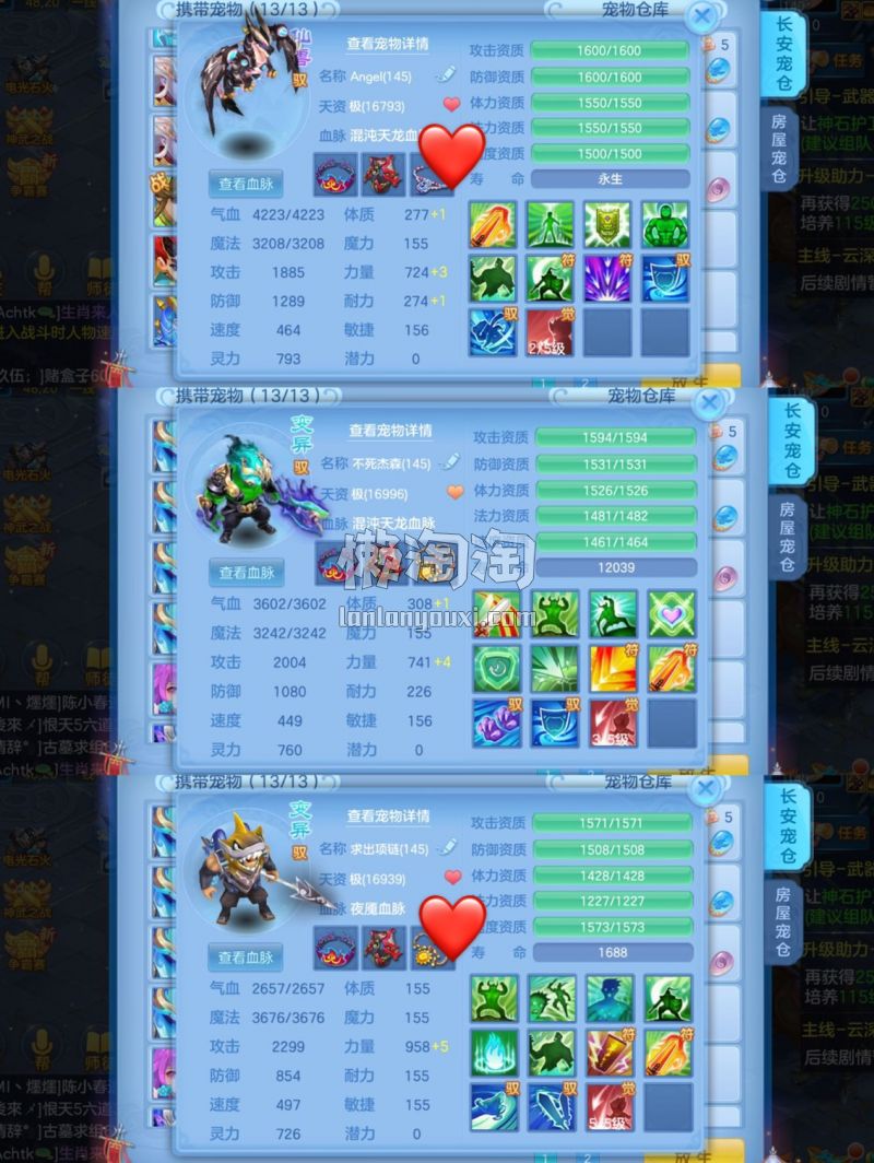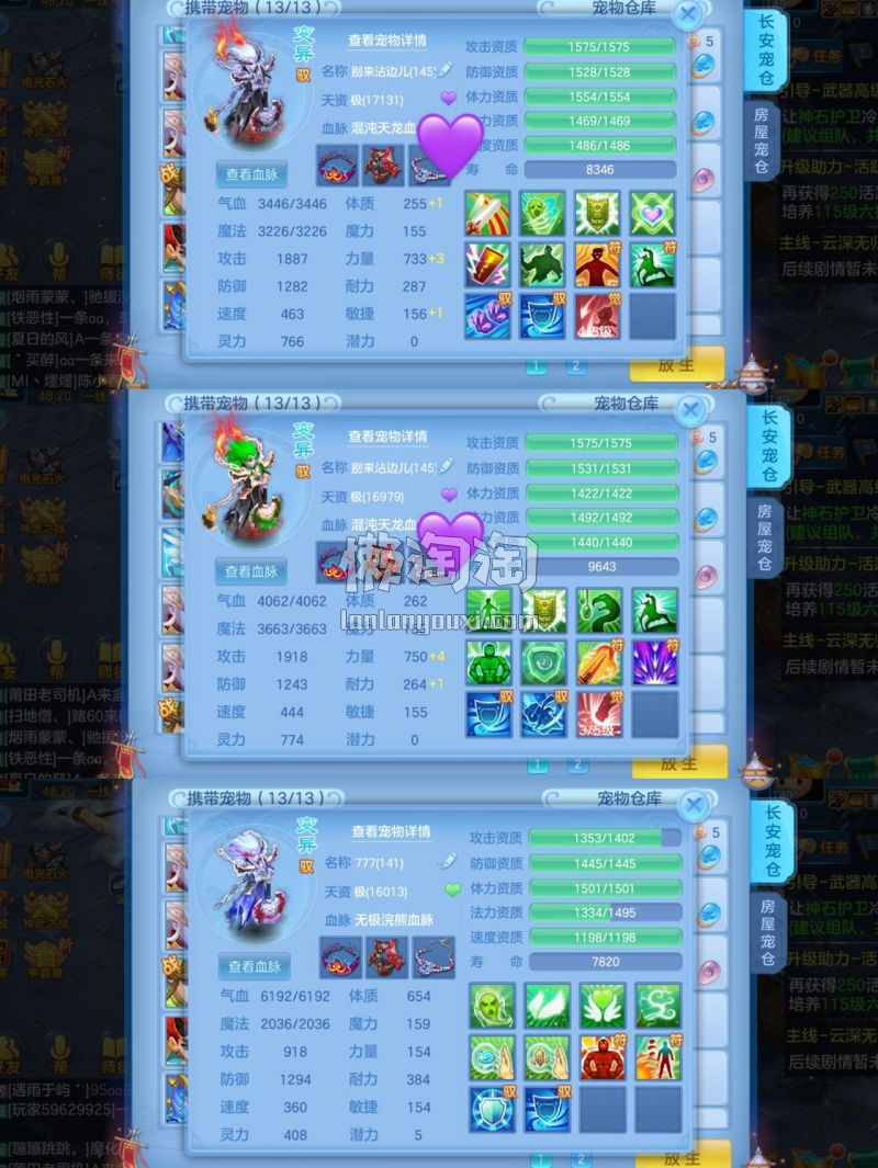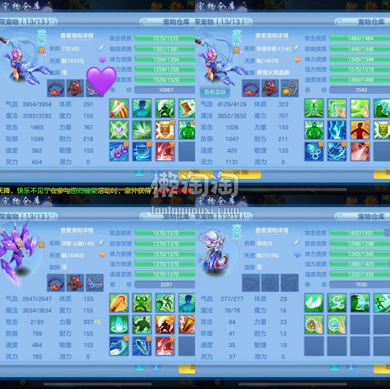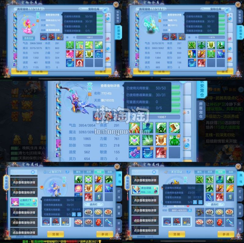 仙兽19个6技能,10只满兽魂,经验榜47名,修炼榜52名,内胆神海景房,3个坐骑3只宠皮肤,带1176金80万银,战盟手机再用