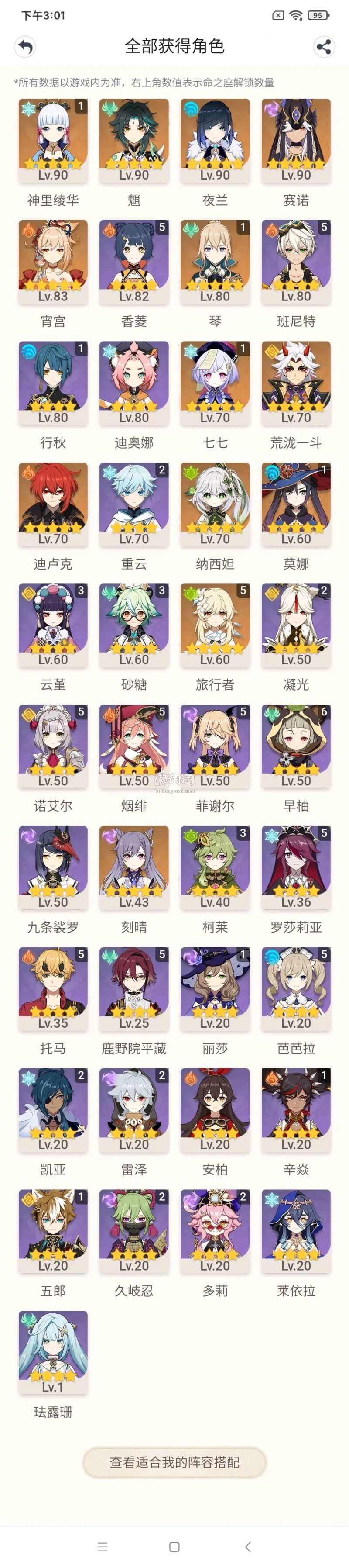 邮箱未绑定 56级 18金 1命神里绫华 荒泷一斗 魈 纳西妲 宵宫 赛诺 夜兰 1命琴 1命七七 迪卢克 1命莫娜 刻晴 赤沙之杖 和璞鸢 原神G1637