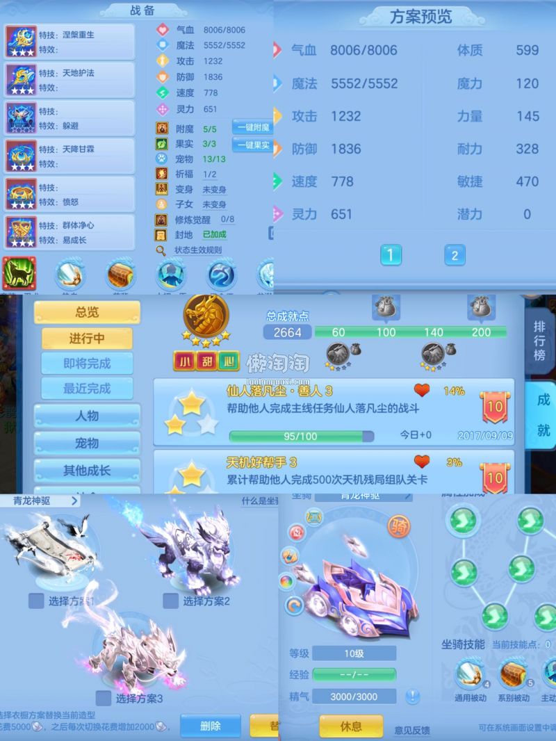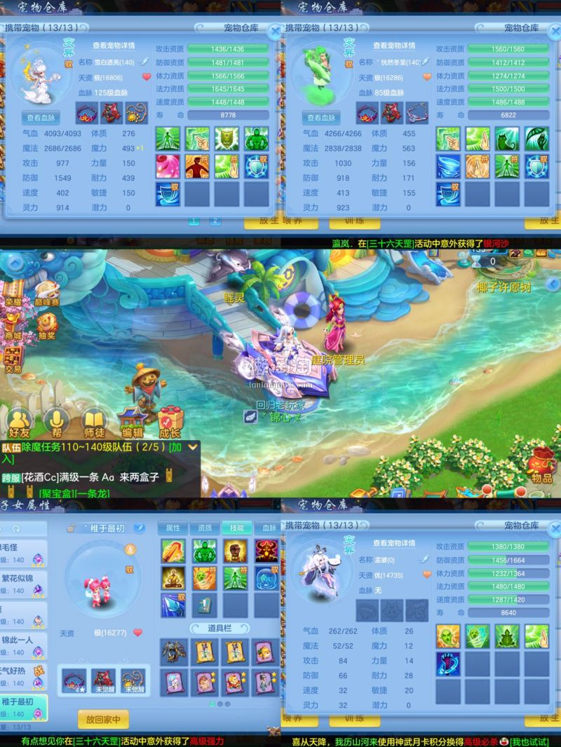13个6技能宝宝,4只满兽魂,海景房,4个高级坐骑,带1100金币,2980邮箱手机再用