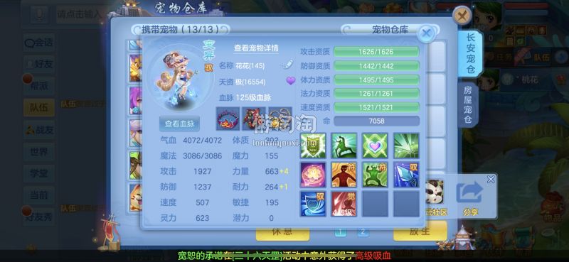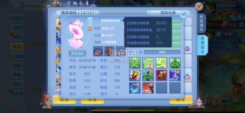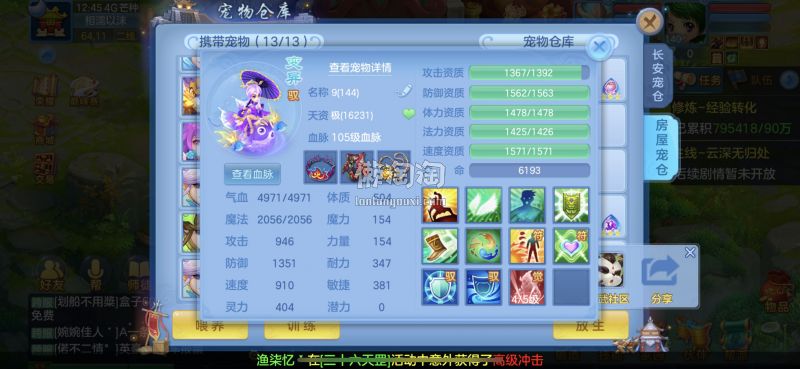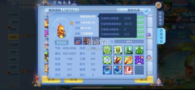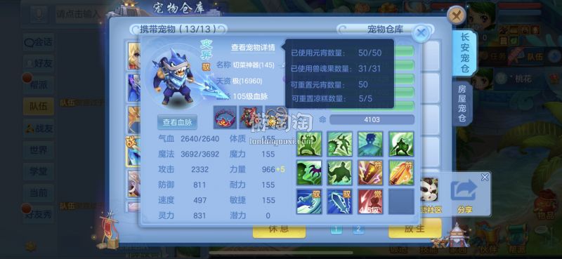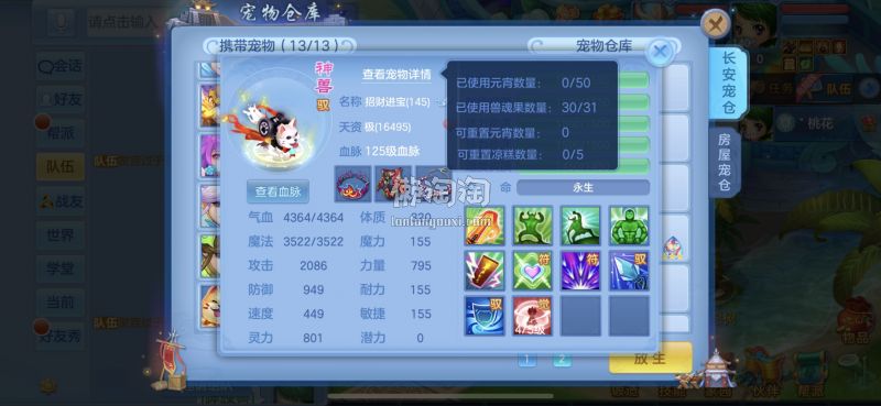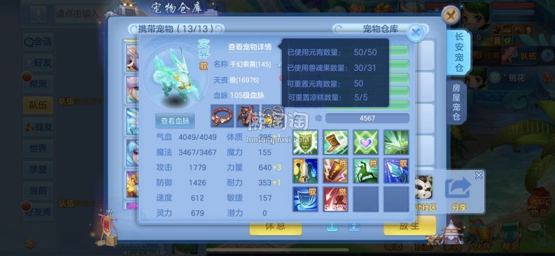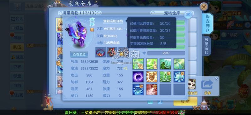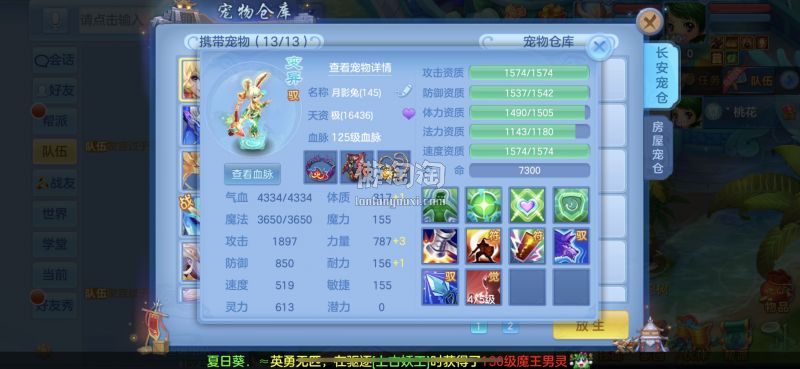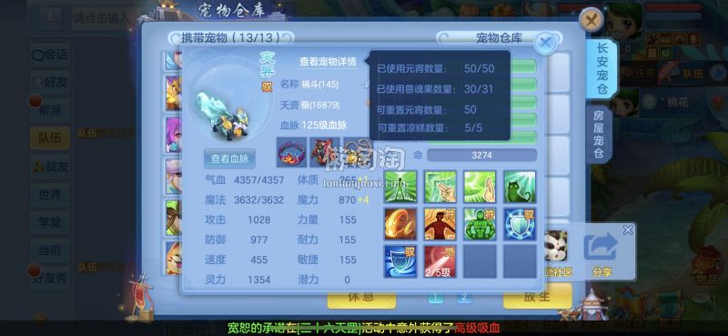 140满级满经验双14段带星武侯 1500防御1550灵,13个满兽魂,pk宝宝应有尽有。