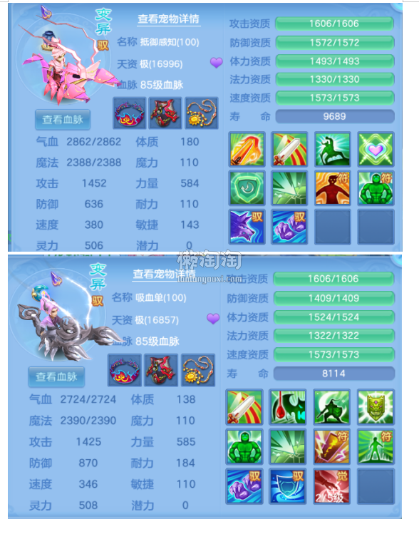 95天策装备小满配,三套加点两套宝石。只需要追求神装,三红腰带鞋子,上手可打架,7个满兽魂,6个皮肤,自带神兽,2个特殊宝宝自带神器腰带鞋子。上手可追神器武器,可用护肤2页,物理和法均可玩