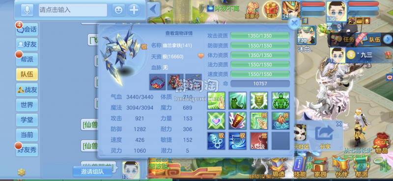 3仙靓号,2神多只6特殊五,仓库资源嘎嘎多,JP护符多到用不完,懒得截图了,驭兽技能全金开满。带庄园海景,完美子女,2980邮箱三年换绑。