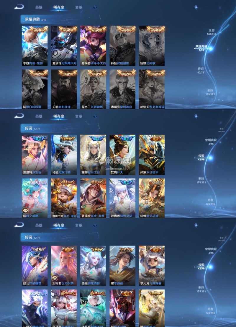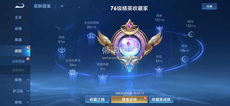 383皮肤4典藏42传说135史诗22万贵族不要拿we 区和无法二改的号和我的比,比价不回,