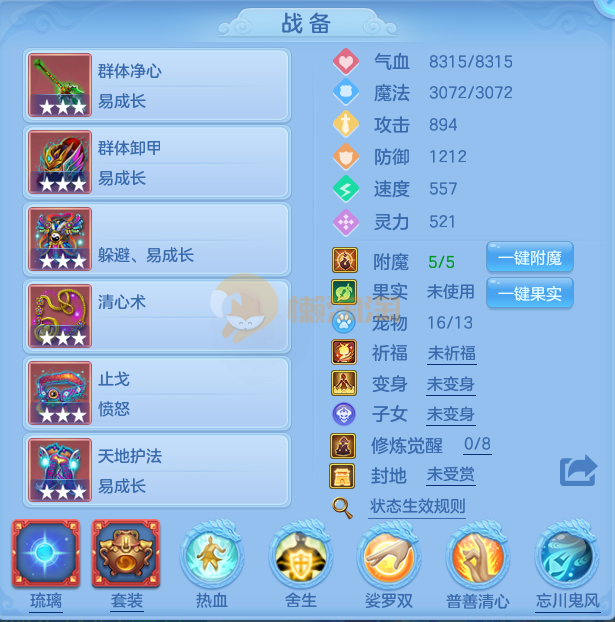 志气冲天95男普陀,1仙,12段,特技齐全,易群净心武器,躲避易衣服,愤怒止戈腰带,11个满兽魂, 紫金炉,九头鸟天赋,2980邮箱7天换绑无双重