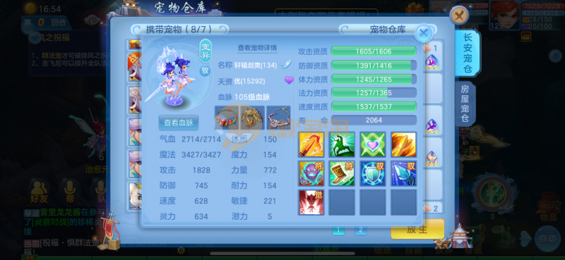 1200 2020区135飞升男佛门 装备宝宝齐全 七个六技能 全身10段,无双重认证 七天换绑