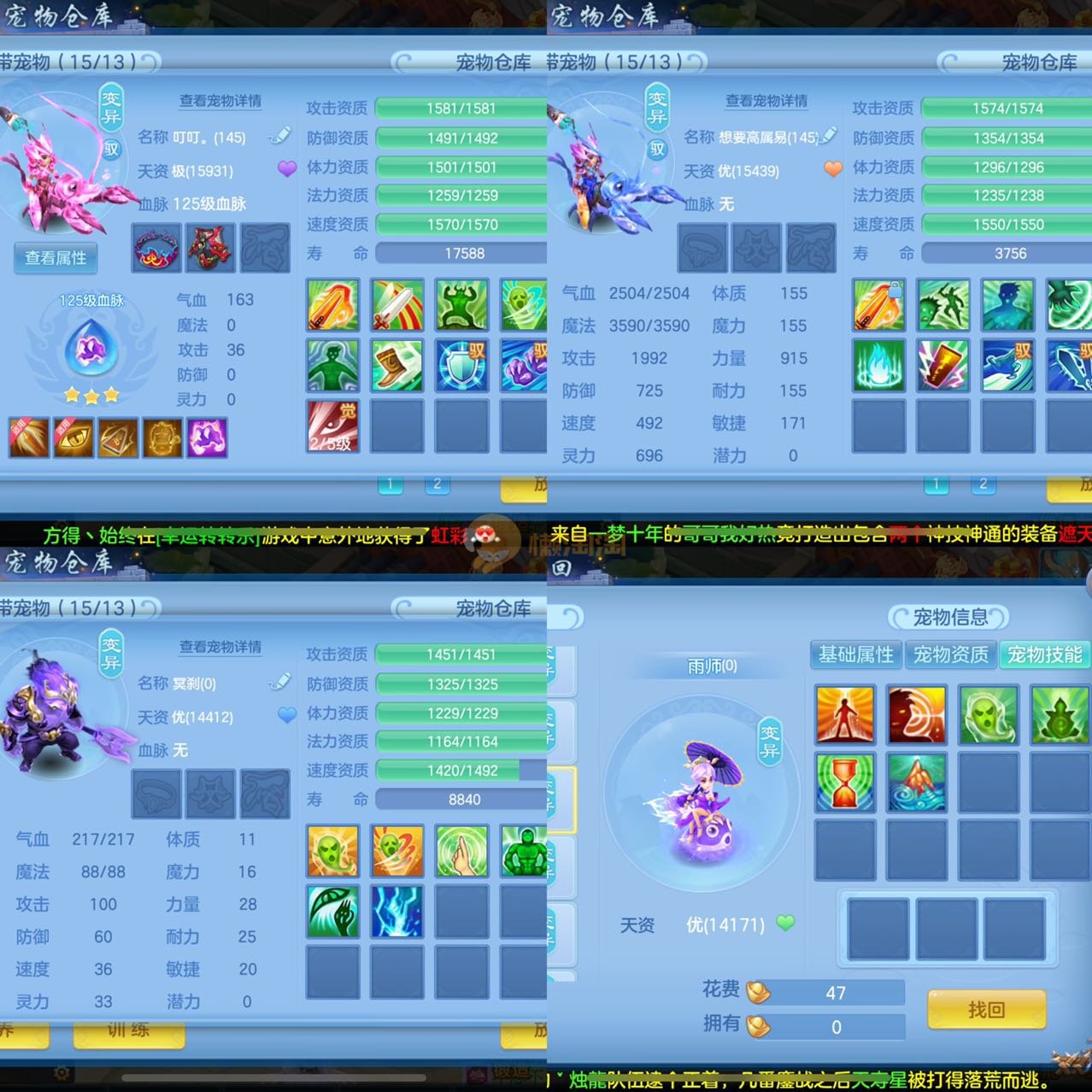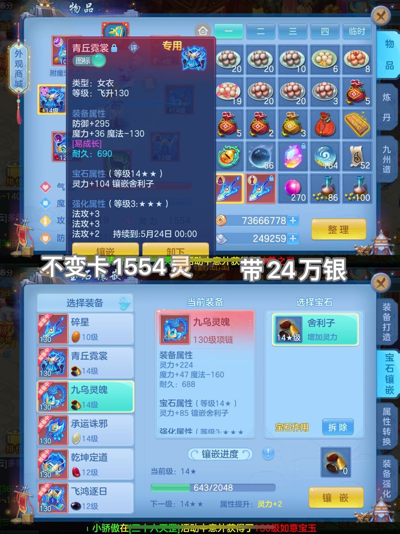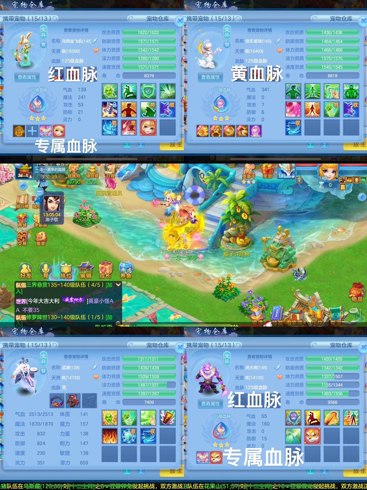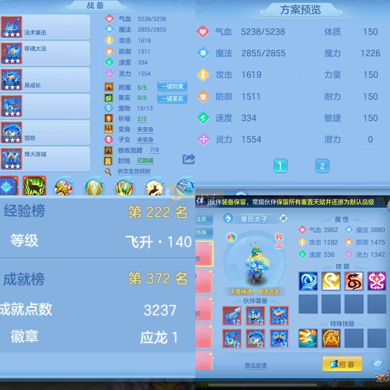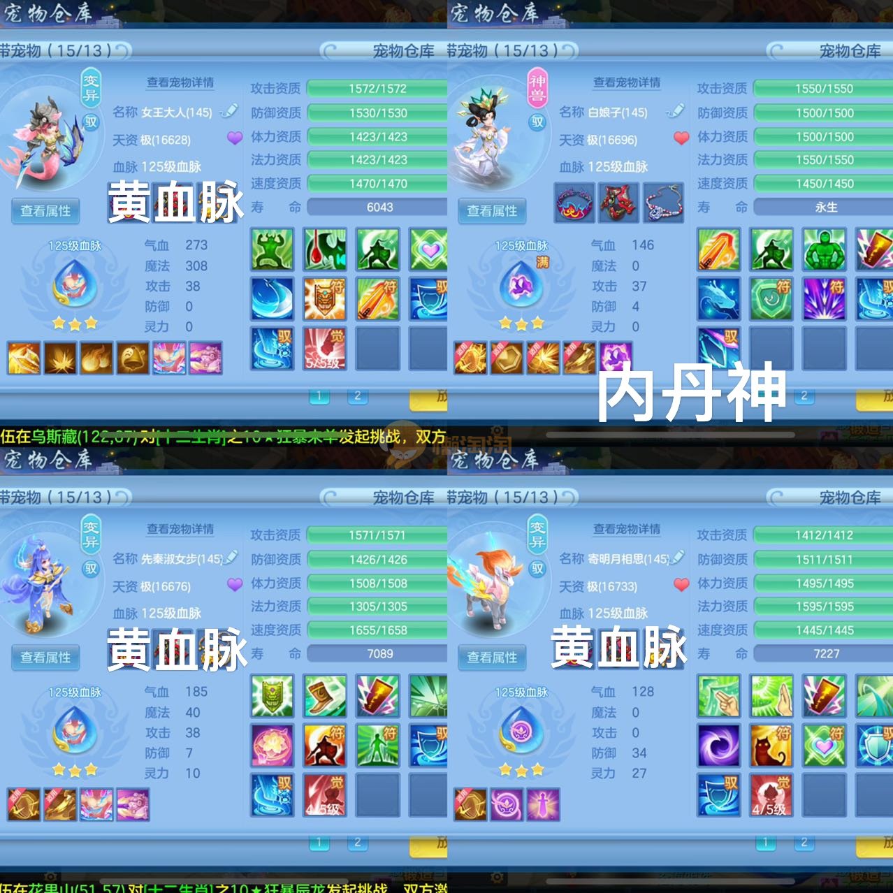 3件14段2星140级龙宫,不变卡1554灵,7专属12满兽魂