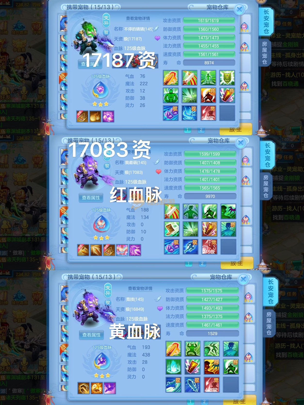 3件14段2星,18个红黄7专属血脉,12只满兽魂,不变卡1554灵,15个6技能,内丹神,7个高级坐骑,2只宠物皮肤,可以改密码关联手机