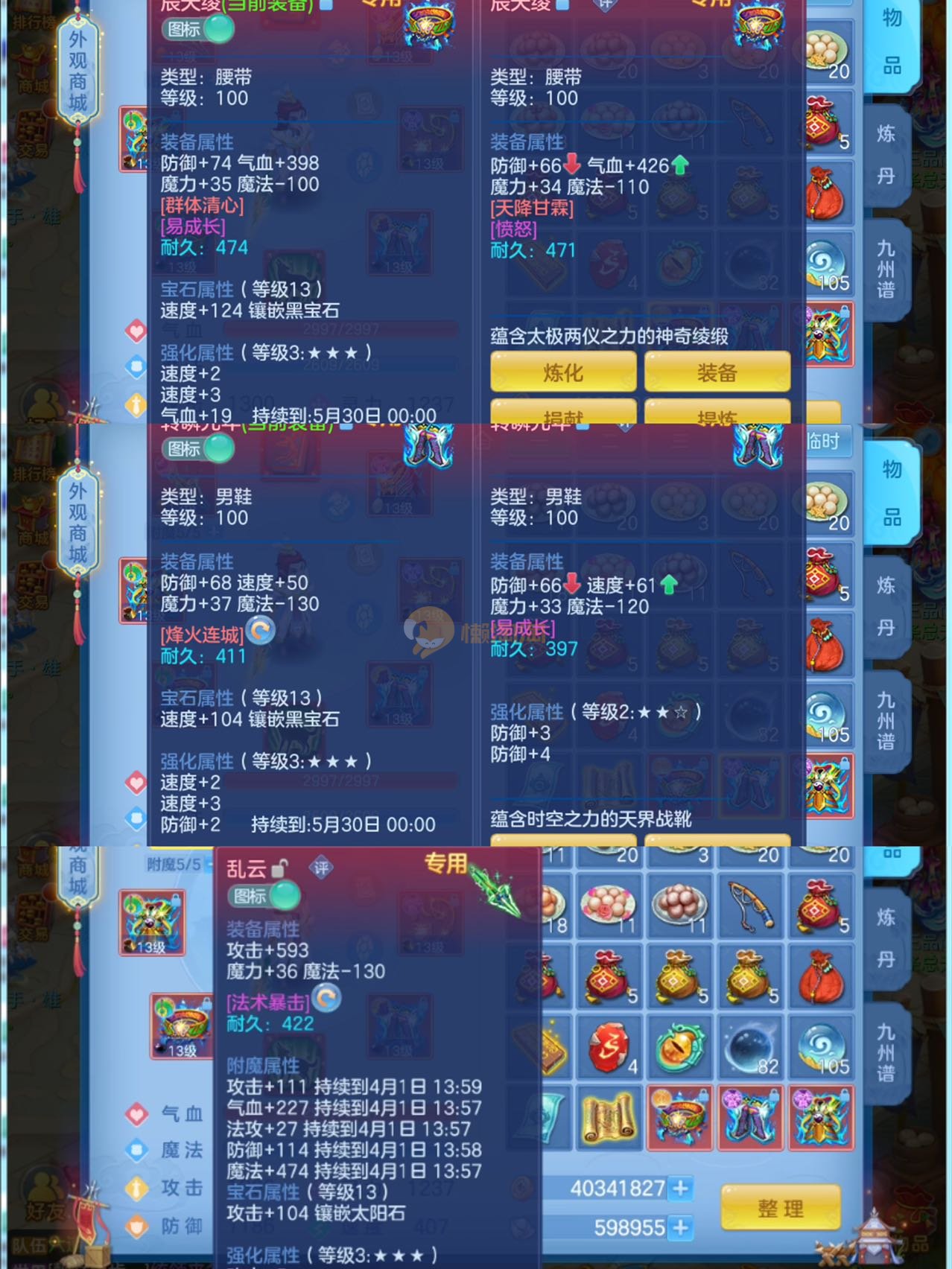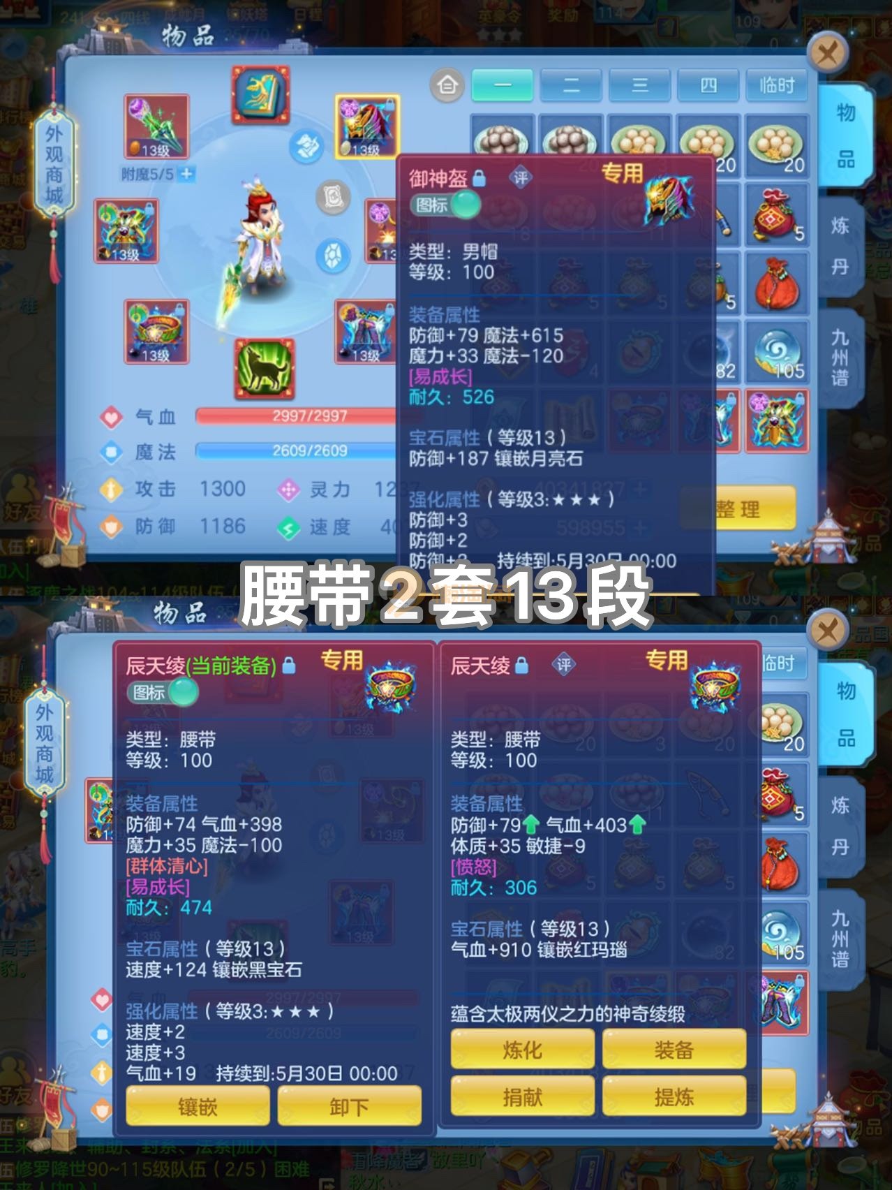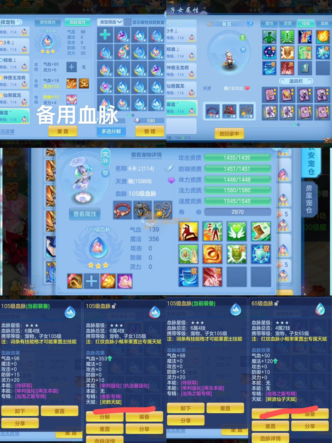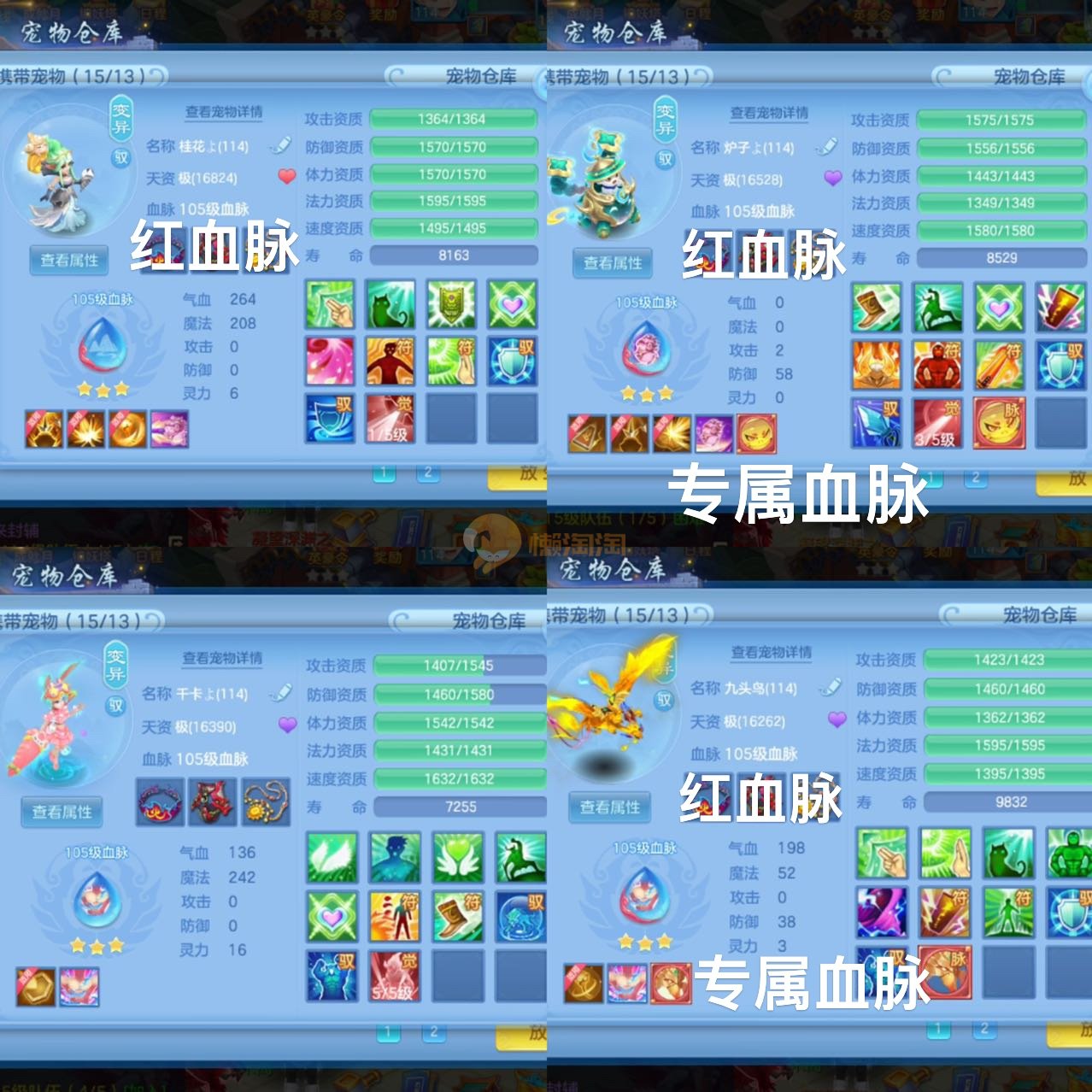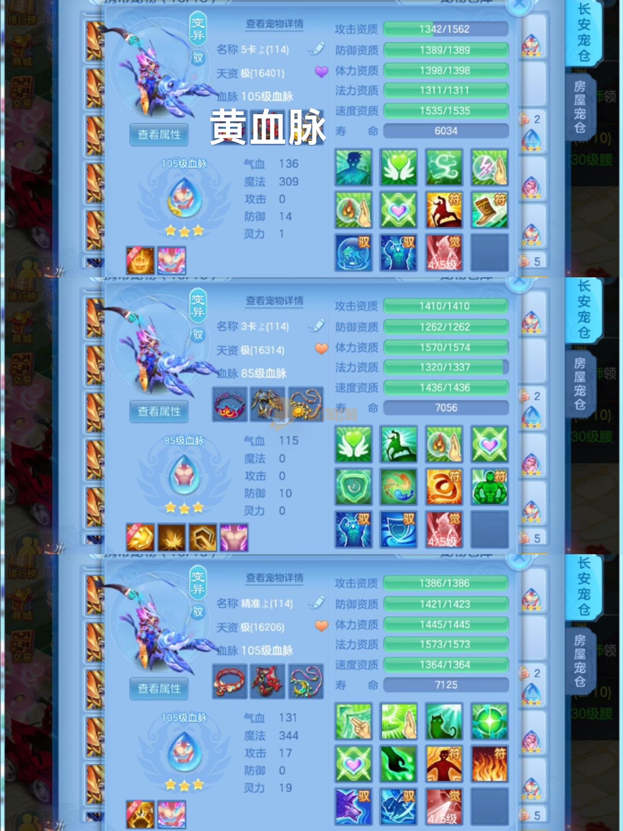 7件13段装备,不变卡1237灵,14个6技能,12只满兽,25个红黄4专属血脉,冰晶庄园内丹神,7个高级坐骑,8只宠物皮肤,有一套物理装备可转职业,可以改密码关联手机