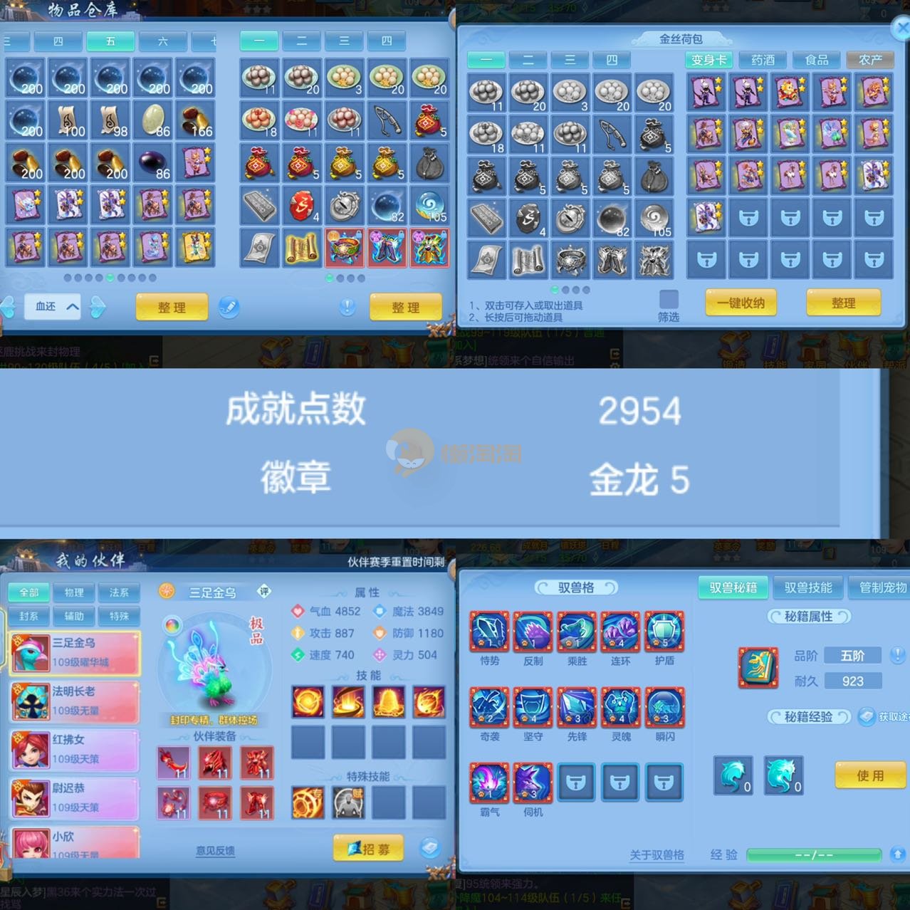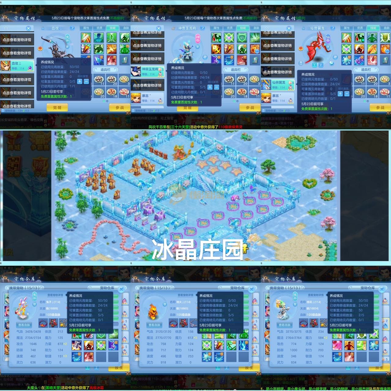 仙兽7件13段109级男龙宫,1237灵25个红黄4专属冰晶庄园