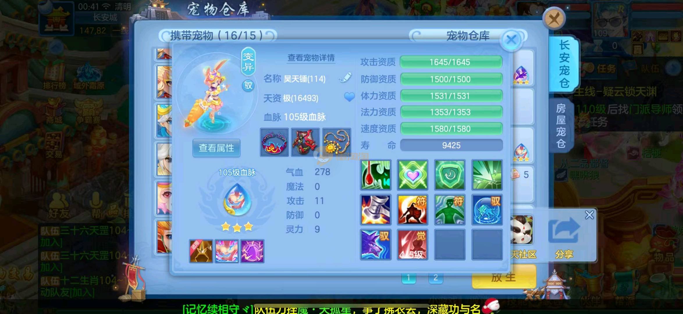 首页> 神武手游> 万木争春,109男天宫,十一支六技能龙虾,两只童子,三只葫芦,有强化玉龙,蛇没强化。还有1341金 三年换绑 2980邮箱 验证码找懒懒