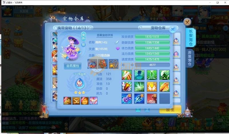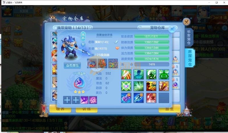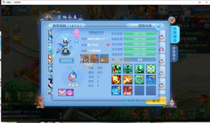 飞花逐月飞升140级男普陀 14段混搭13段,特技齐全,宝宝皮肤多 上手基本上通杀一切任务 细节看图 宝宝都是当前版本打造 花了不少心血 觉得细节号 高坐骑能用金币开的都开了