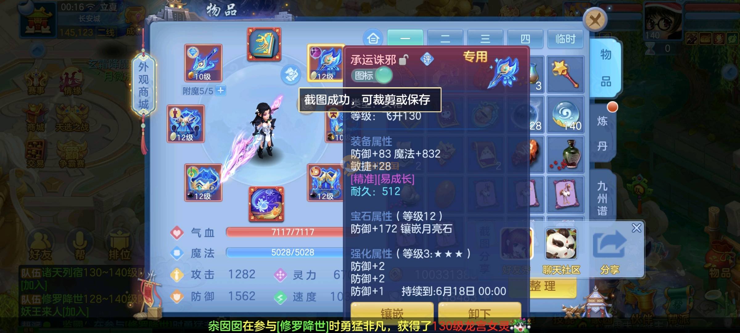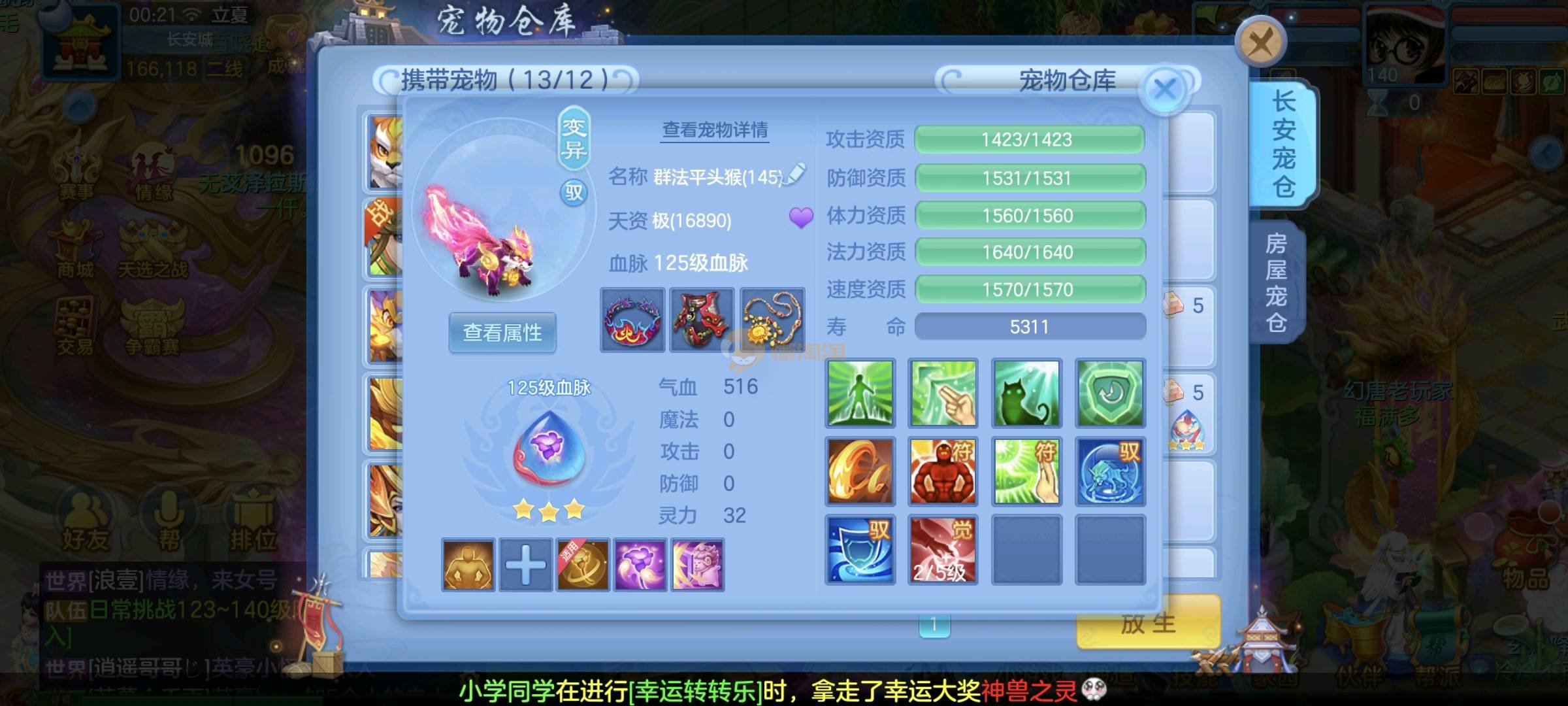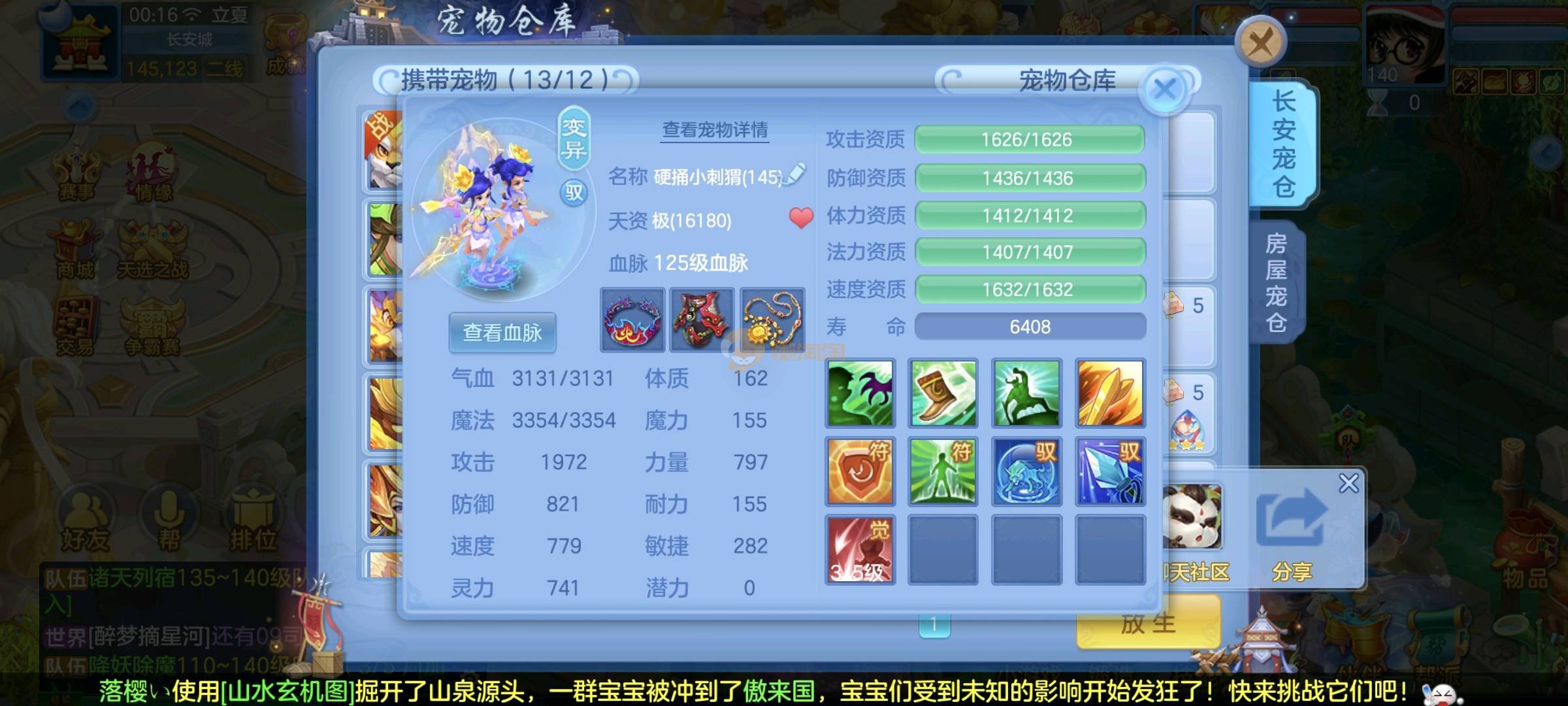 天下无双 140女方寸 12段混搭带高级坐骑,特技齐全宝宝10几个,任务养老通杀 可以打帮战,面板没问题 御兽底子全满 2980邮箱 3年换绑 绑自己号