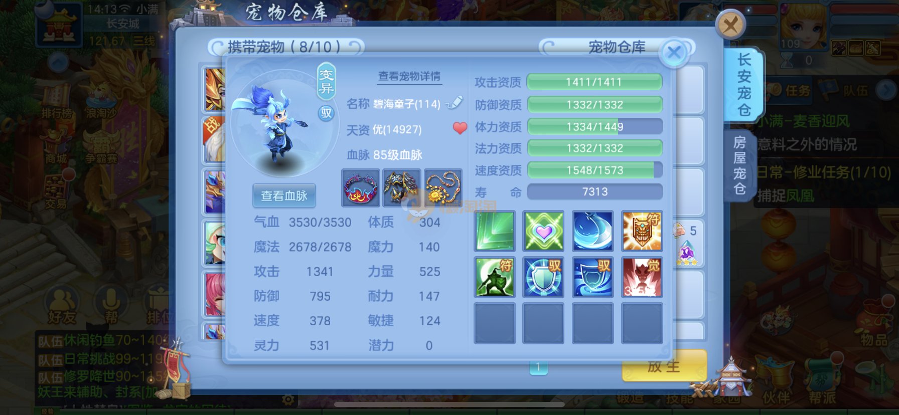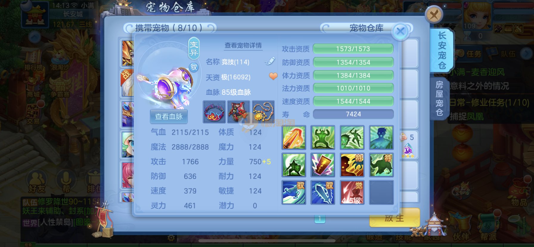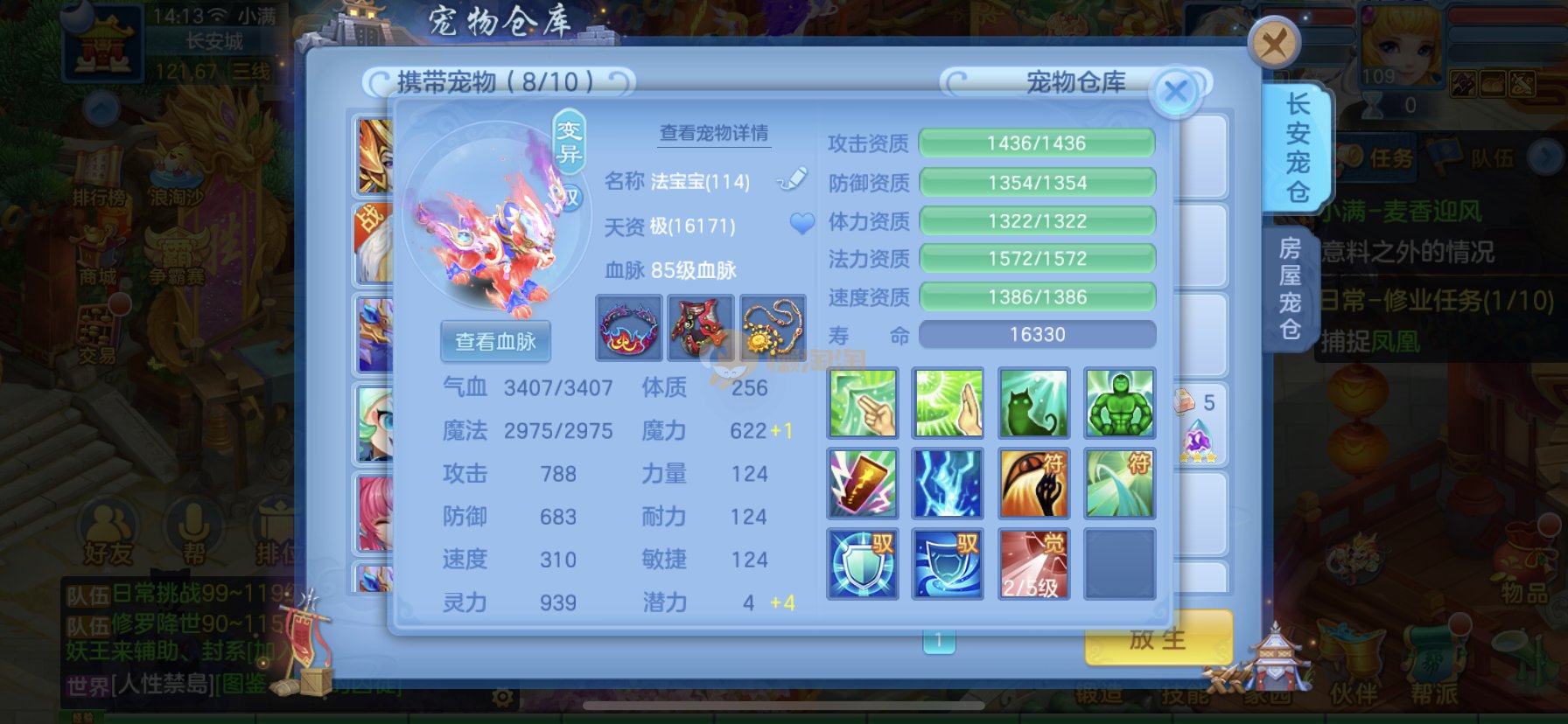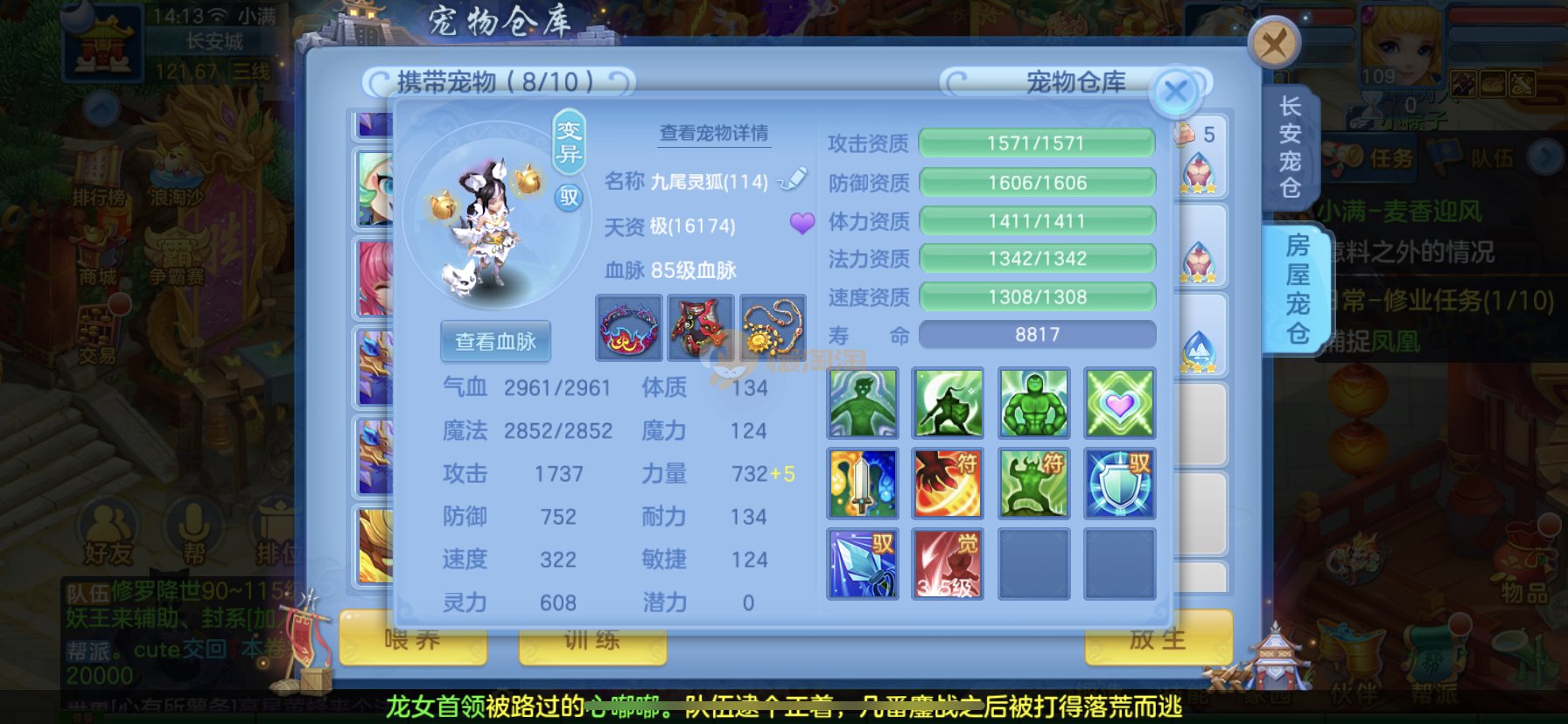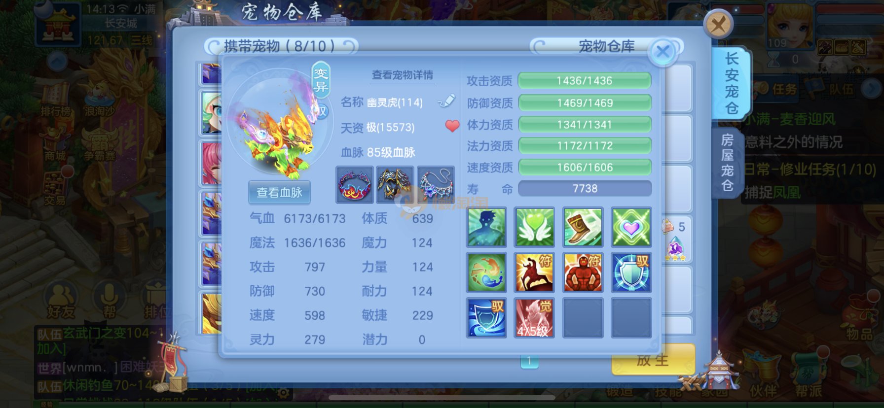 笑傲江湖109男冥月,13段,初攻595易/597必杀天地武器,冷静易腰带,易守护鞋子,装备均单加32左右,4神兽(玉龙强化、3青蛇1强化)11个满兽魂,10个专属天赋,带3个飞升奶粉,2980邮箱,无双重。7天换绑