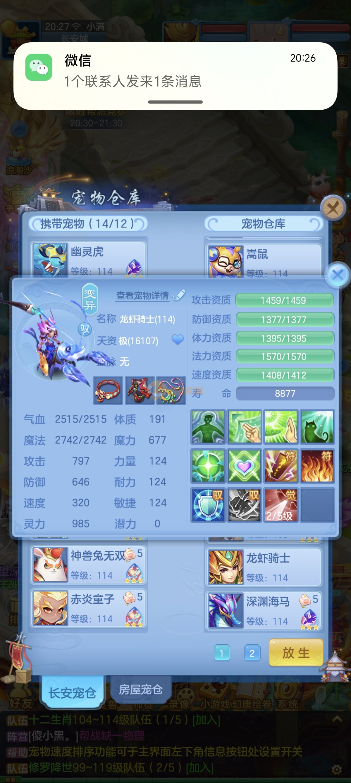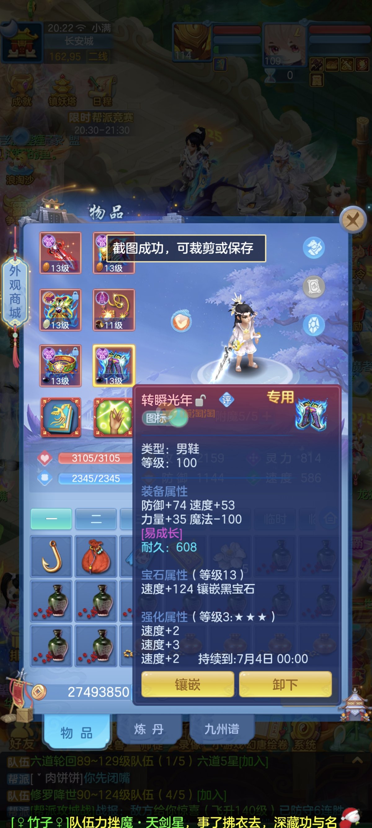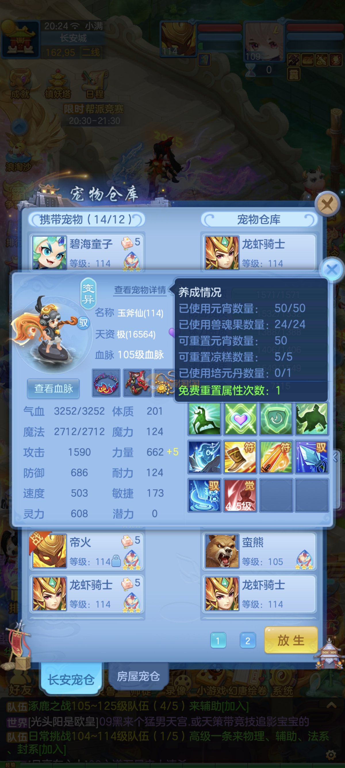 笑傲江湖109男冥月,13段,初攻595易/597必杀天地武器,冷静易腰带,易守护鞋子,装备均单加32左右,4神兽(玉龙强化、3青蛇1强化)11个满兽魂,10个专属天赋,带3个飞升奶粉,2980邮箱,无双重。7天换绑