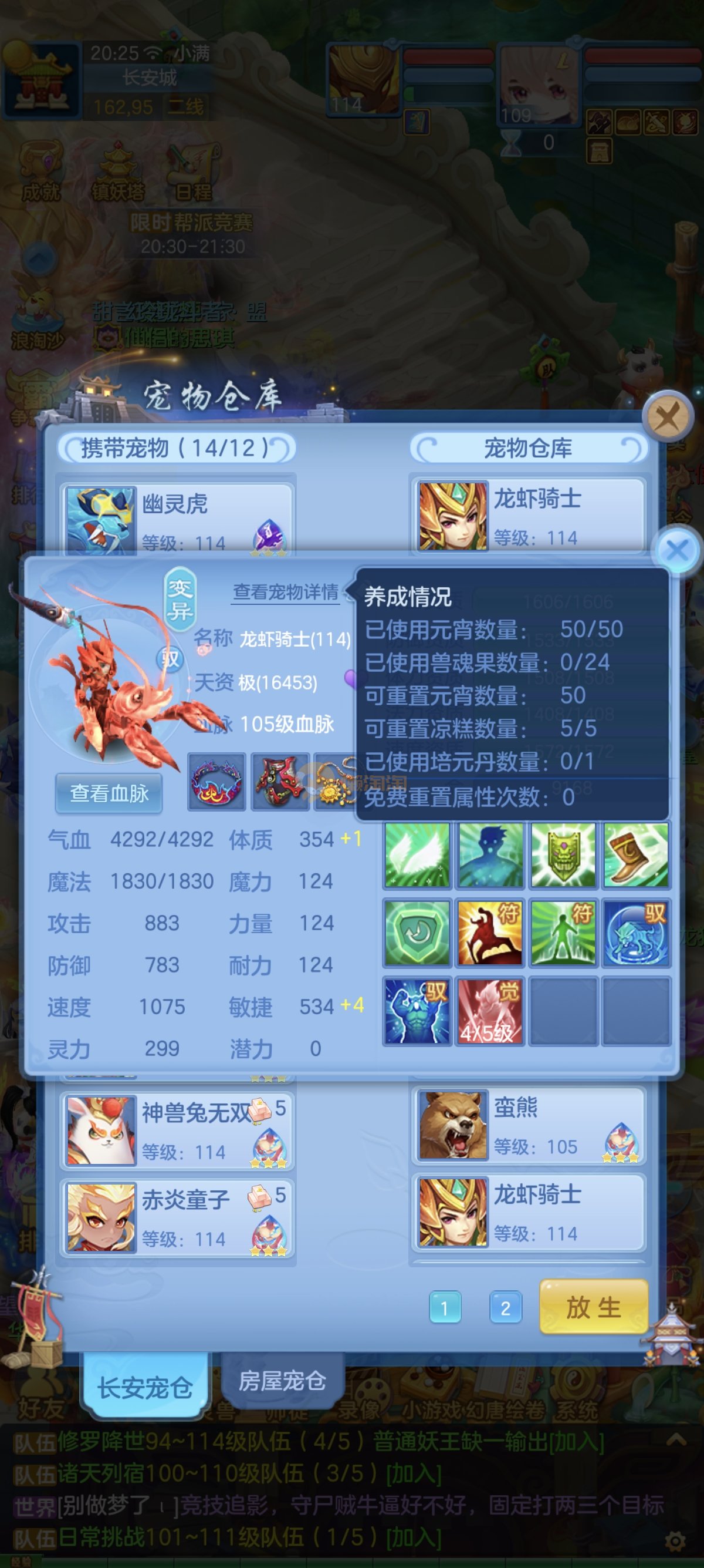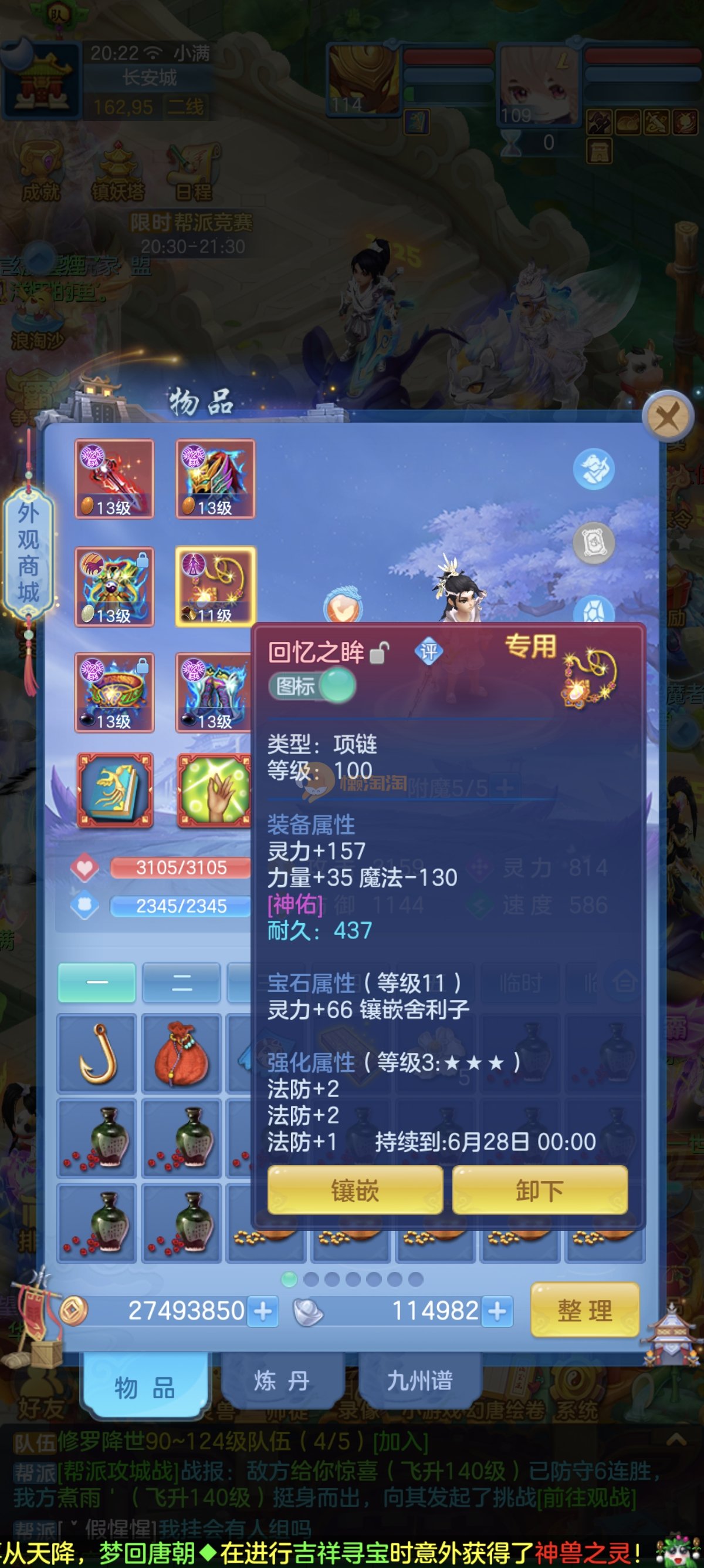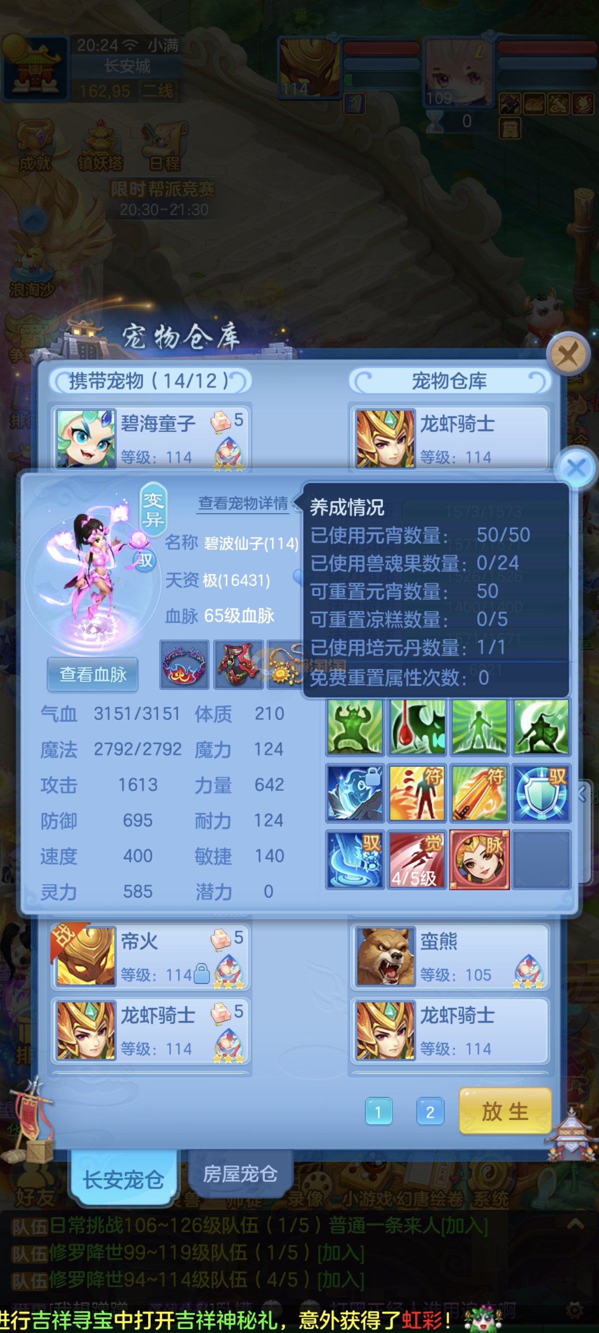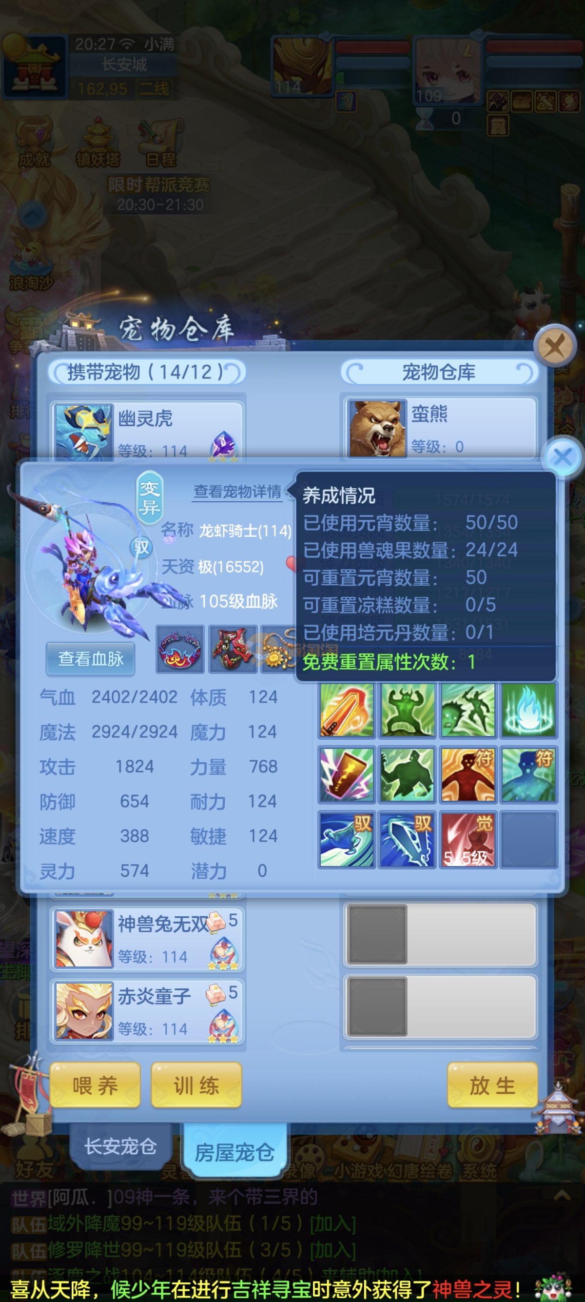 笑傲江湖109男冥月,13段,初攻595易/597必杀天地武器,冷静易腰带,易守护鞋子,装备均单加32左右,4神兽(玉龙强化、3青蛇1强化)11个满兽魂,10个专属天赋,带3个飞升奶粉,2980邮箱,无双重。7天换绑