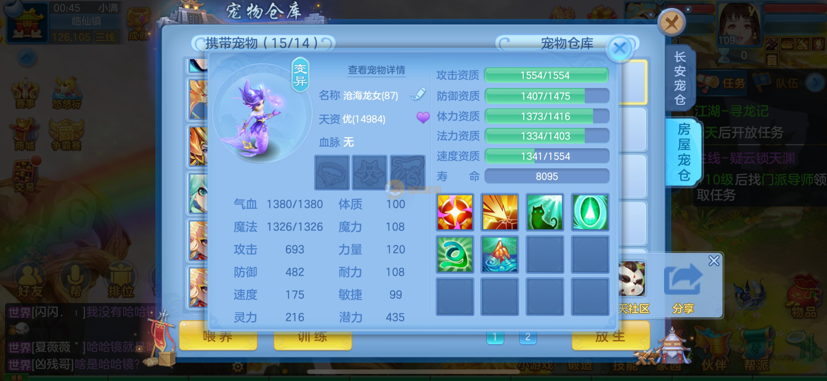 全神神器顶级辅助号,愤怒易,躲避易笑里,冥想易罗汉,易晶清,妙手晶清,易生存罗汉,仓库特技齐全,全身单加35高属性装备,童子,碧海,海马,龙女,版本宝宝血脉齐全,两神,17个满兽魂,18个红纹血脉。