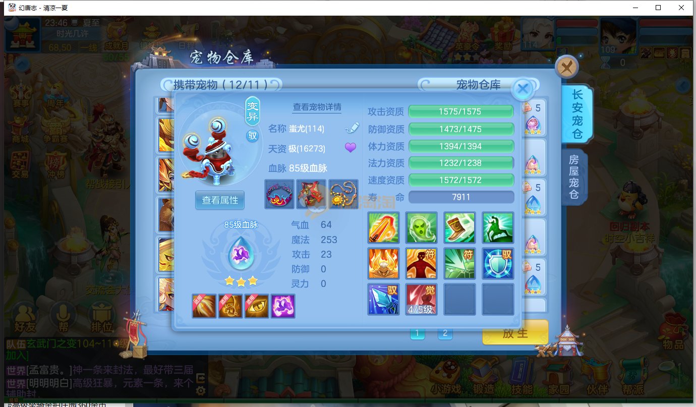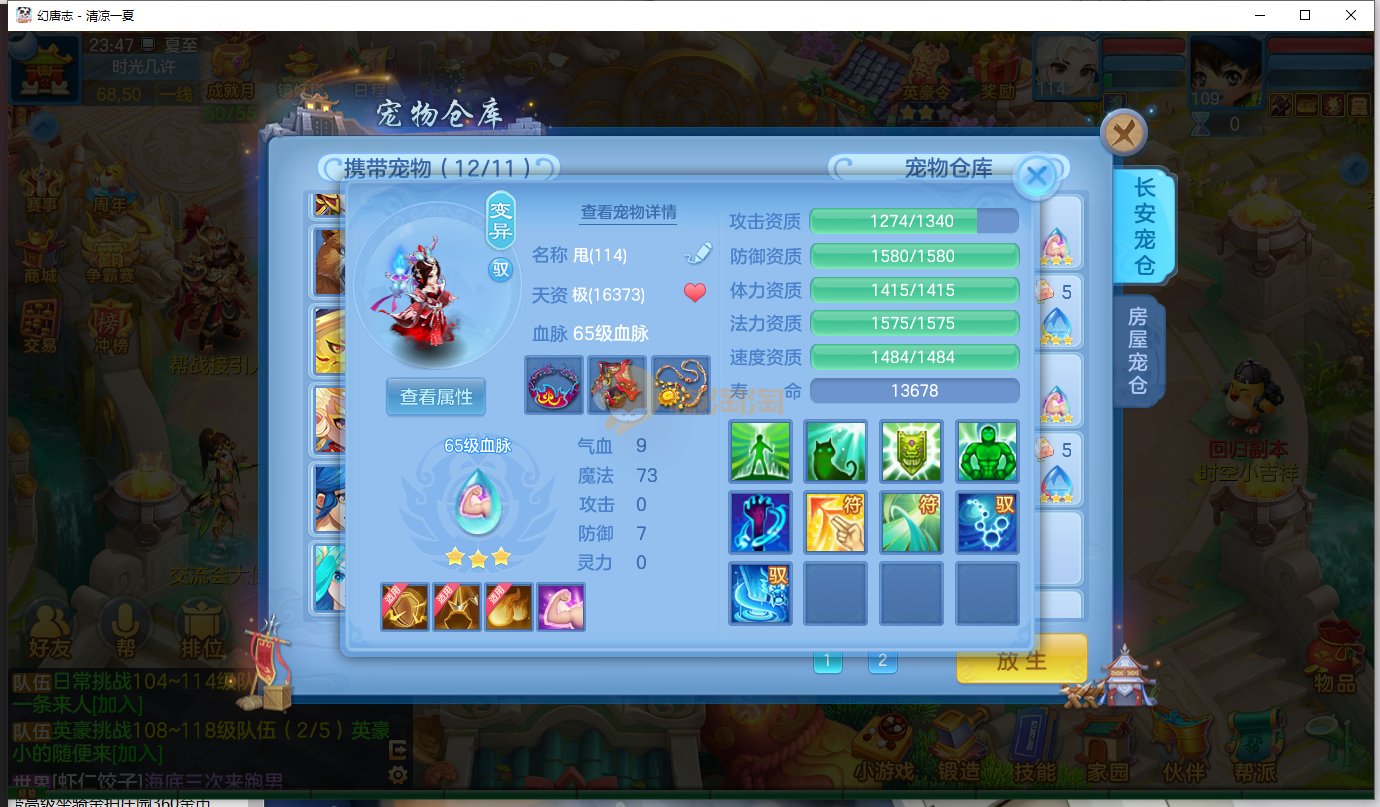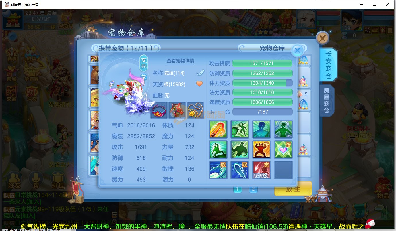 清凉一夏109级男佛门 13段混12段装备,日常特技都有,带高级坐骑,神兽蛇,排行27新宠物寒翎,细节看图