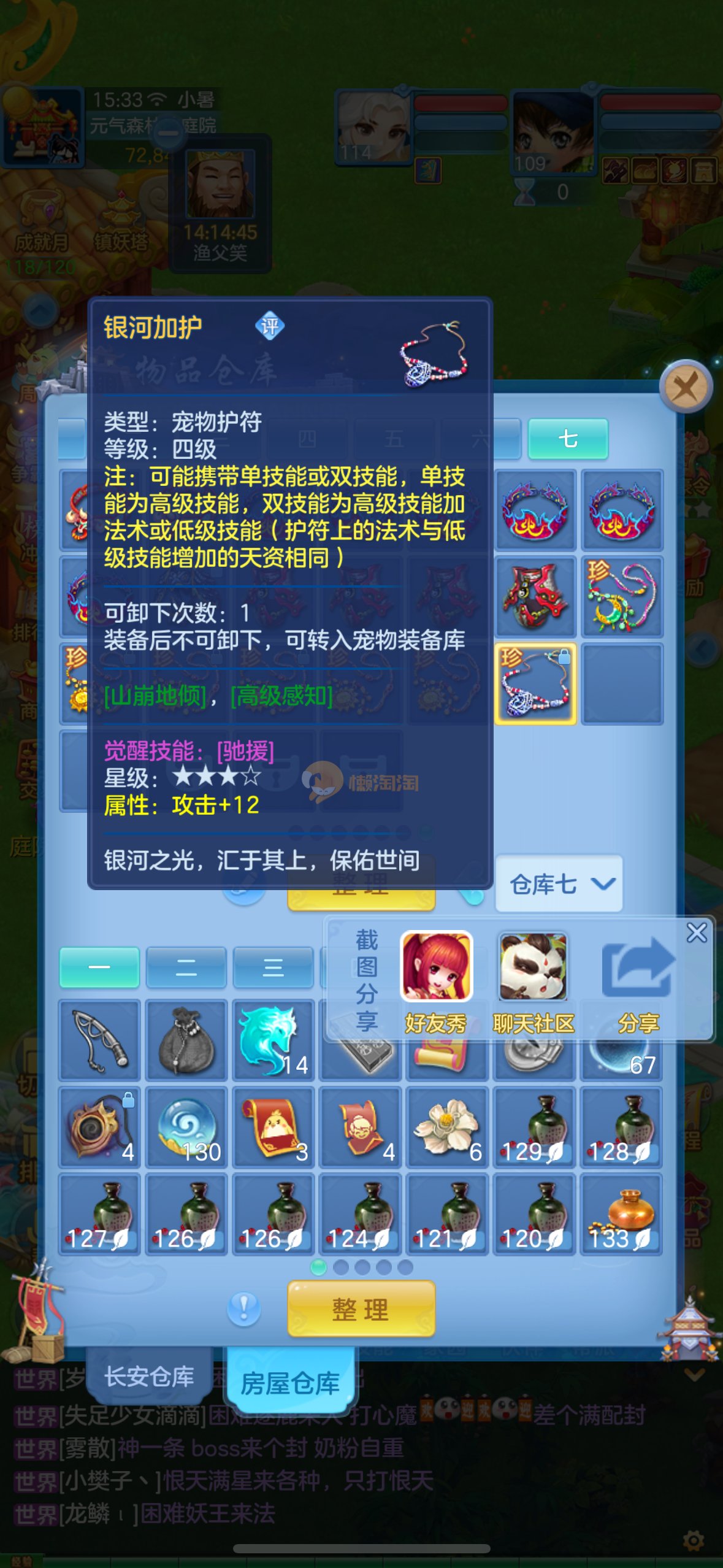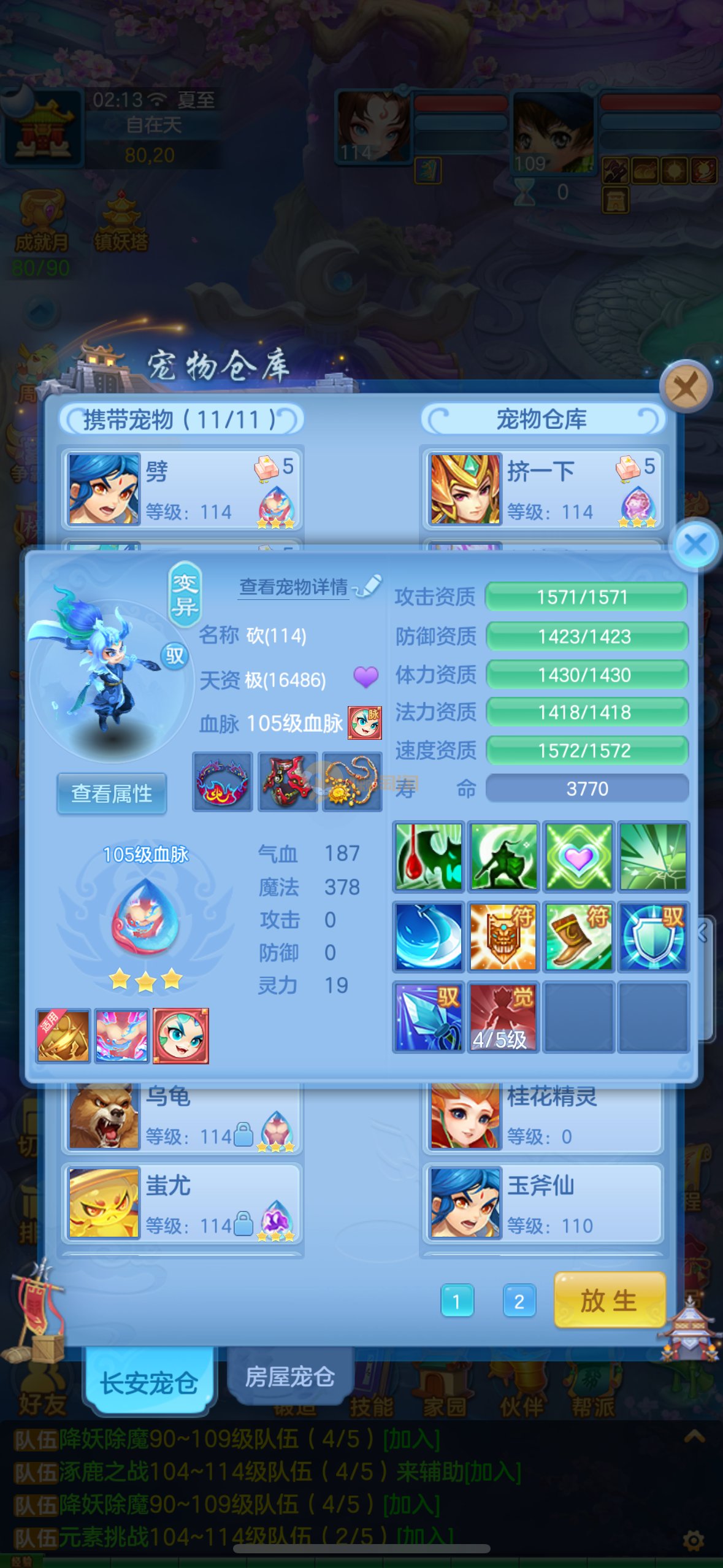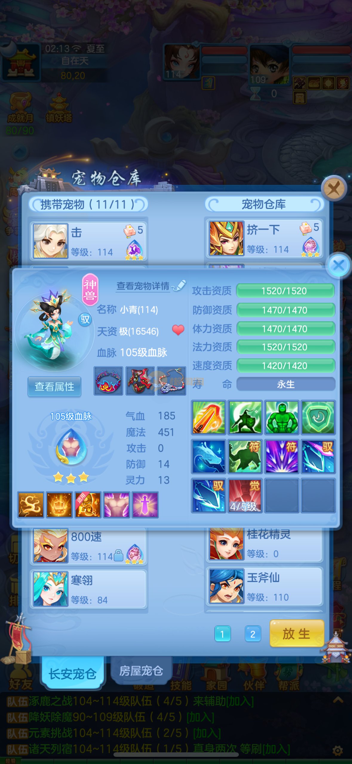 清凉一夏109级男佛门 13段混12段装备,日常特技都有,带高级坐骑,神兽蛇,排行27新宠物寒翎,细节看图