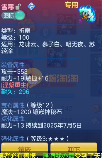 清凉一夏109级男佛门 13段混12段装备,日常特技都有,带高级坐骑,神兽蛇,排行27新宠物寒翎,仓库很多资源带很多高书,宝宝有5个宝宝皮肤,10个任务 细节看图 头像还有54天 仓库还有一个头像17天月卡修炼官职底子全满 御兽全满 2980邮箱 一年换绑 验证码找懒懒