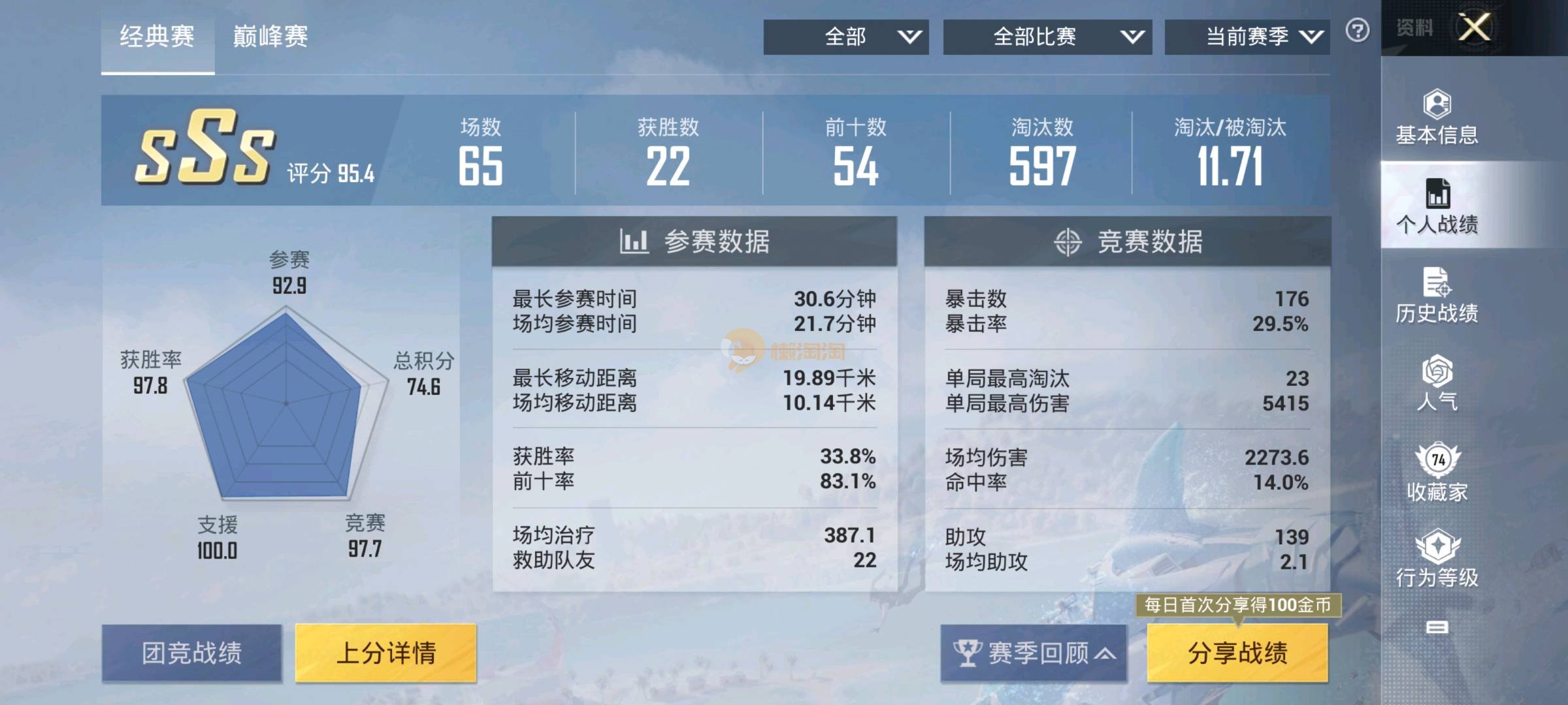 吃鸡王者一体号 快10万多热力值 王者也最高90星,总账号价值1万多