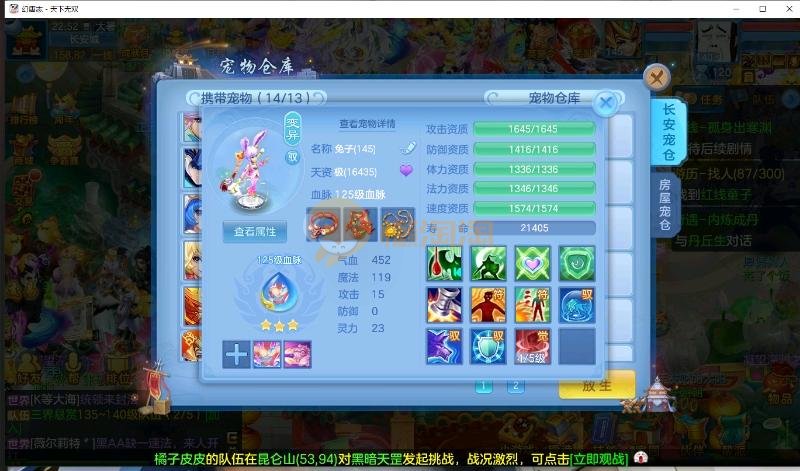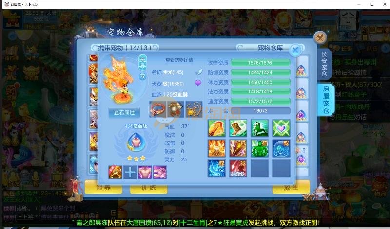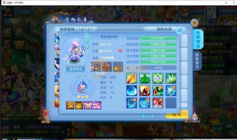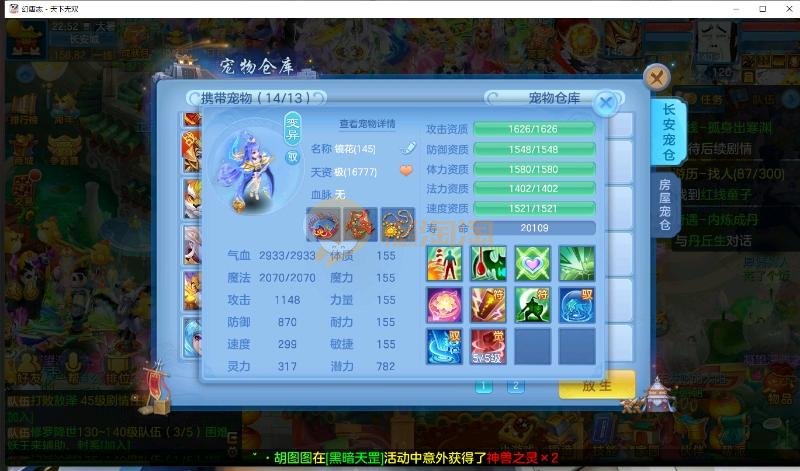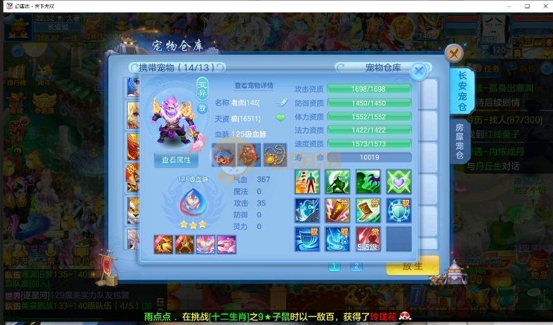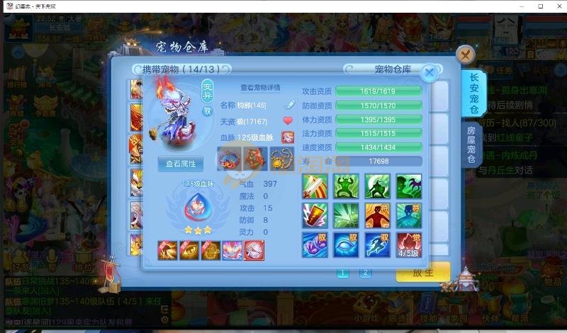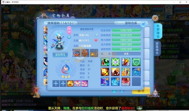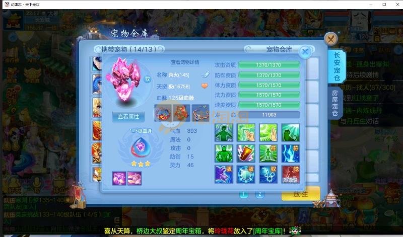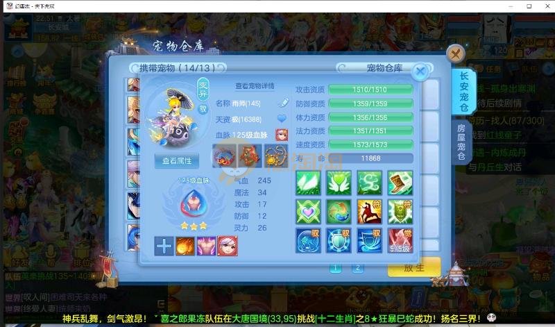 首页> 神武手游> 天下无双 140男方寸 14段装备,特技齐全 日常通杀一切, 宝宝接近25个成品宝宝 8个天赋血脉带高级坐骑成就坐骑 底子全满 细节看图 帮战排位随便打 细节看图 QQ邮箱不送 1年换绑 验证码找懒懒