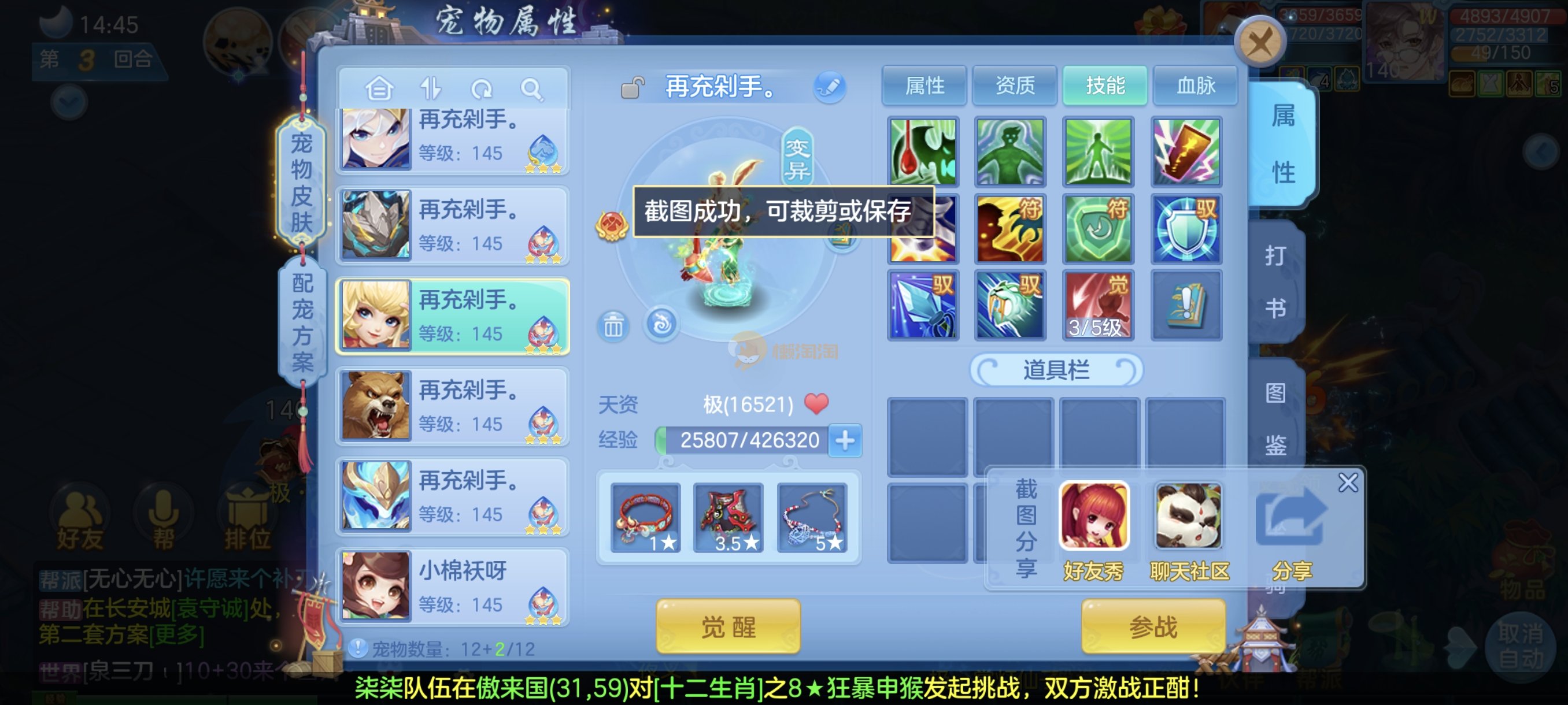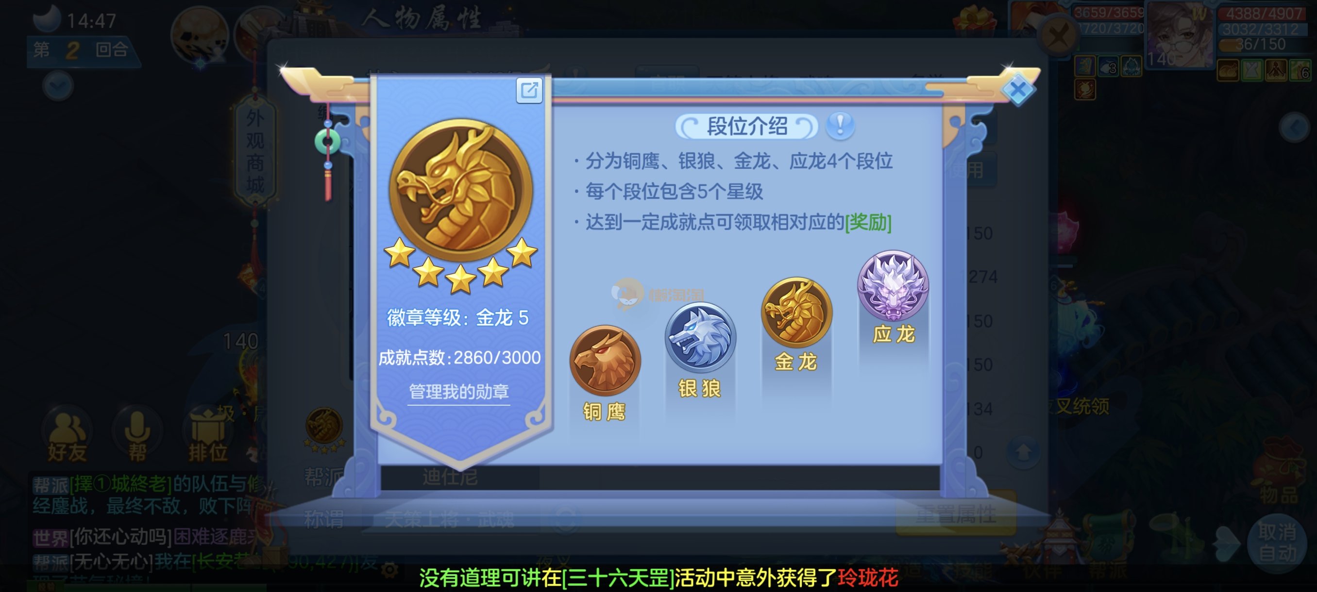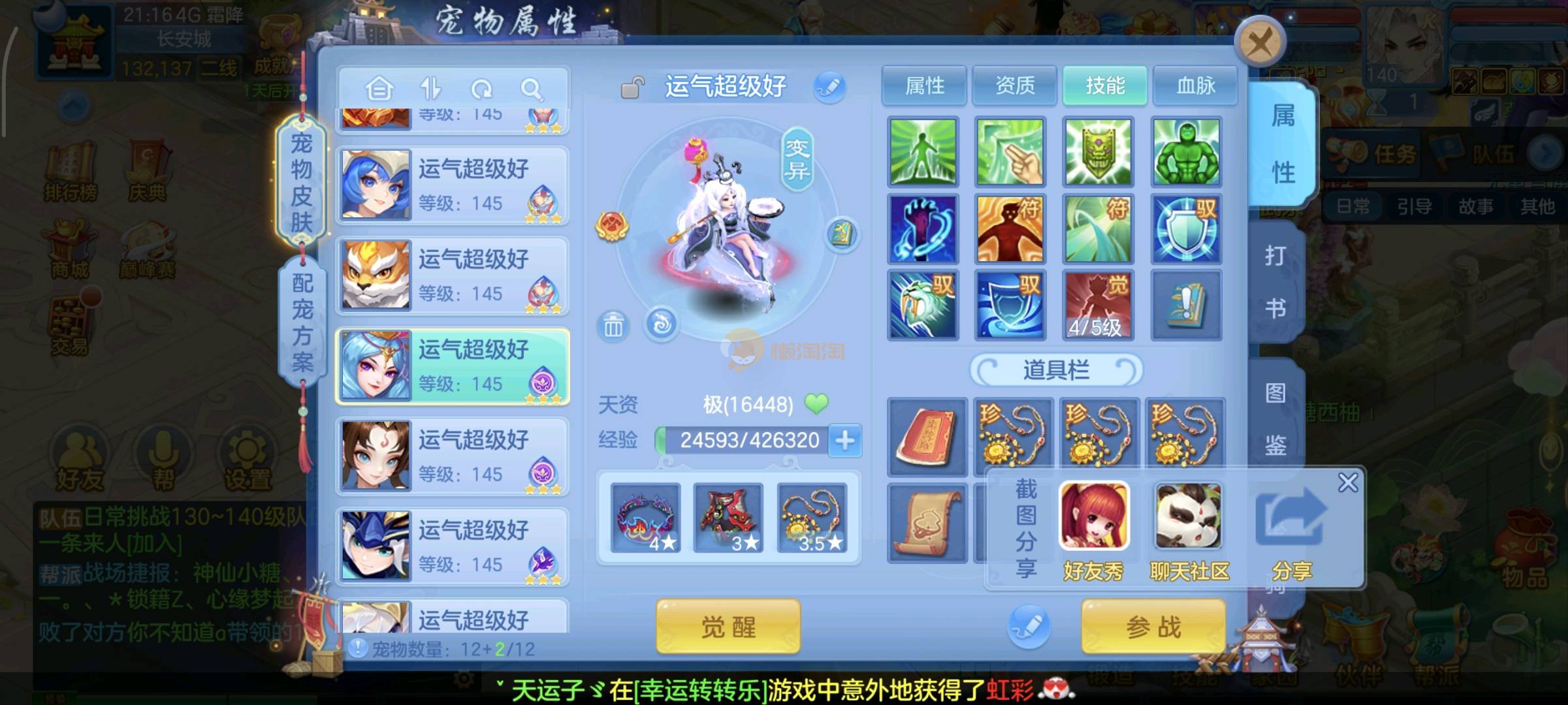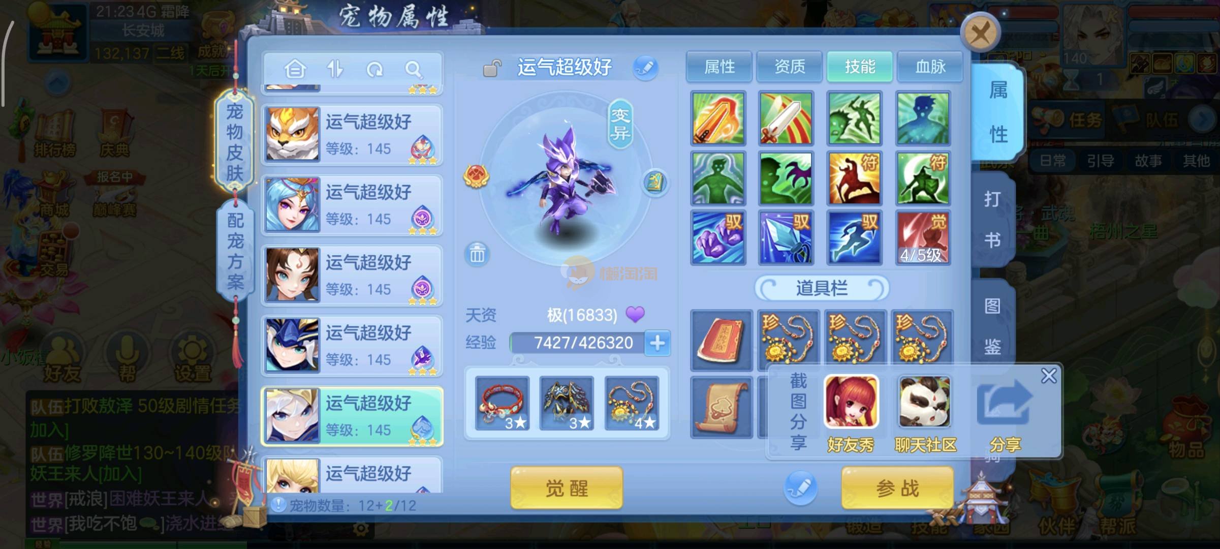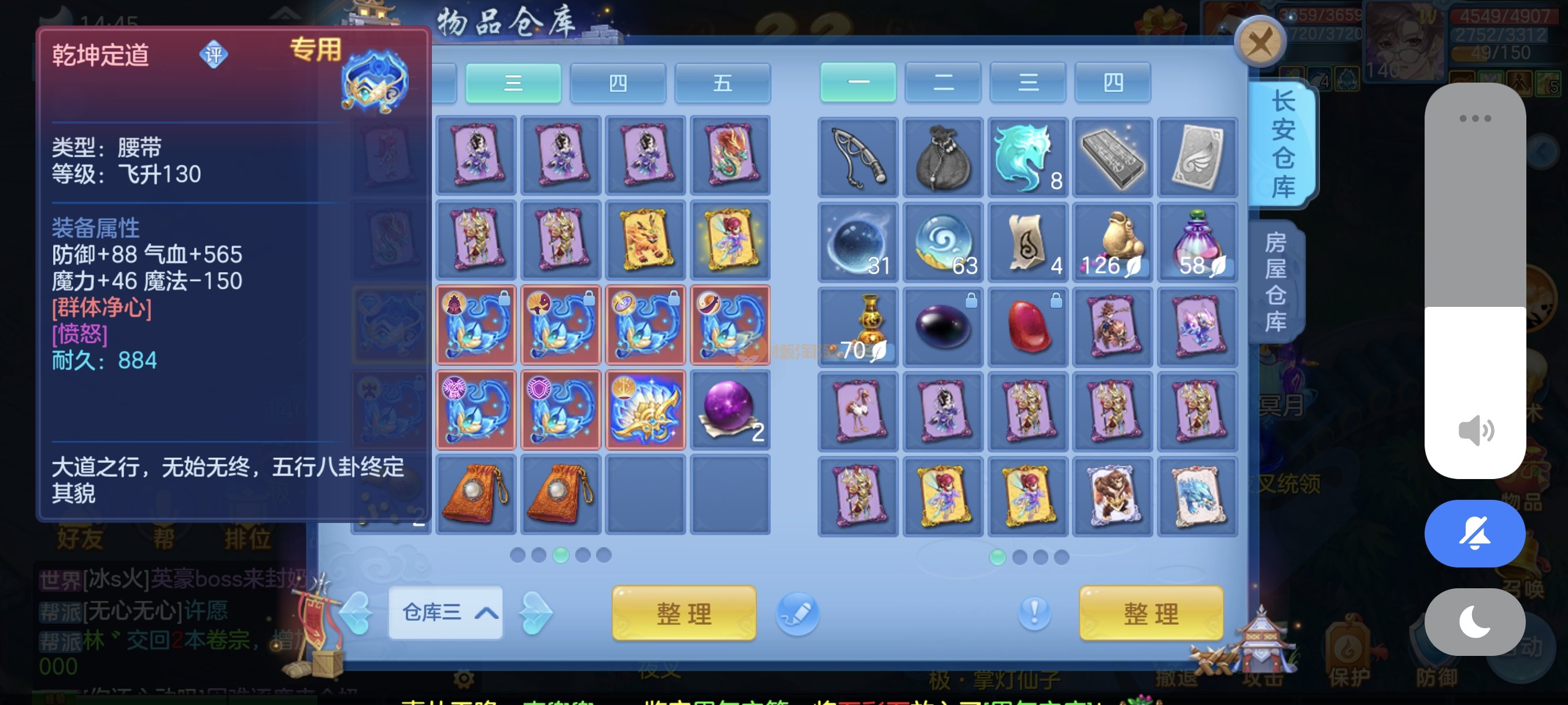 今年勇140男魔王,14段衣服13段项链,双红愤怒腰带 有玉龙和蛇 都只缺最后的强化 pk宝宝全 千速 尾速 首发老虎 首发孟婆 双红腰带 易成长高单加衣服 法爆武器,装备均单加42,高级坐骑龙 花2000金进化变身 ,1年换绑。不变卡1576灵 变卡1600无压力
