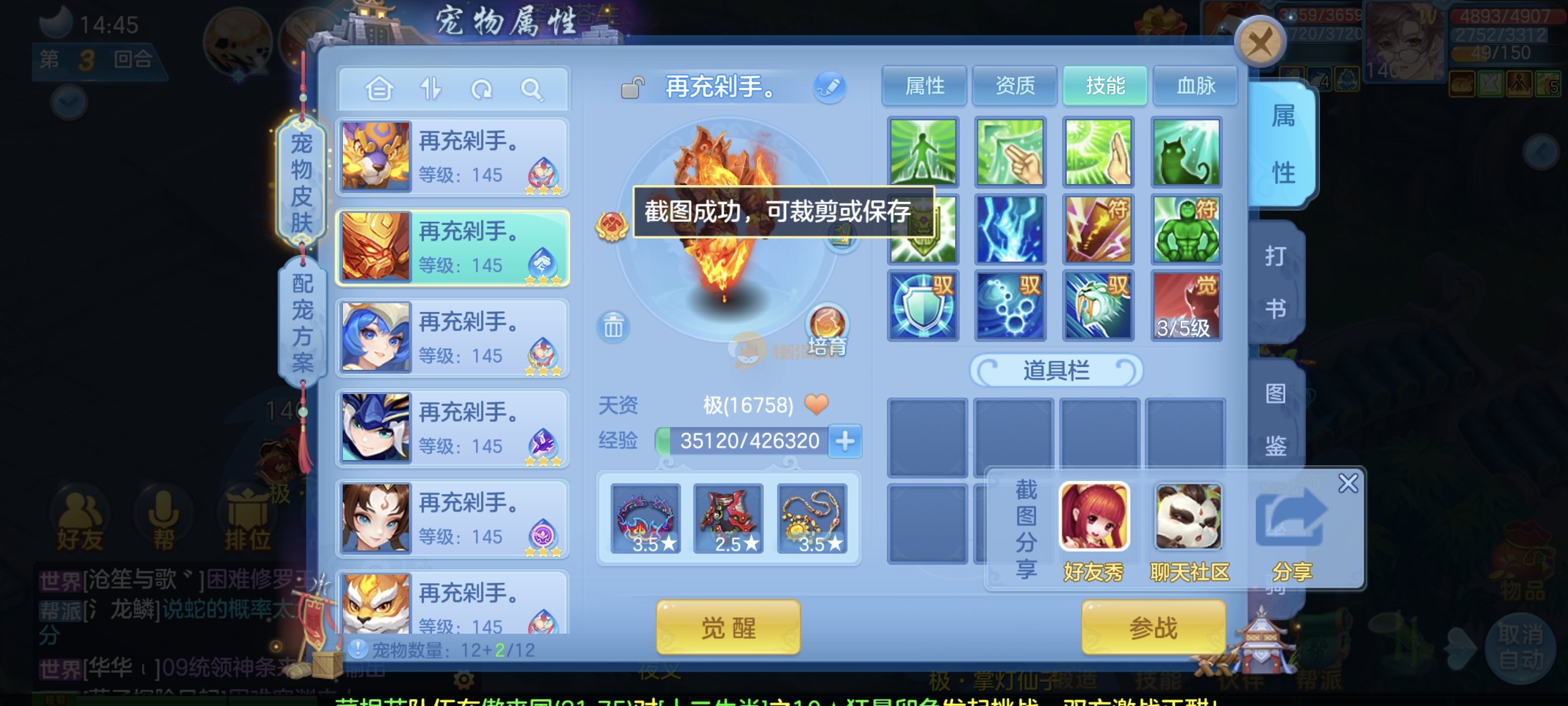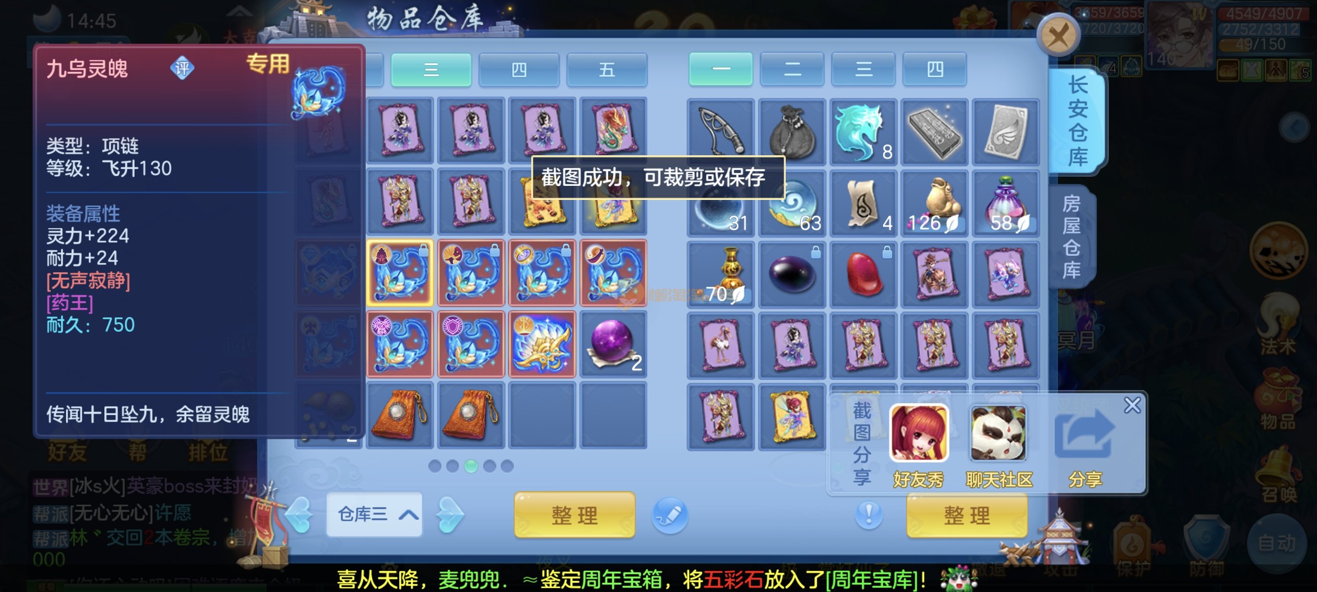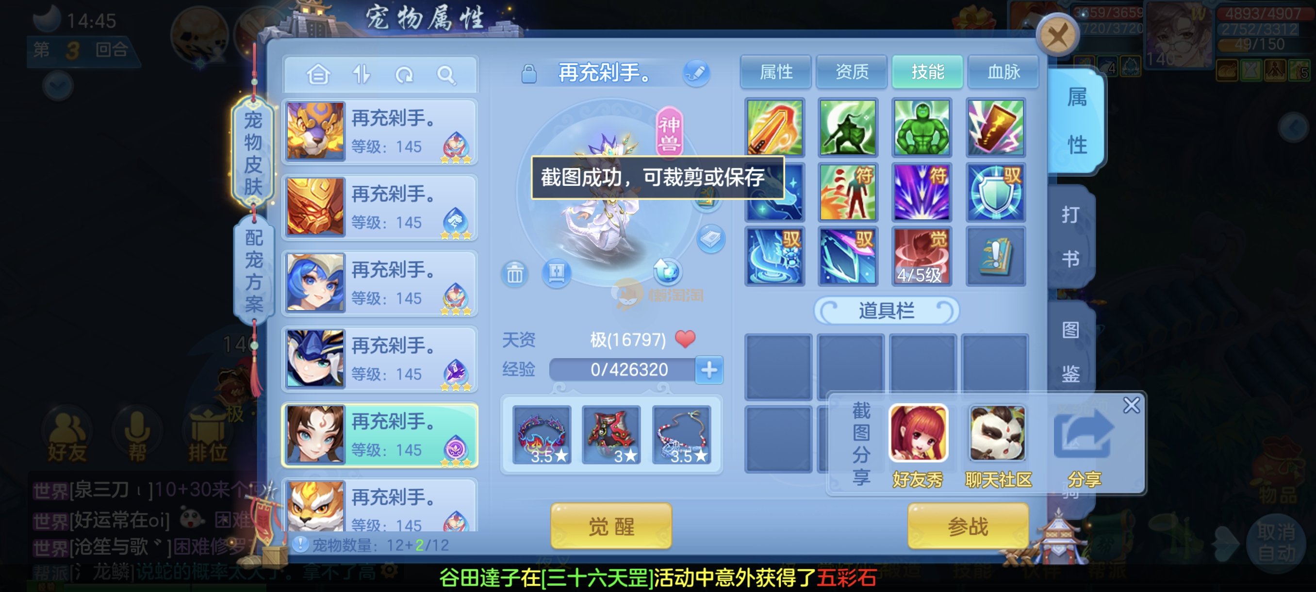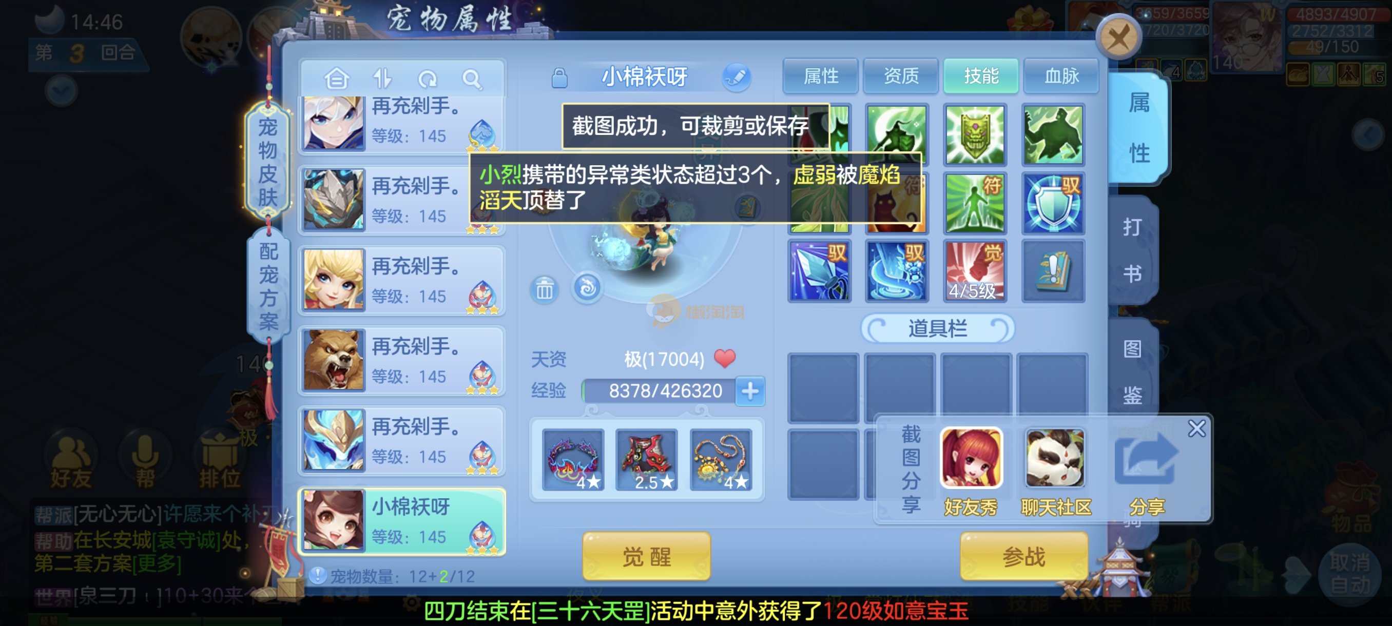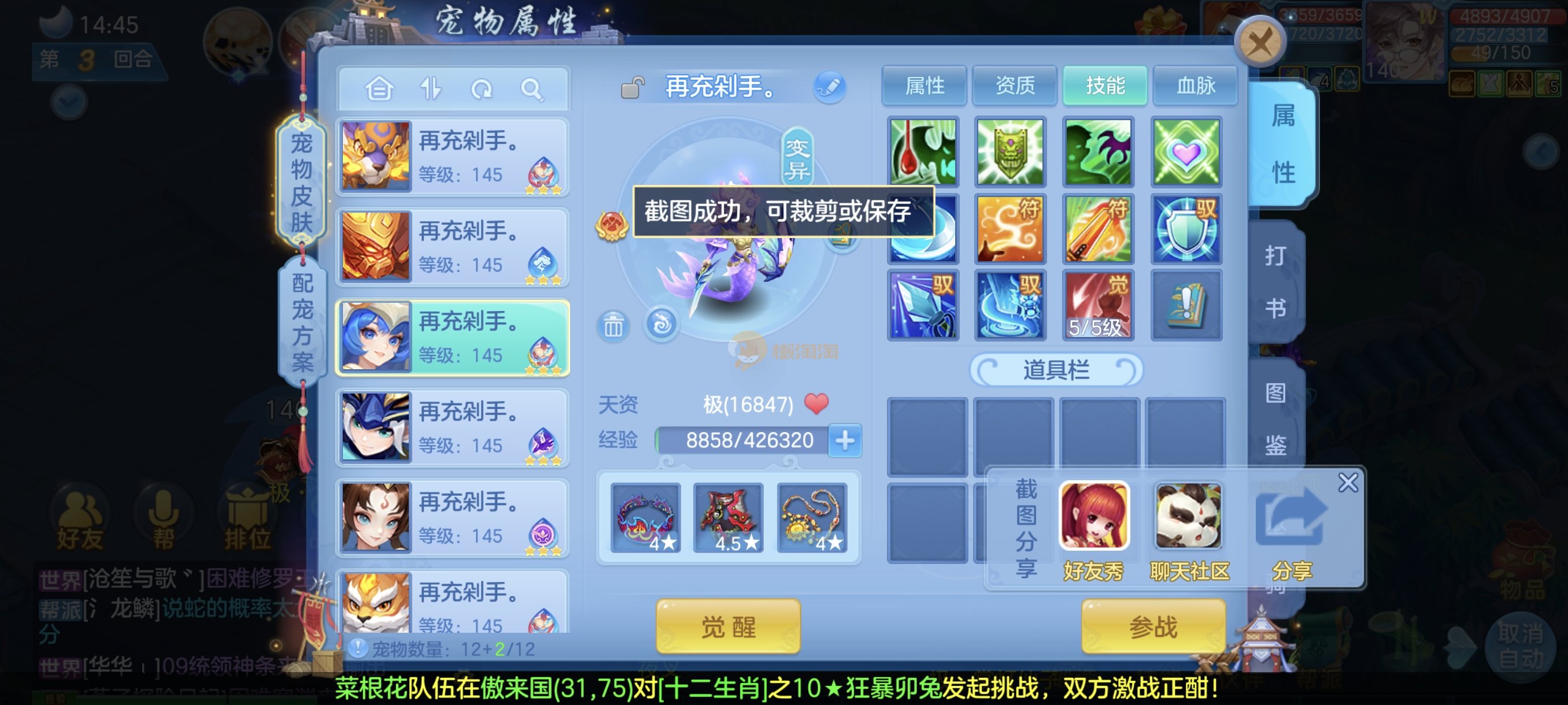 今年勇140男魔王,14段衣服13段项链,双红愤怒腰带 有玉龙和蛇 都只缺最后的强化 pk宝宝全 千速 尾速 首发老虎 首发孟婆 双红腰带 易成长高单加衣服 法爆武器,装备均单加42,高级坐骑龙 花2000金进化变身 ,1年换绑。不变卡1576灵 变卡1600无压力