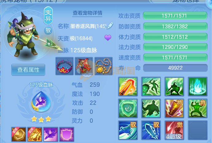 天下无双140女龙宫属性高宝宝多