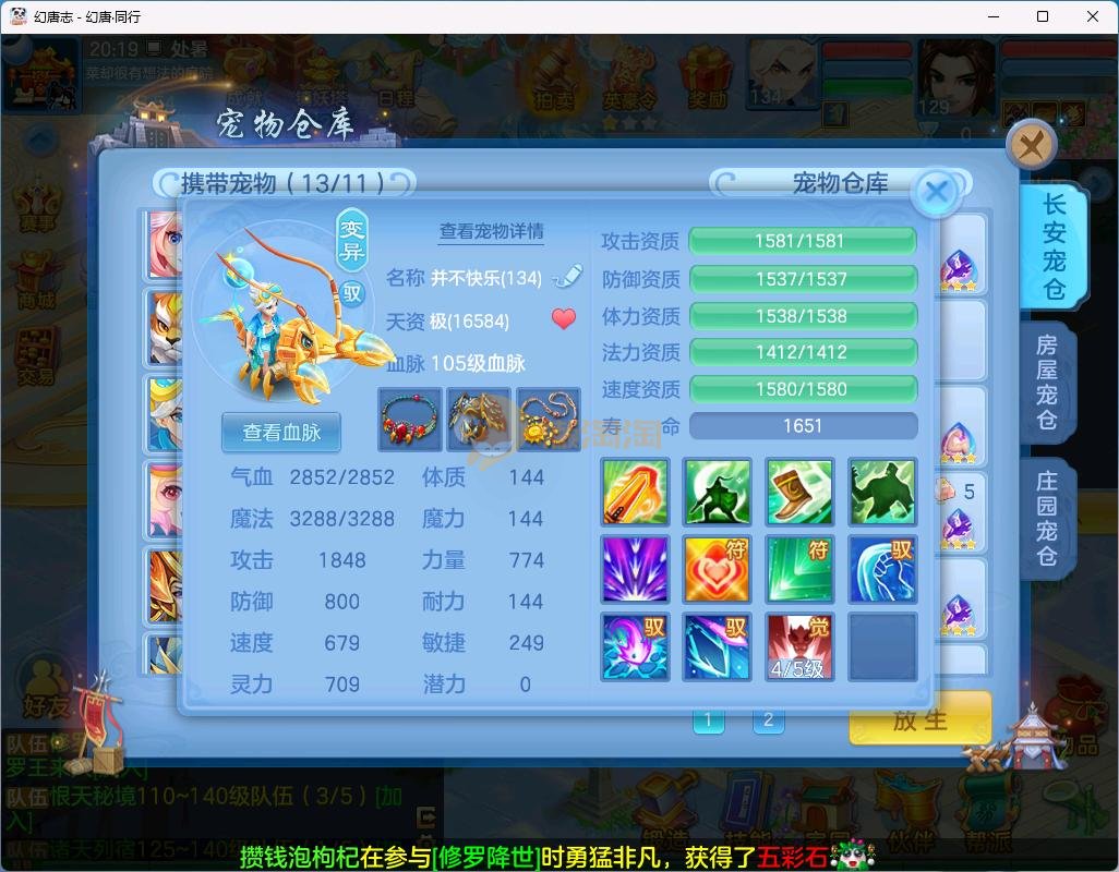 幻唐同行飞129天策12混高级庄园多皮肤内丹神