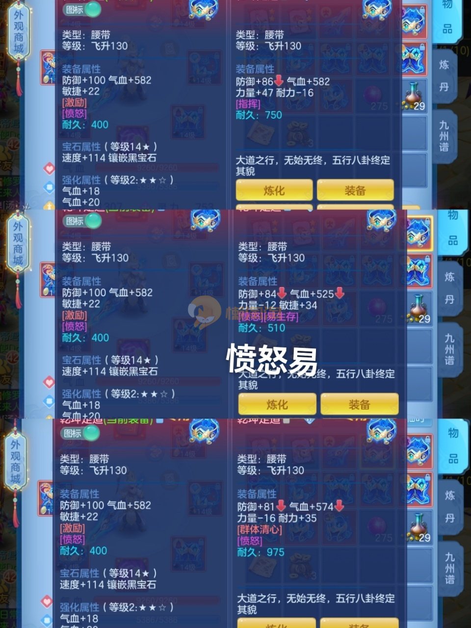 6件14段1星140级男普陀,8专属血脉愤怒易神器,9满兽魂