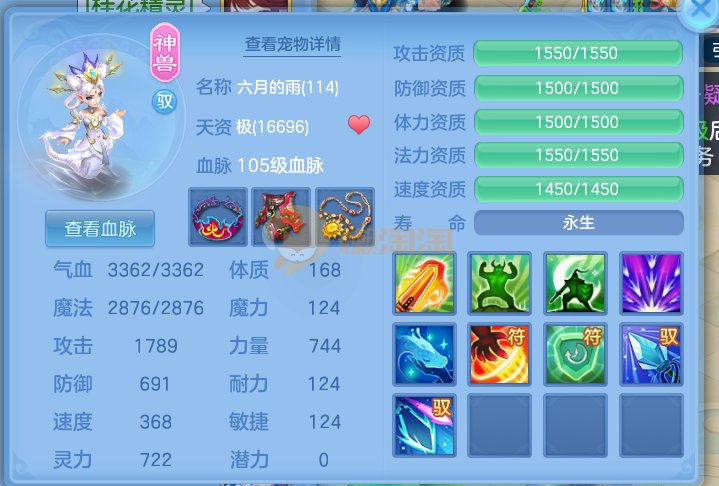 水龙吟109女无量,带双蛇内丹进阶,宝宝体系齐全。可挑战一切日常周常,PK不在话下
