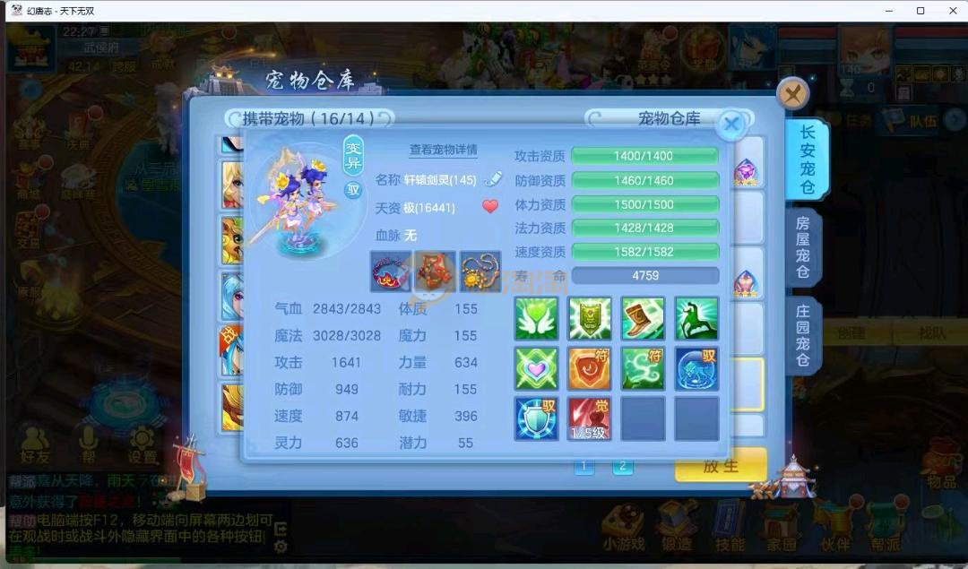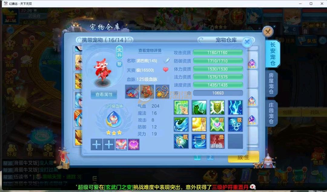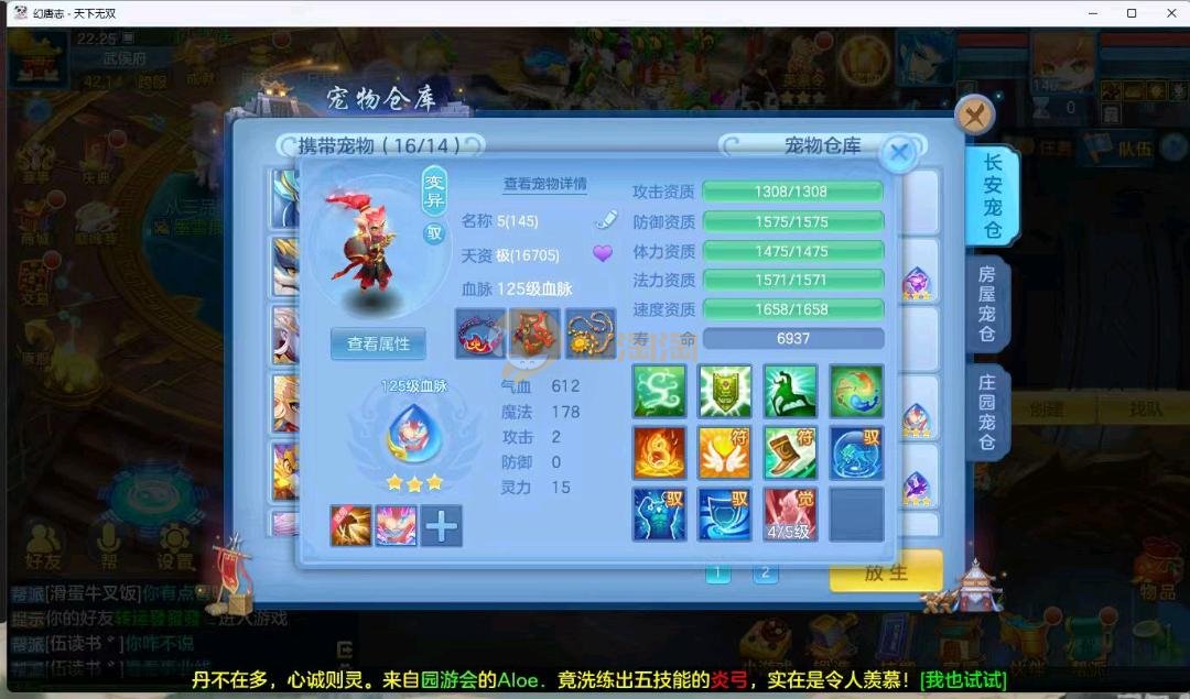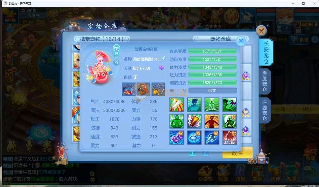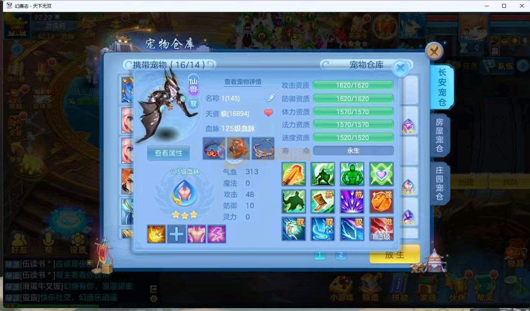 天下无双140男万兽 进阶强化仙兽14段4件装备带单加35愤怒易,其他装备单加40左右,高级坐骑成就坐骑冰晶庄园 宝宝3公主 21个成品输出宝宝,底子全满 御守16红具体细节看图 QQ邮箱不送 一年换绑账号 验证码找懒懒