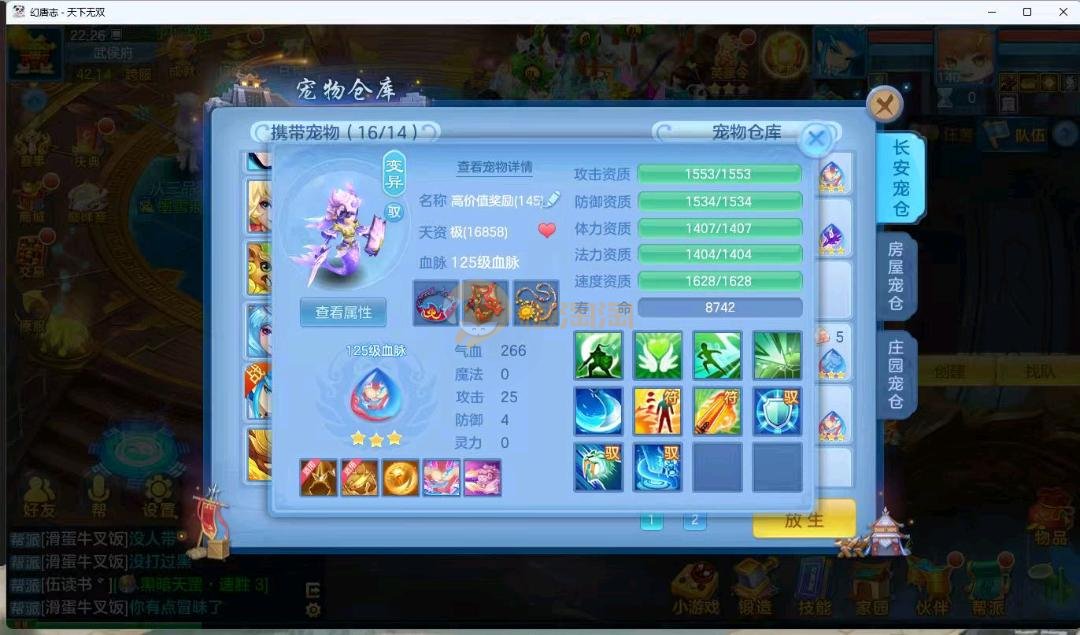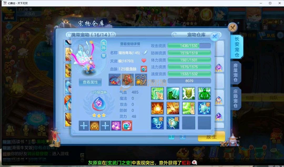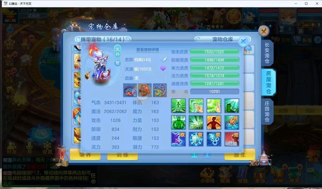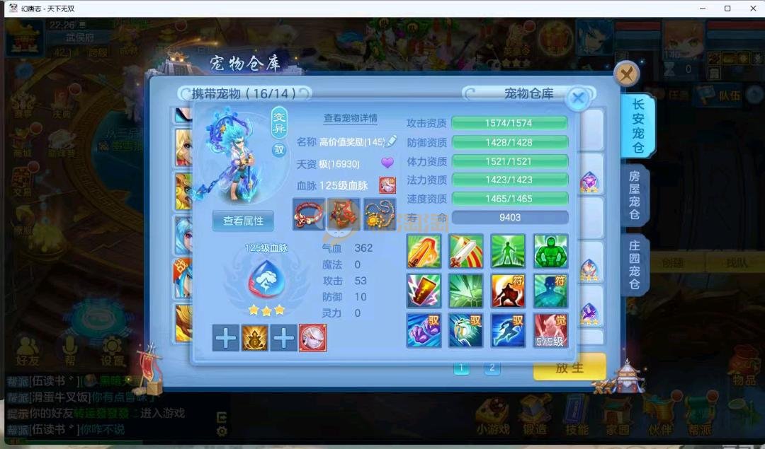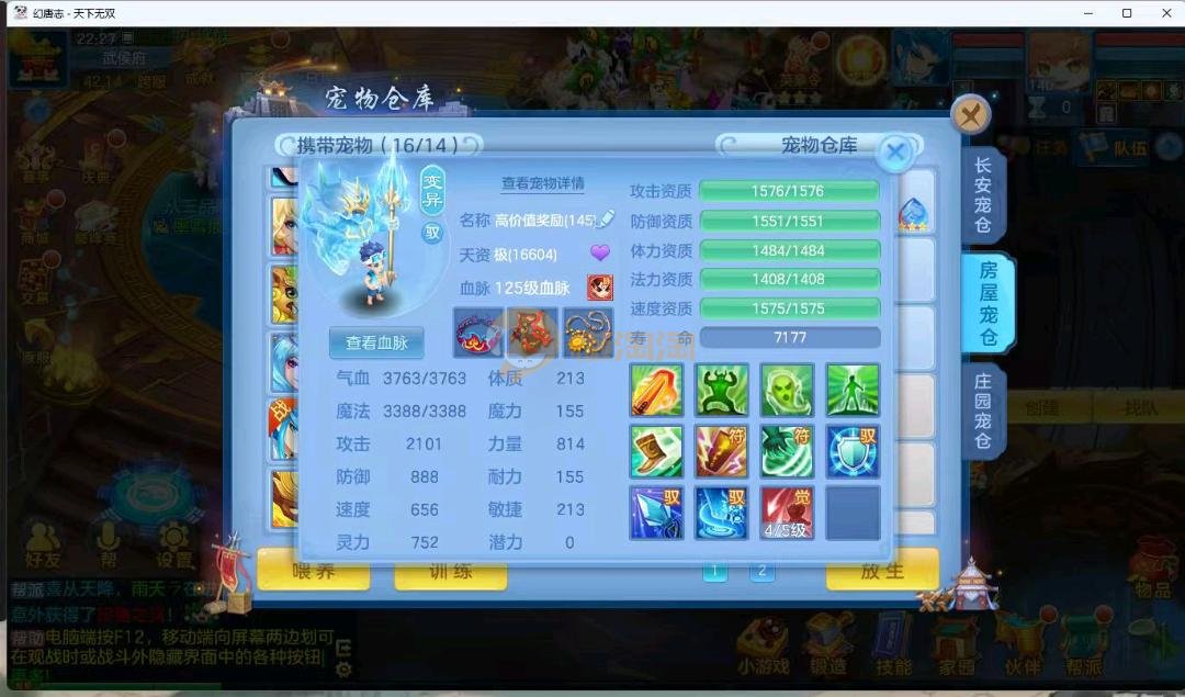 天下无双140男万兽 进阶强化仙兽14段4件装备带单加35愤怒易,其他装备单加40左右,高级坐骑成就坐骑冰晶庄园 宝宝3公主 21个成品输出宝宝,底子全满 御守16红具体细节看图 QQ邮箱不送 一年换绑账号 验证码找懒懒