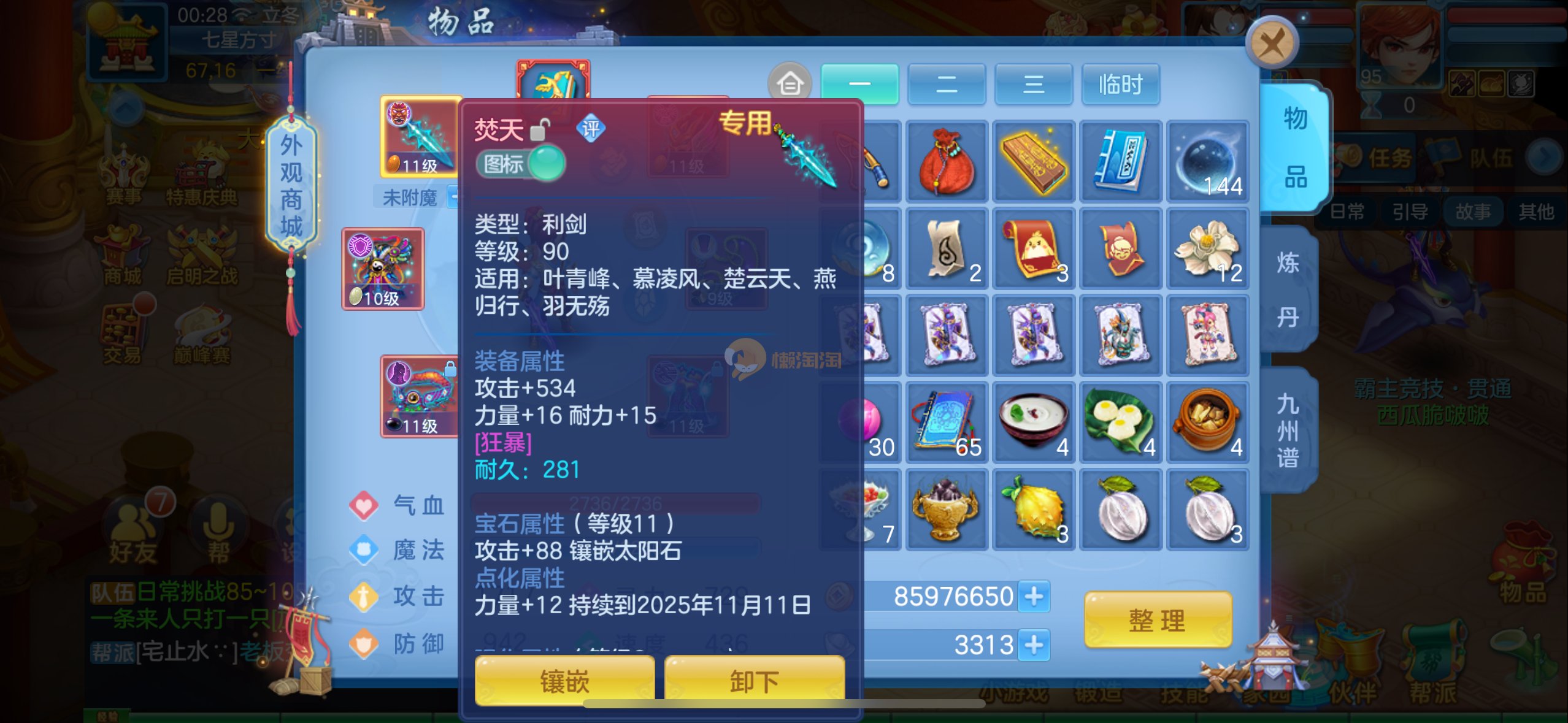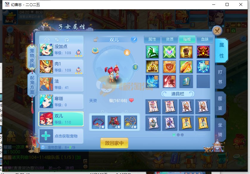双月卡还有20多天,2个孩子一个天策一个佛门,差一点满属性易成长双加武器,冷静腰带,2套人物加点,2套坐骑加点,带皮肤童子,带皮肤老虎帝火碧波,一仓库护符4级项圈4级衣服,日常难度随便打。其他自己看