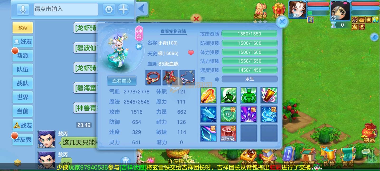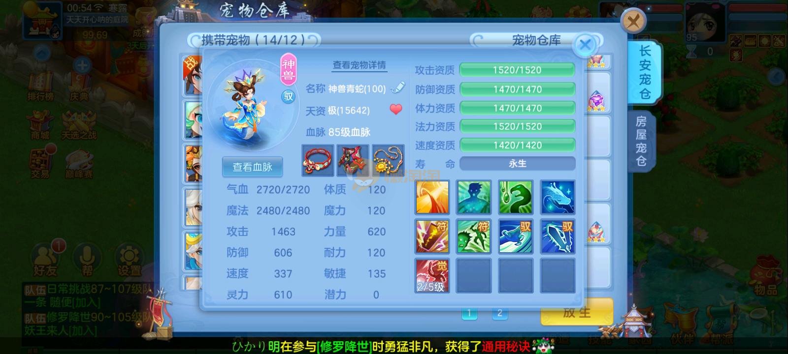 95满配天策3神2内丹龙蛇1蛇,5个满兽魂,仓库有法辅装备可以直接转