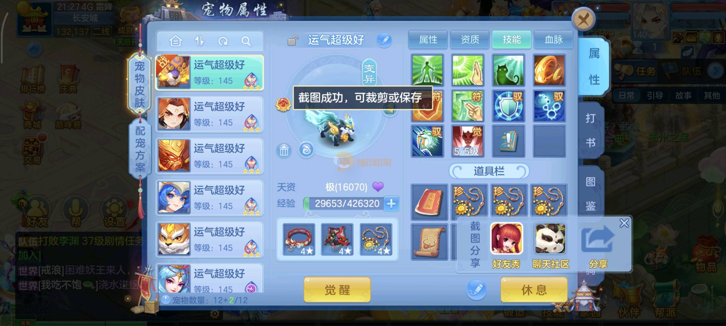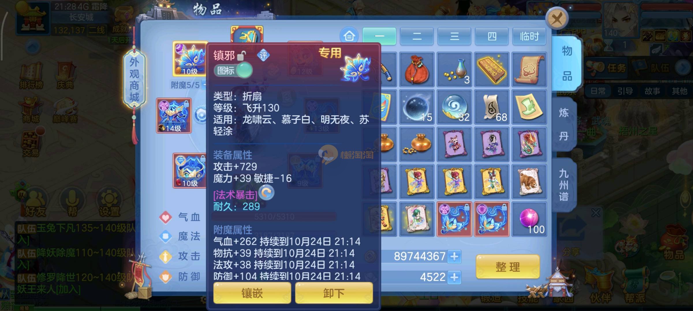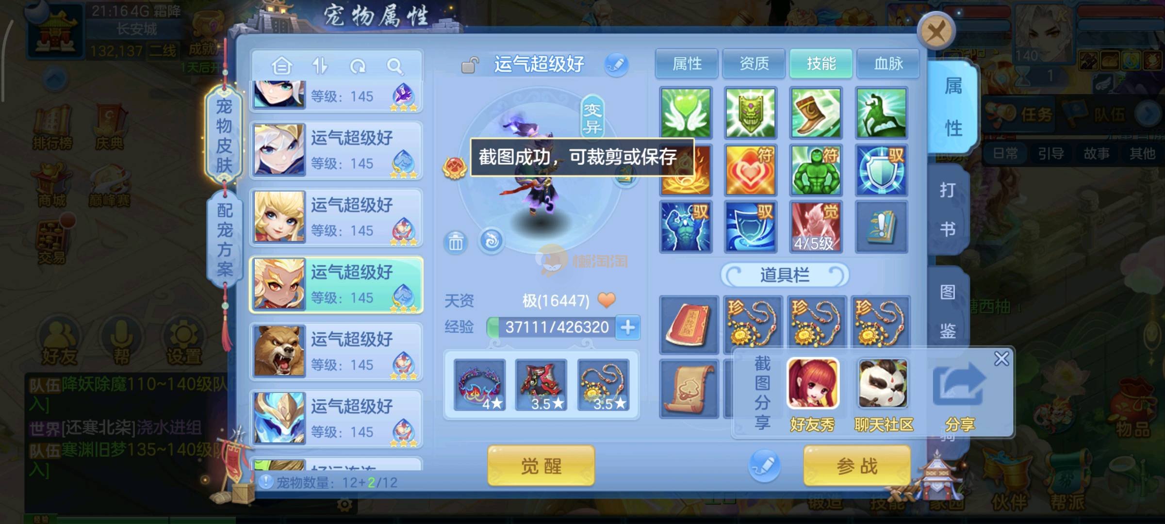 今年勇140男魔王,14段衣服13段项链,双红愤怒腰带 有玉龙和蛇 都只缺最后的强化 pk宝宝全 千速 尾速 首发老虎 首发孟婆 双红腰带 易成长高单加衣服 法爆武器,装备均单加42,高级坐骑龙 花2000金进化变身 ,1年换绑。不变卡1576灵 变卡1600无压力