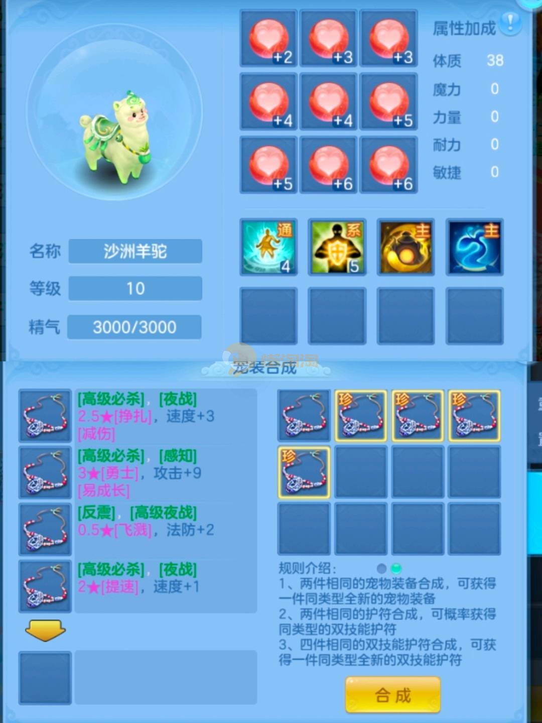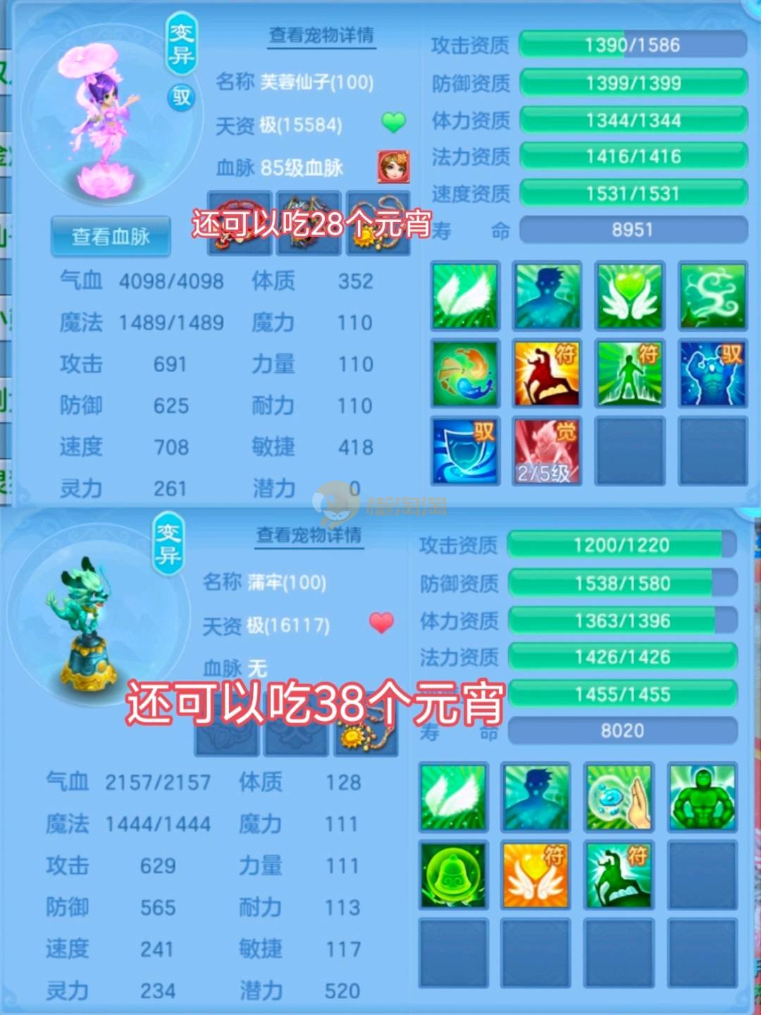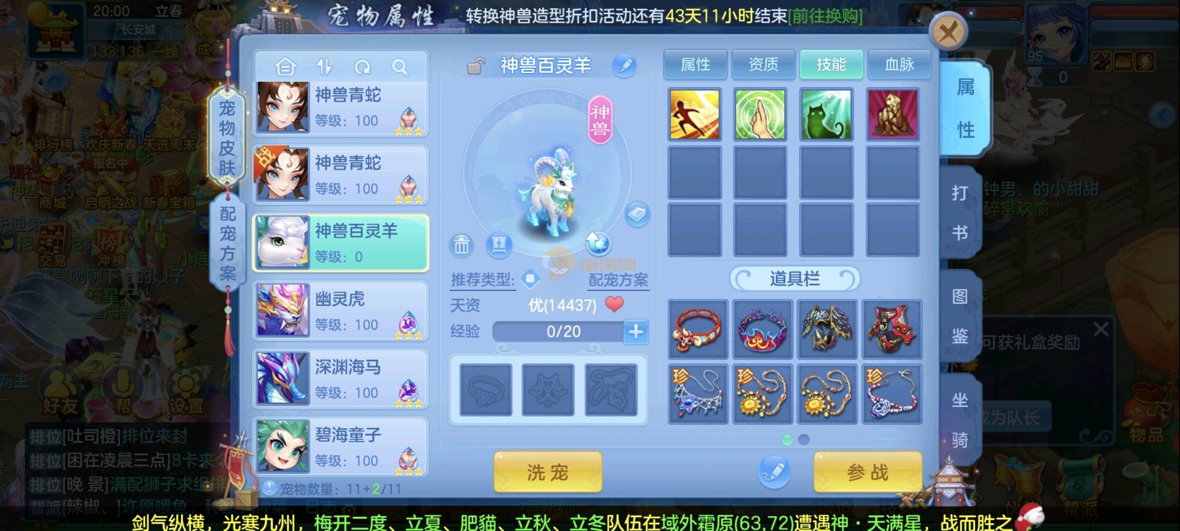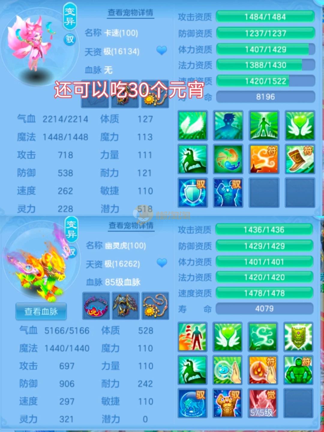 三神兽 均有内丹(剑气蛇兽魂满,法蛇兽魂5),雷光鼠(天赋+兽魂15),2童子(2天赋),2九头(2天赋,1皮肤),幽灵虎(天赋,5兽魂),浣熊大师(天