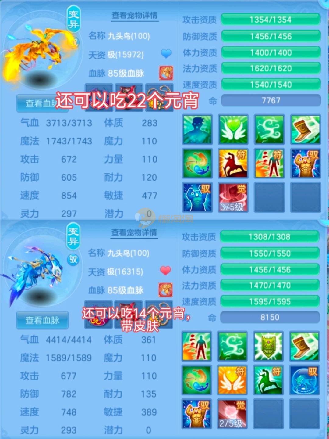 水龙吟 95丹山 12段 高级坐骑 两套属性,两套装备格子 双子女第二饰品