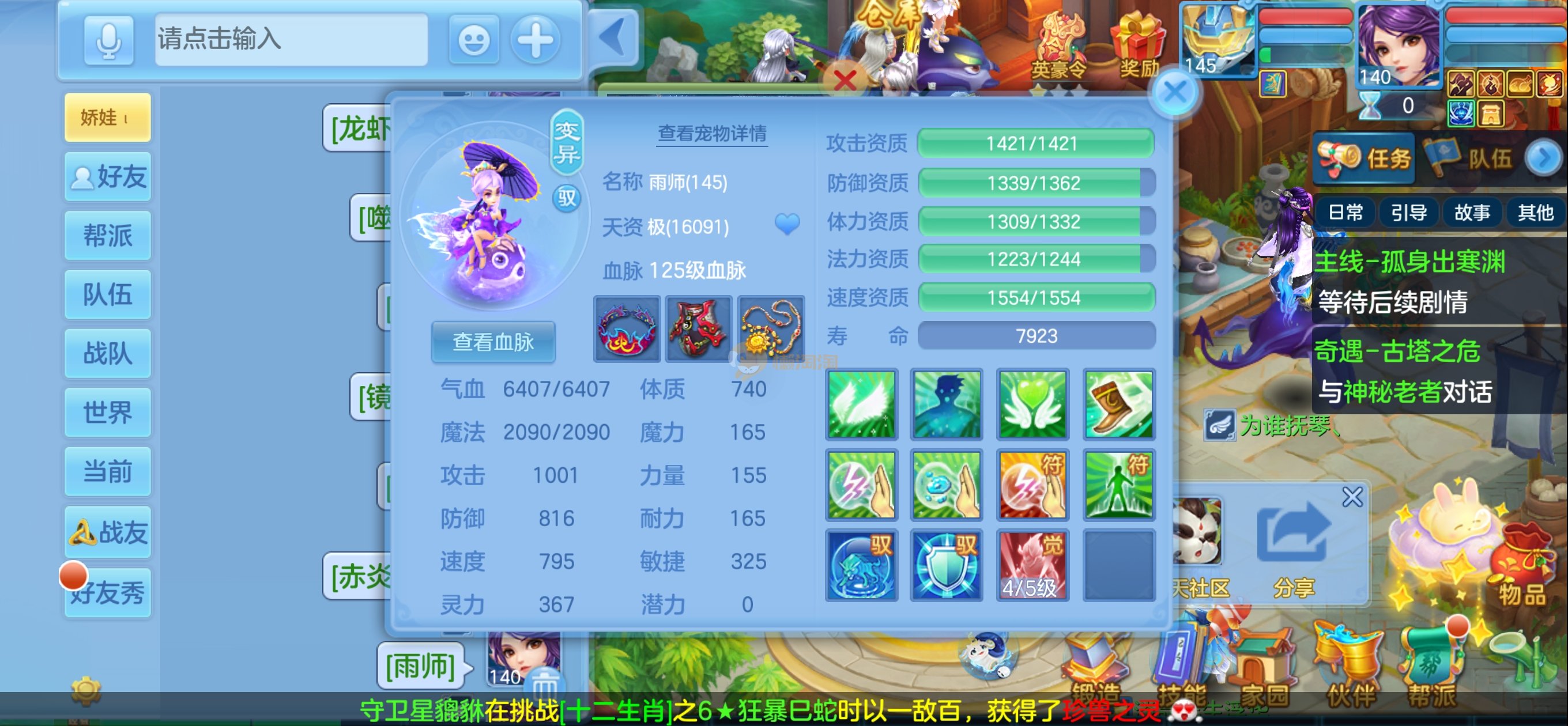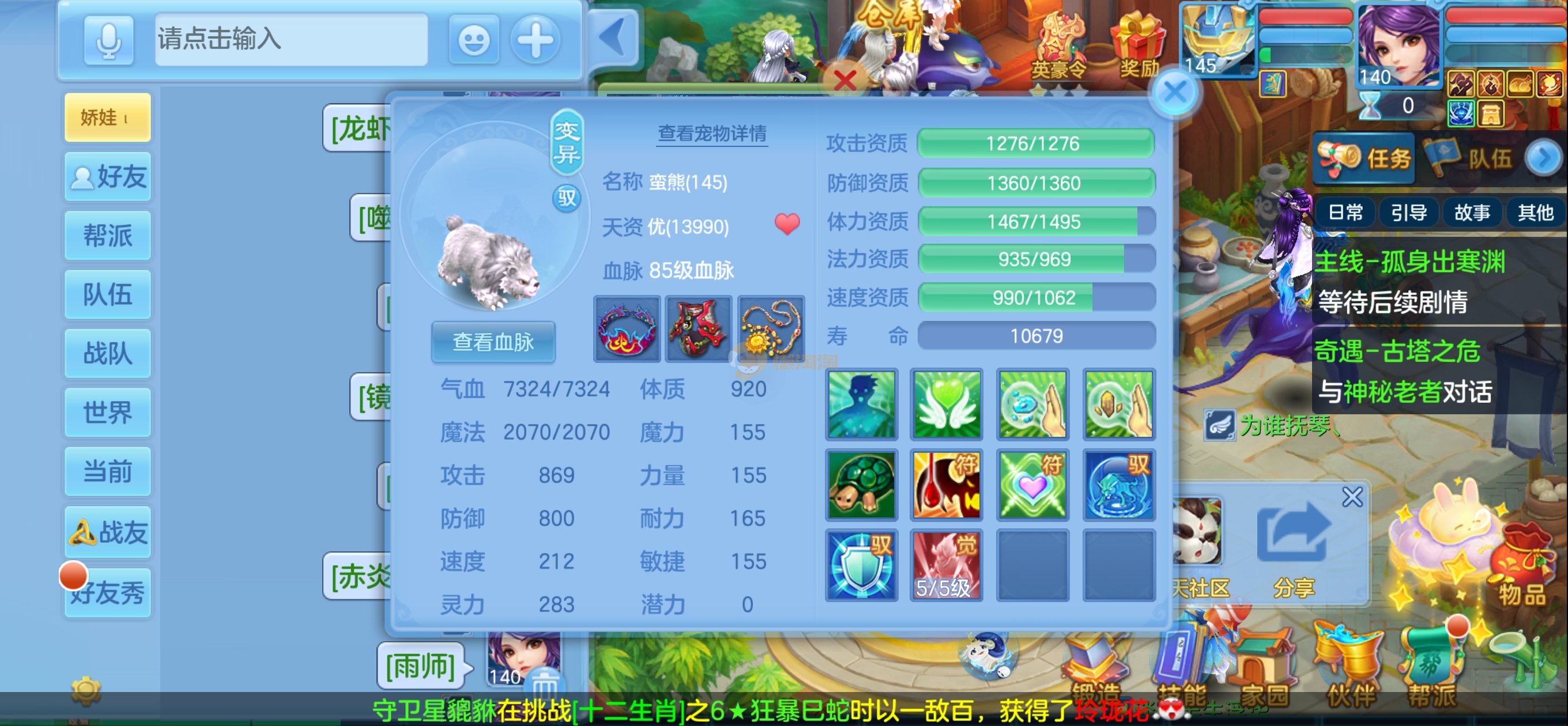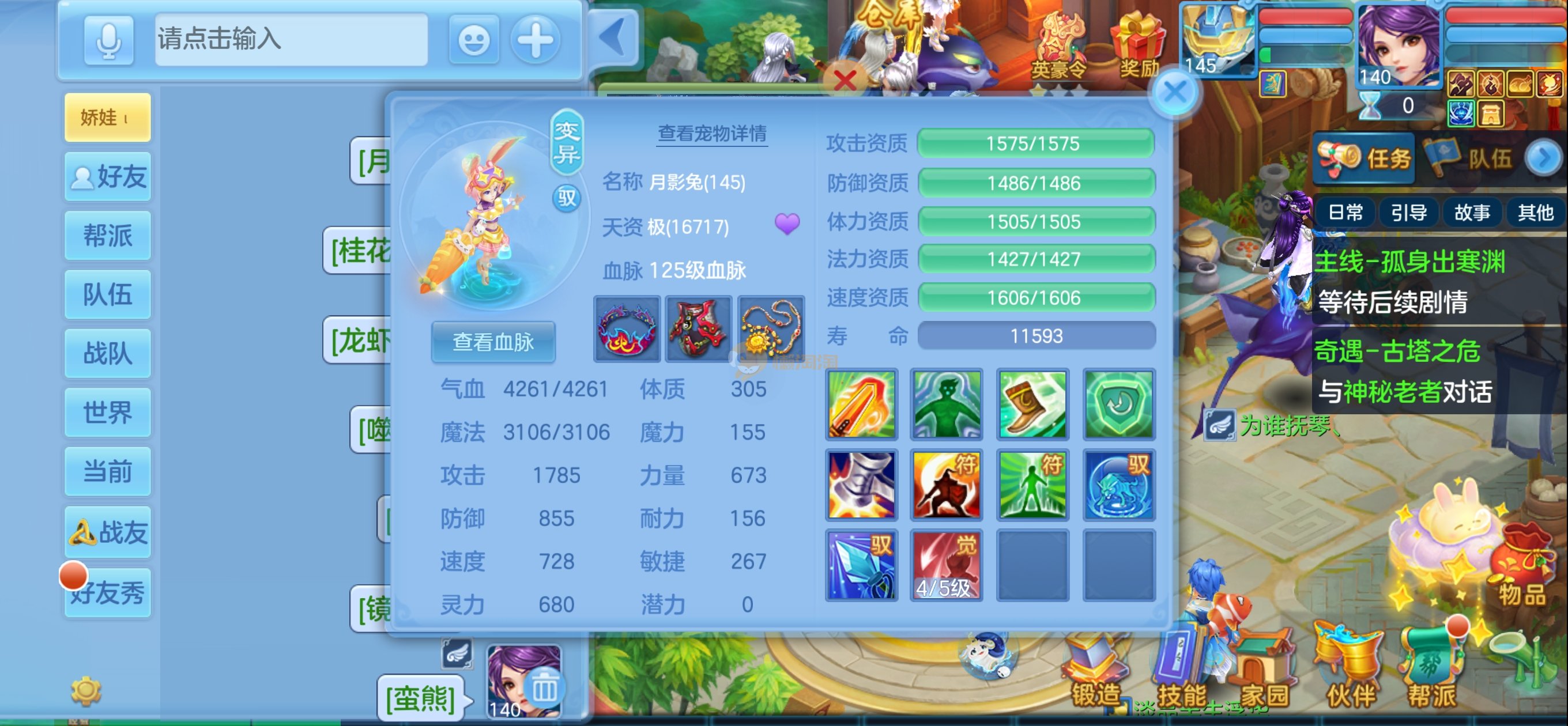 七天换绑,安全无忧。140女冥月天,13锻满修炼,伙伴满锻,10个宠物皮肤,4只满兽魂,上手可玩