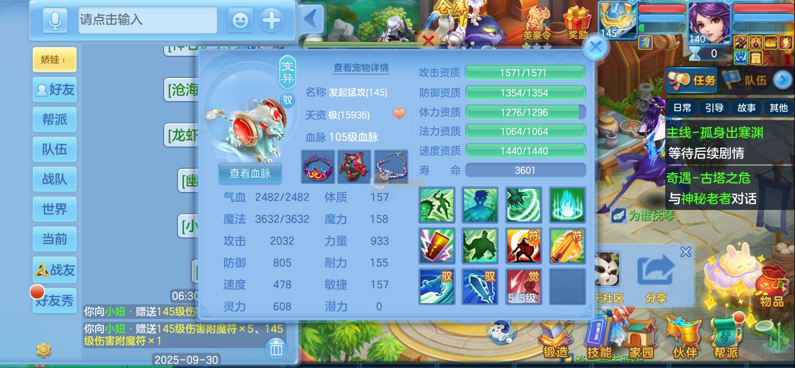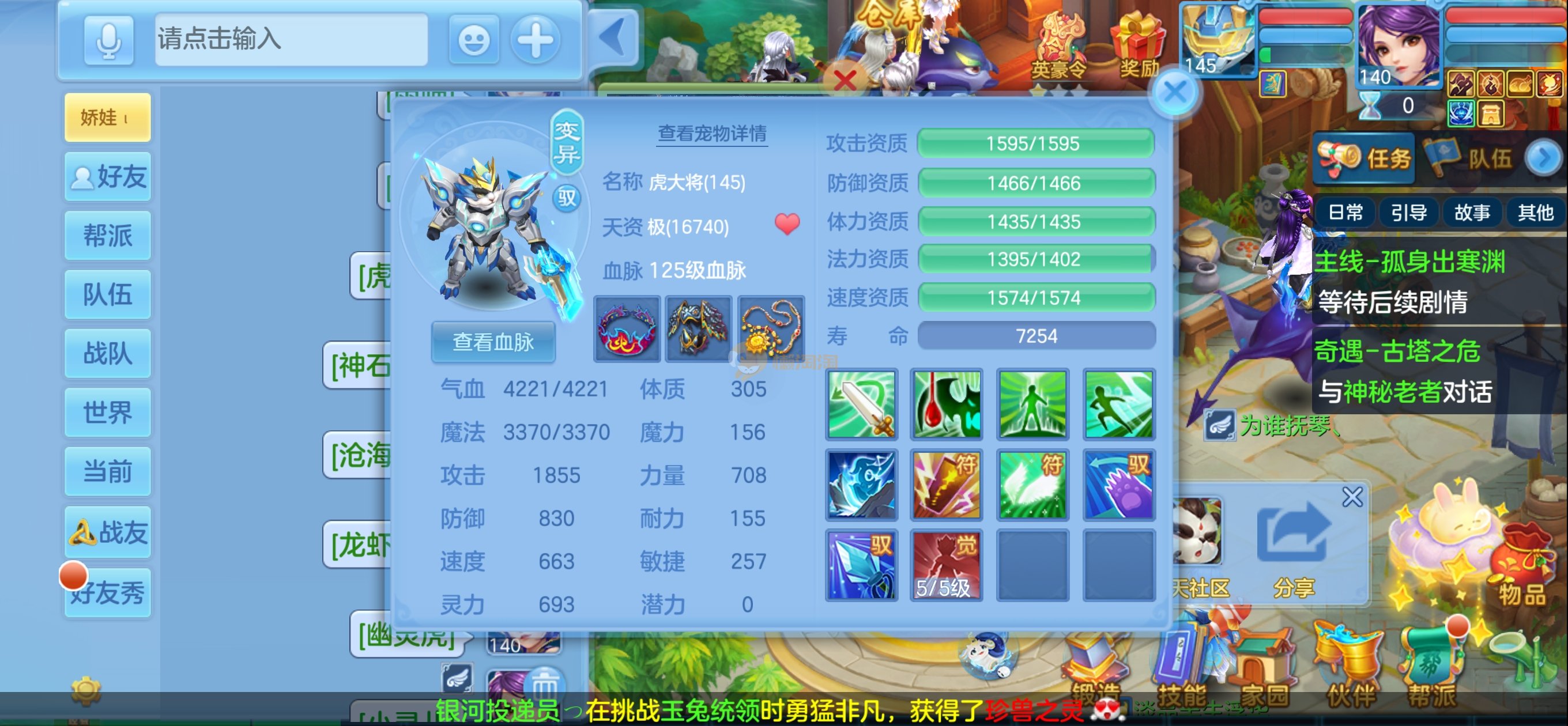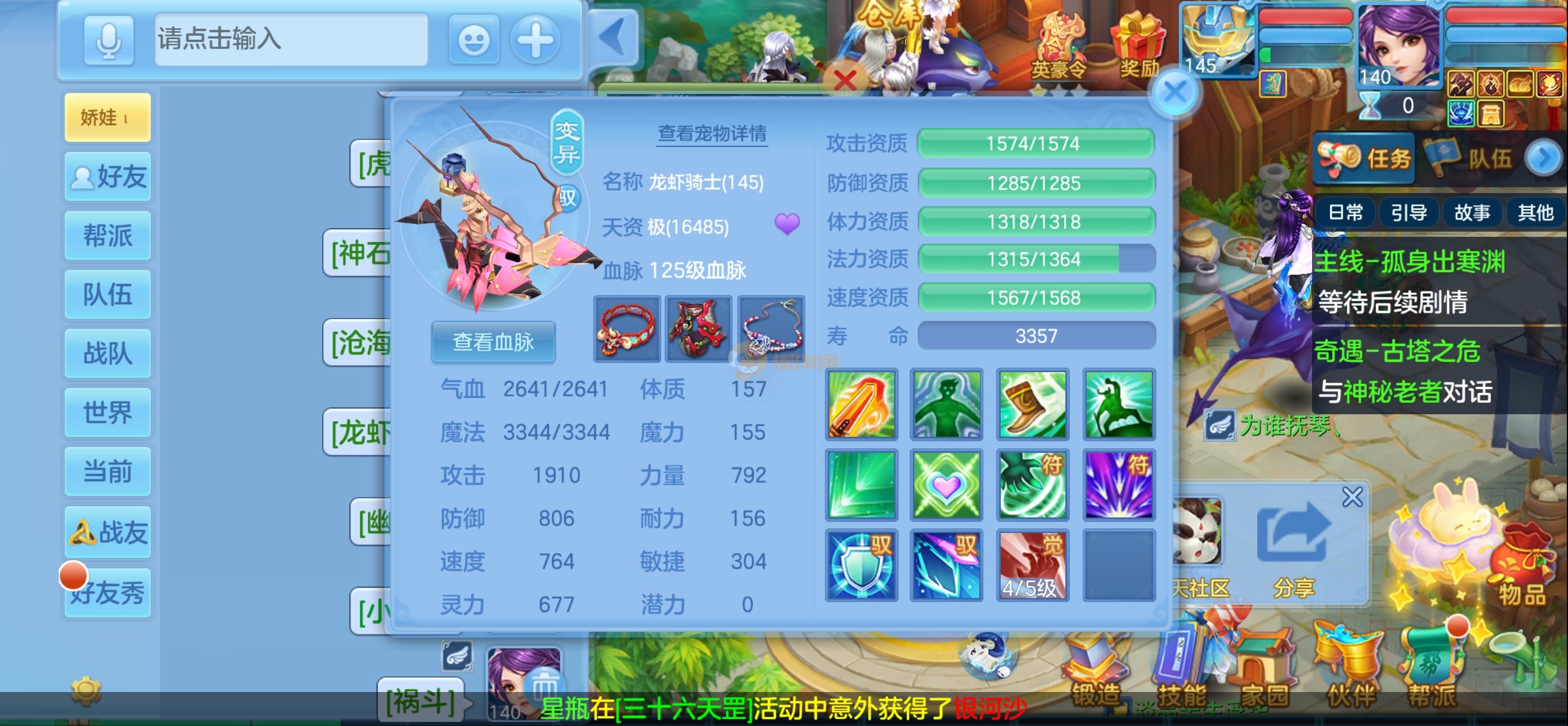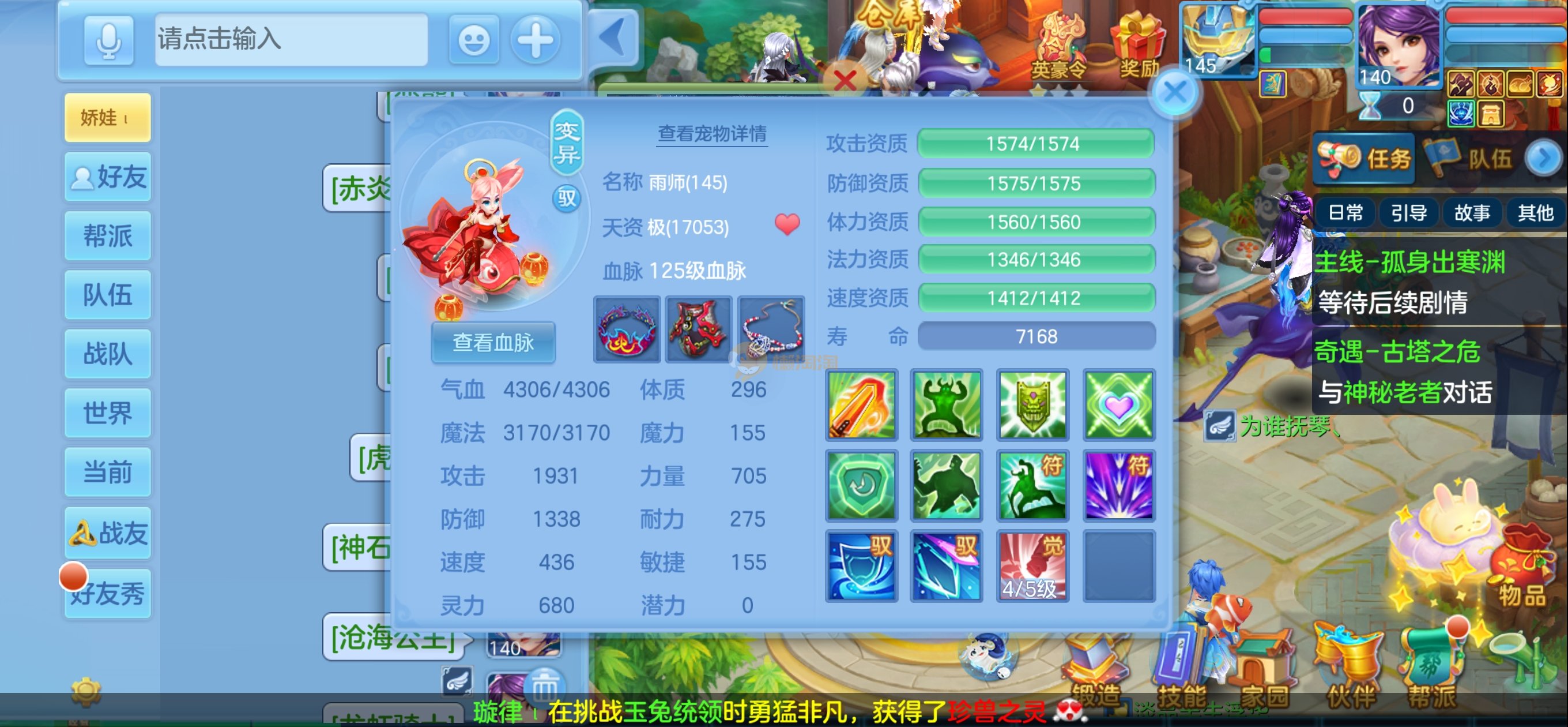 七天换绑,安全无忧。140女冥月天,13锻满修炼,伙伴满锻,10个宠物皮肤,4只满兽魂,上手可玩