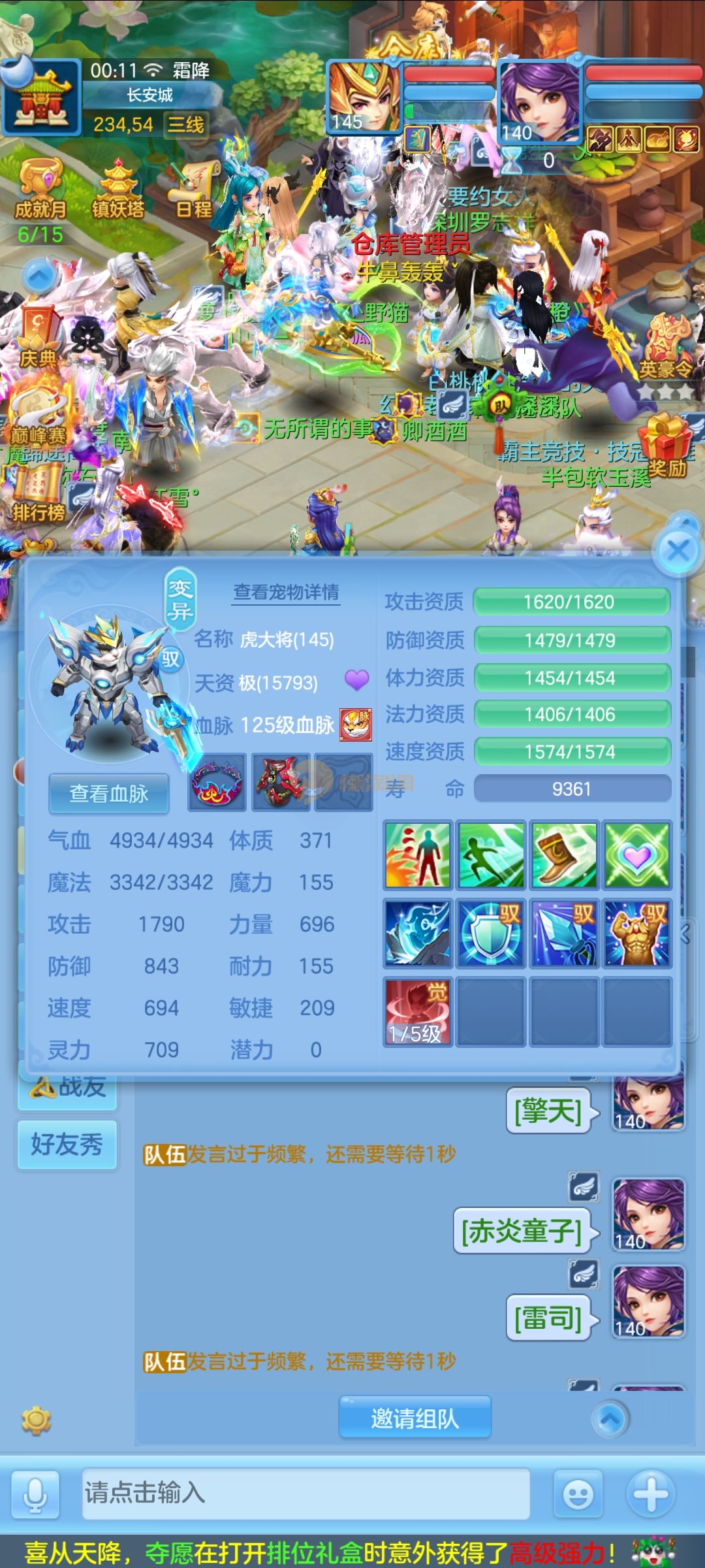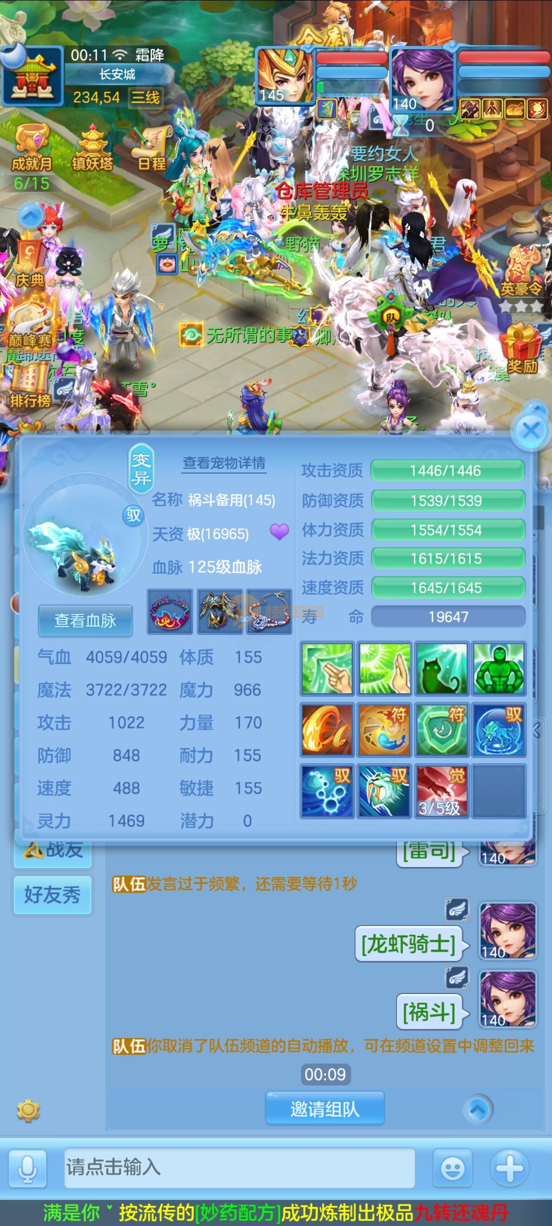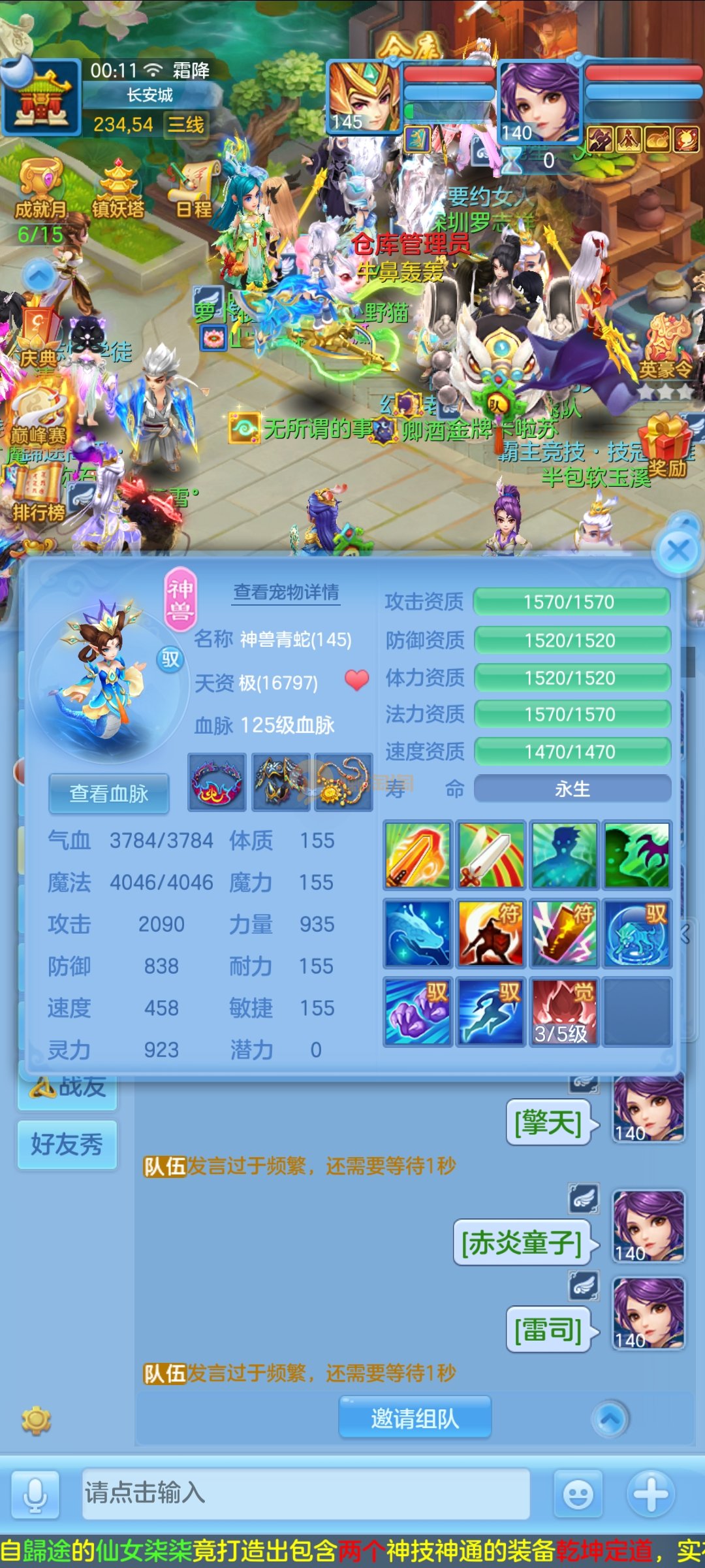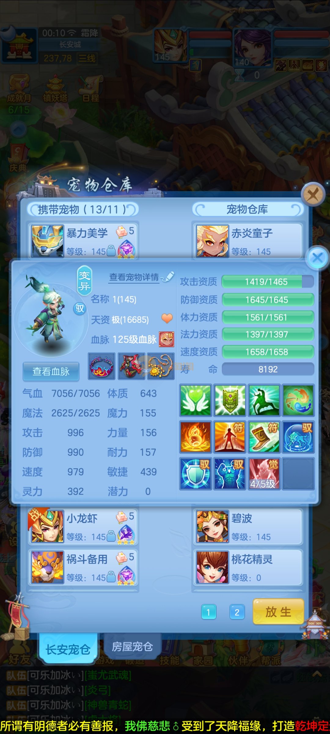 极品1540灵祸斗,双公主,双雷丝,内丹神兽蛇,完美天策孩子,童子三个,红心冥煞,5个皮肤,6个满兽魂,宝宝齐全,各种难度没问题。