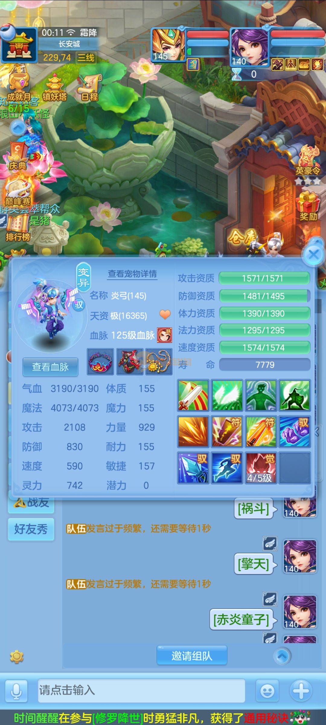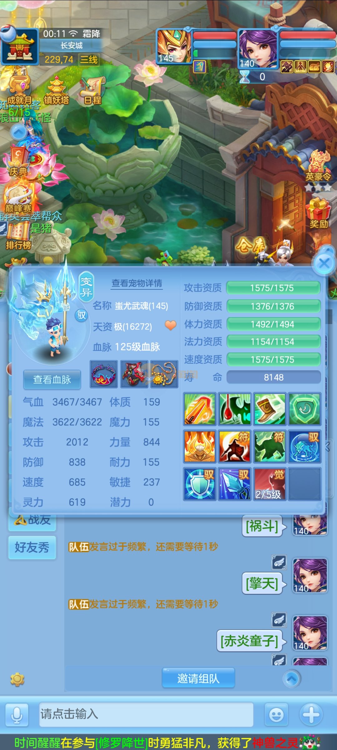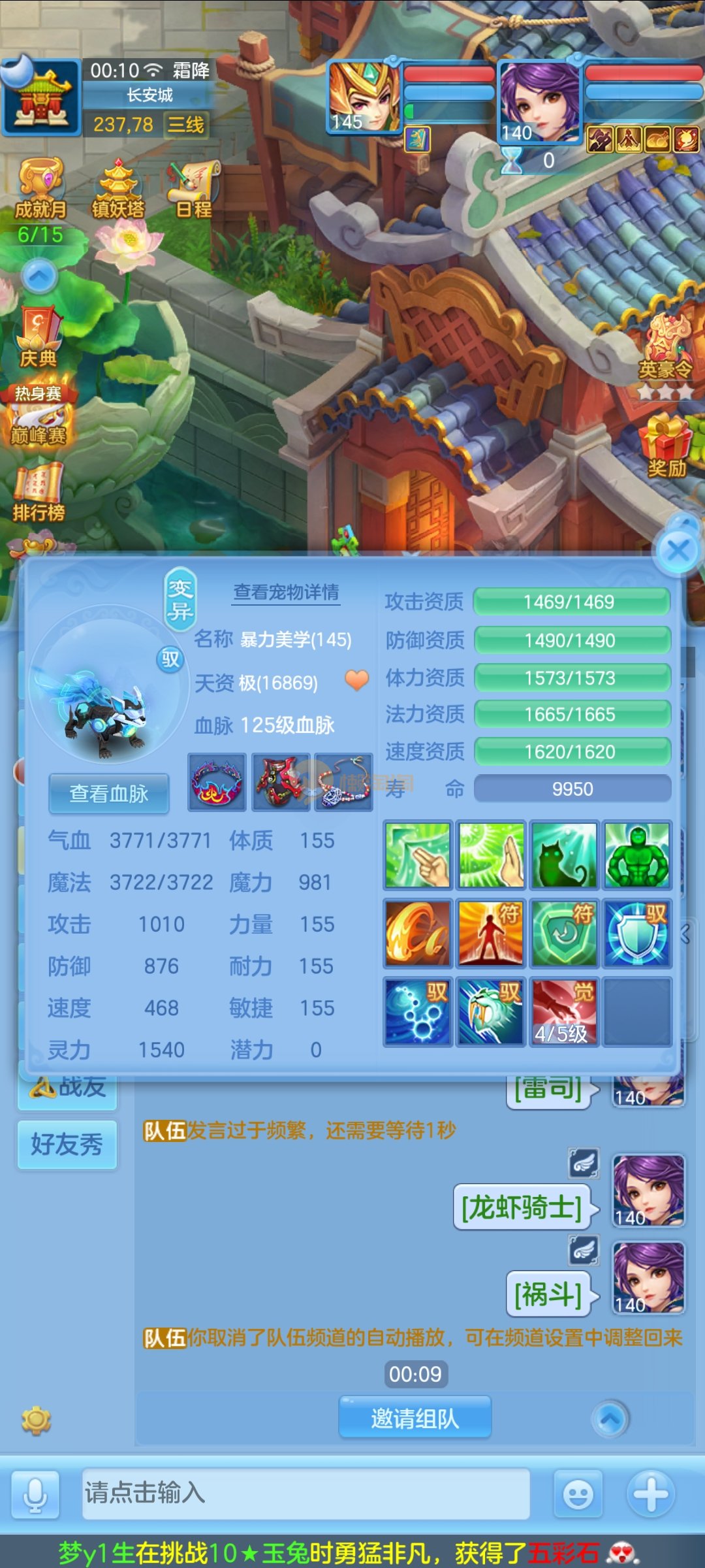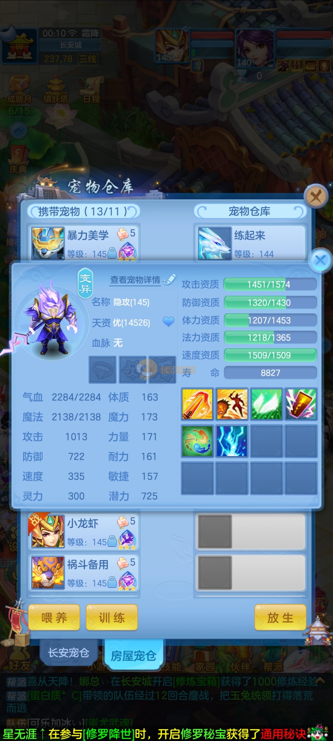 极品1540灵祸斗,双公主,双雷丝,内丹神兽蛇,完美天策孩子,童子三个,红心冥煞,5个皮肤,6个满兽魂,宝宝齐全,各种难度没问题。