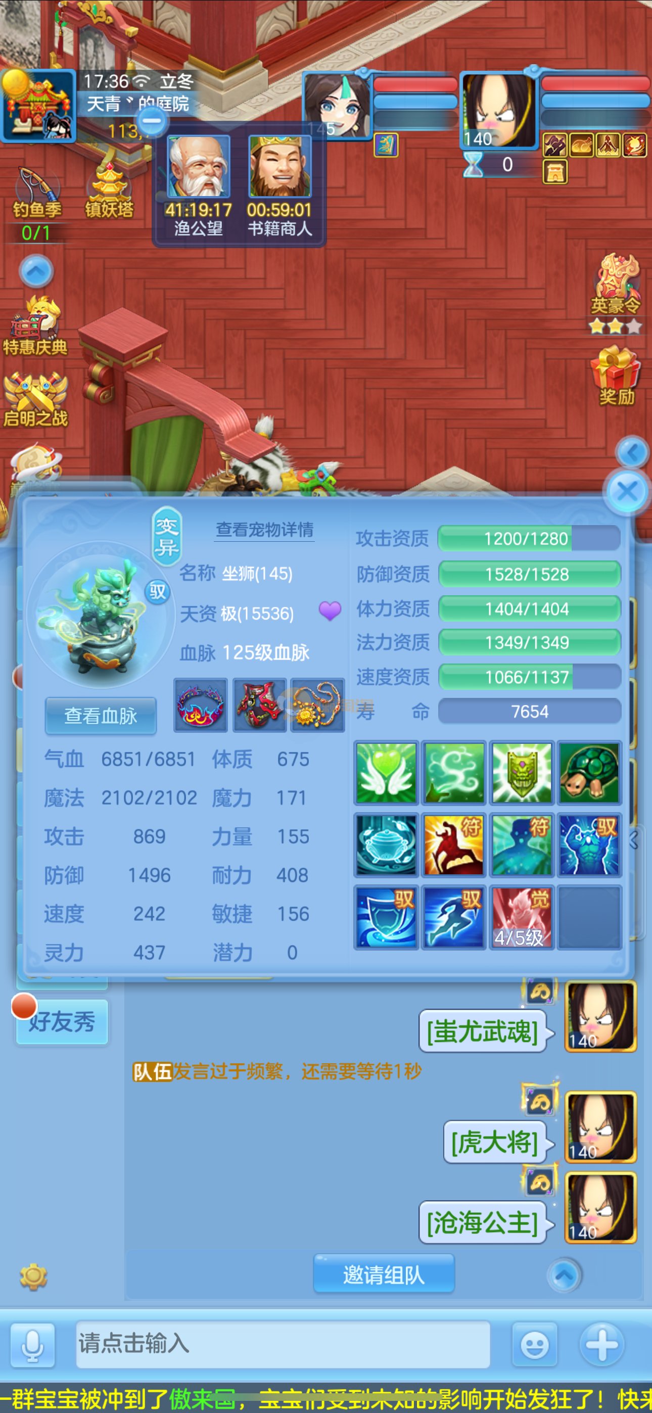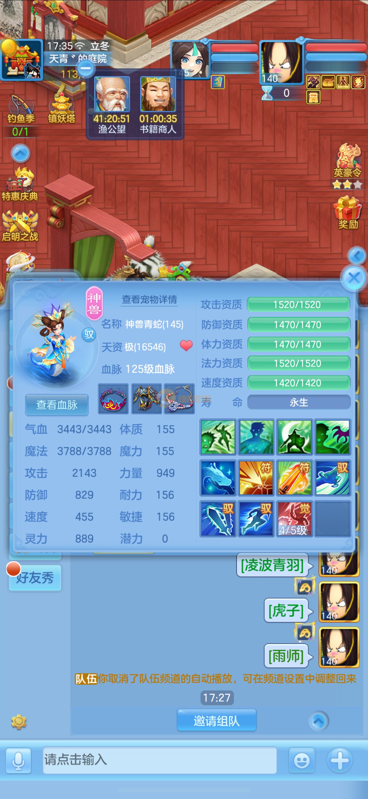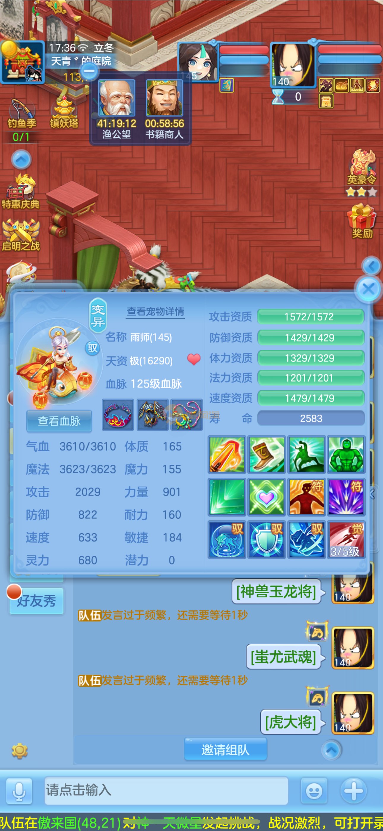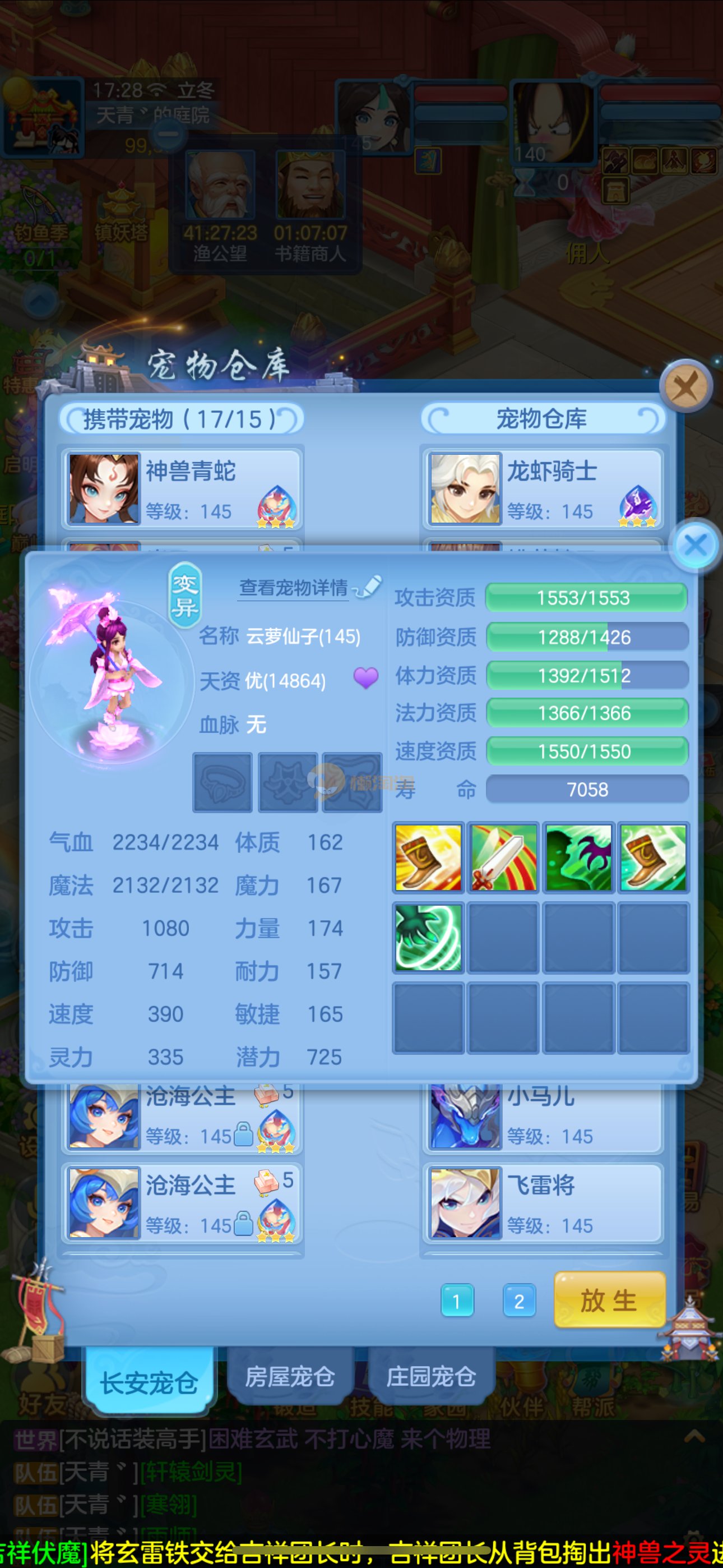 首页> 神武手游> 志气冲天140男普陀,带庄园。双神,强化玉龙。三公主。12满兽魂7专属。卡速齐全。带1500金