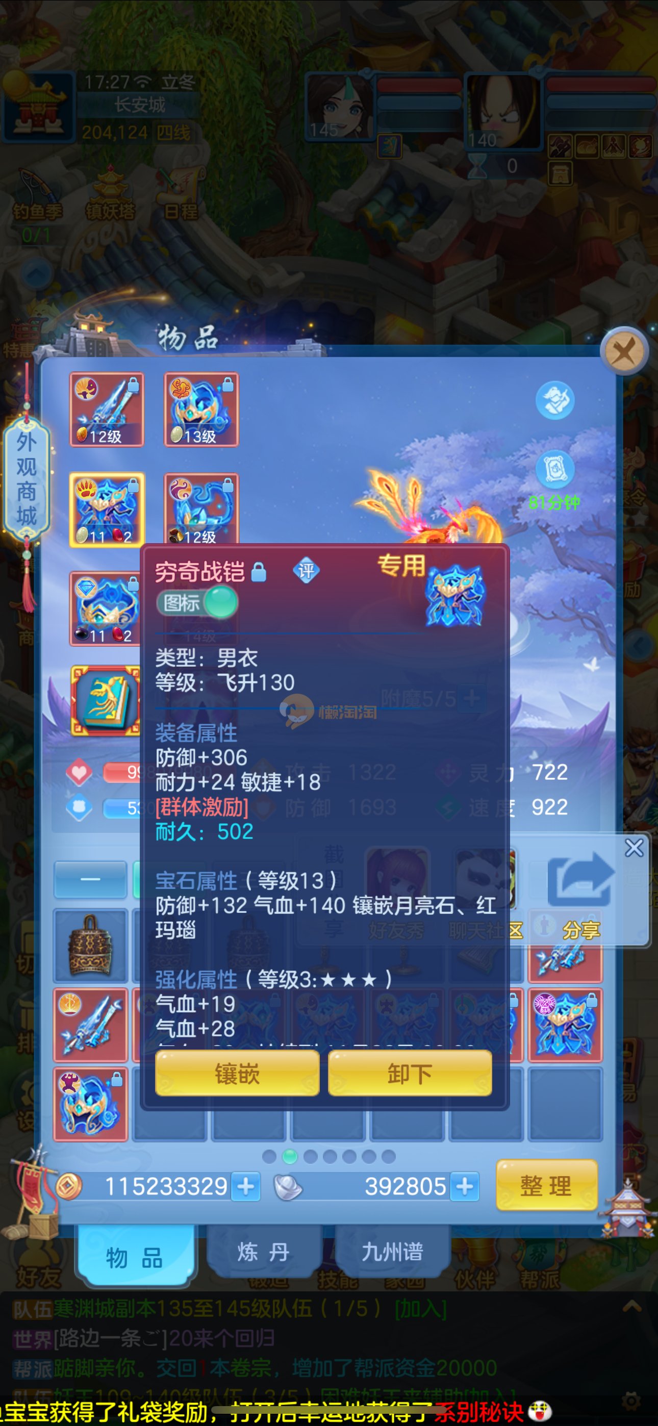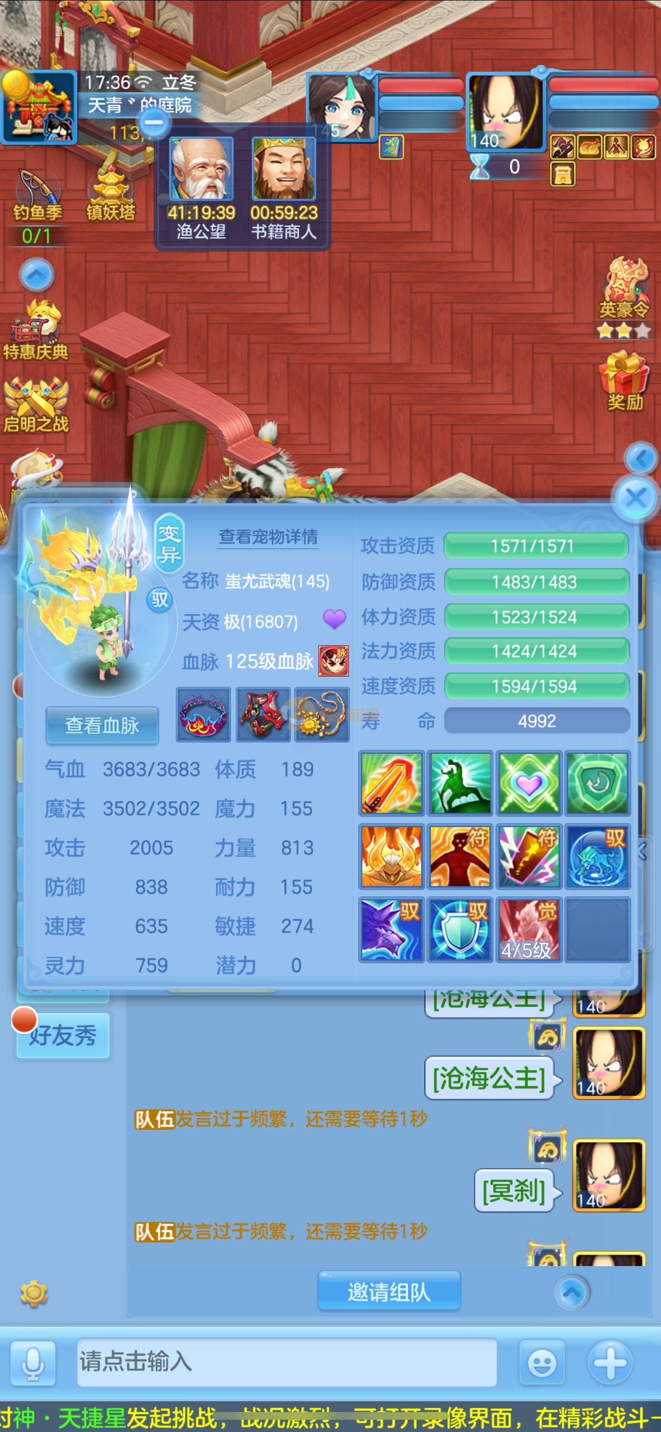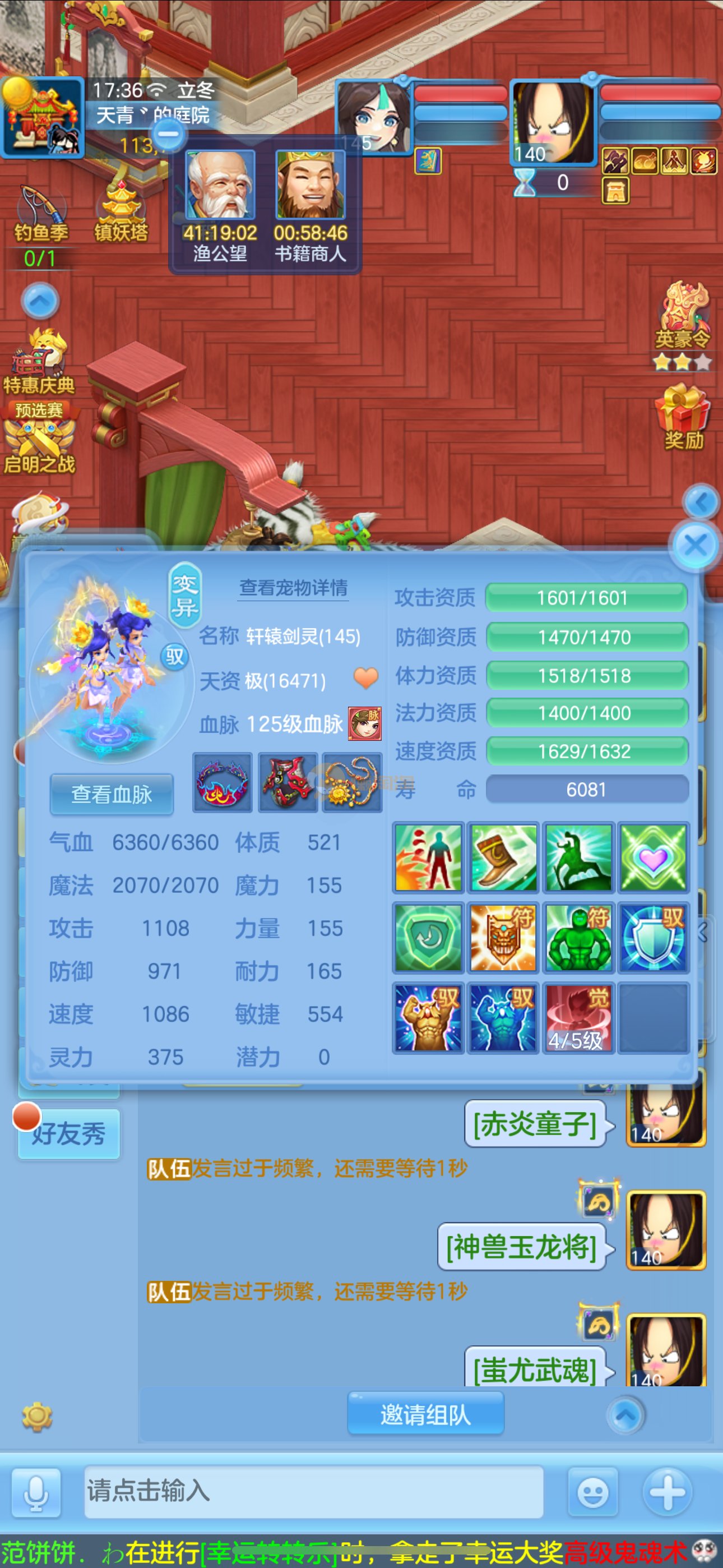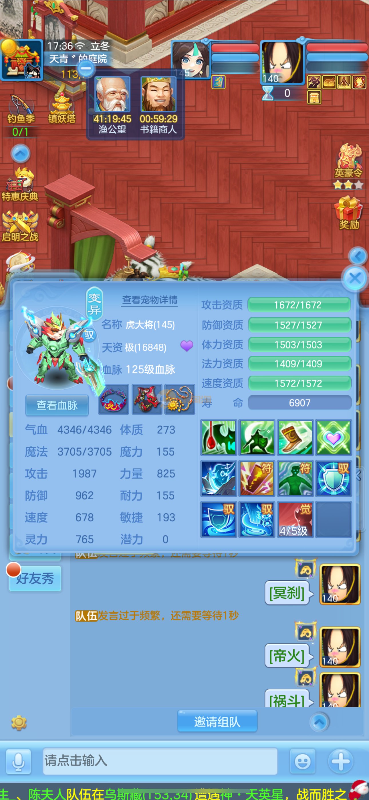 首页> 神武手游> 志气冲天140男普陀,带庄园。双神,强化玉龙。三公主。12满兽魂7专属。卡速齐全。带1500金