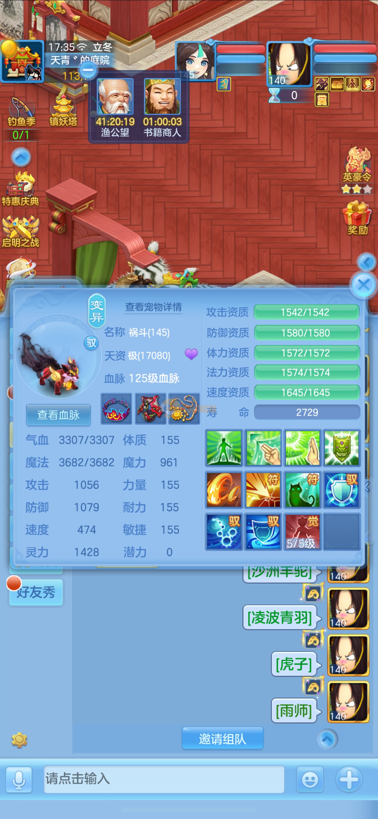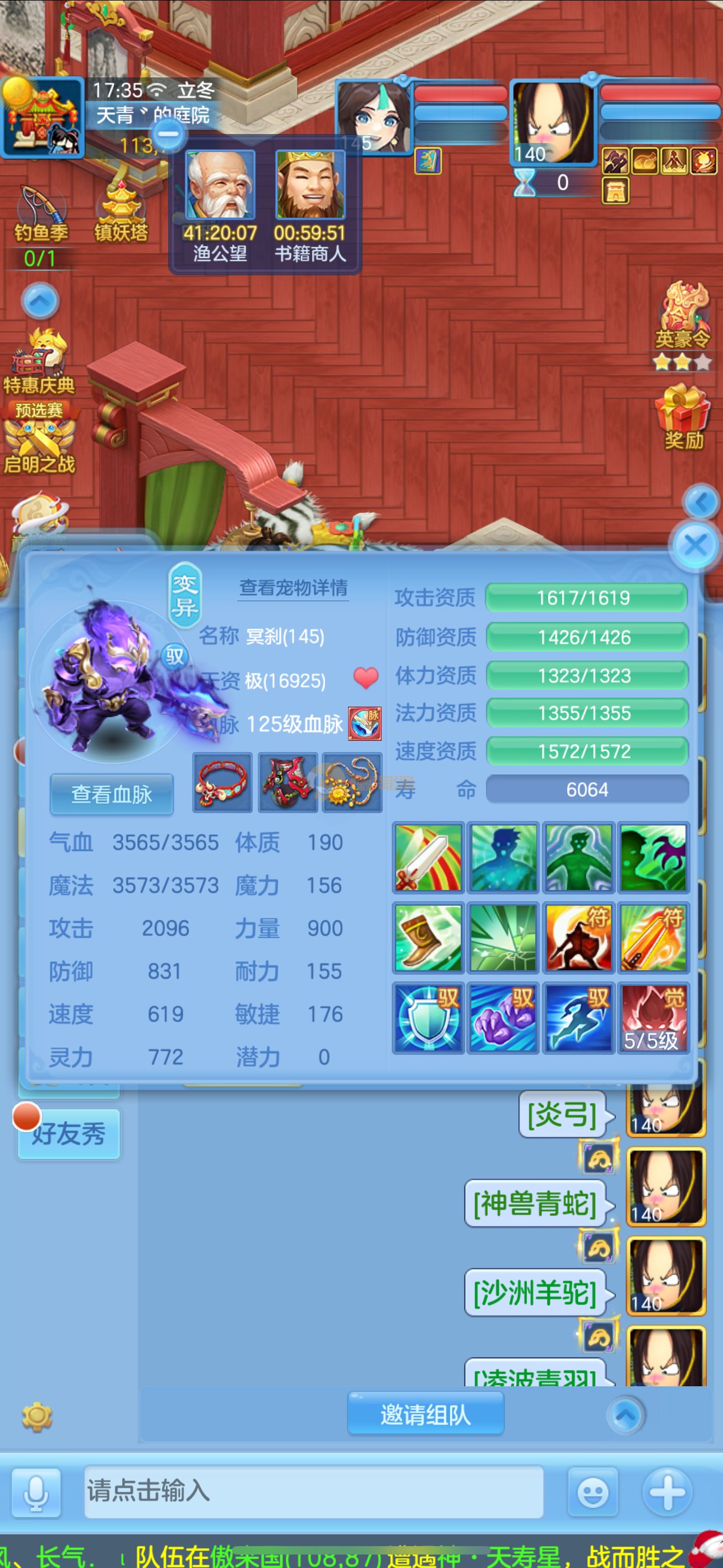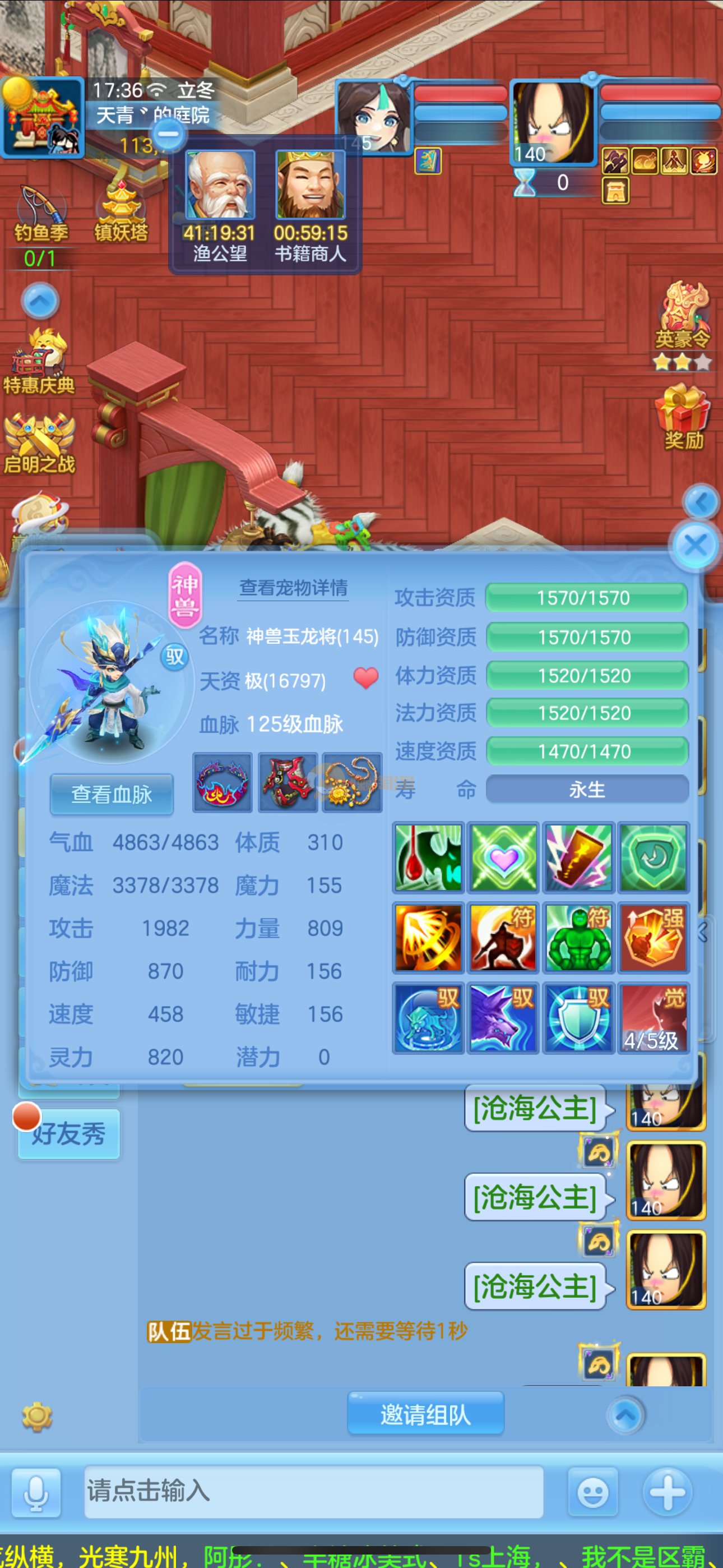 志气冲天140男普陀,带庄园。双神,强化玉龙。三公主。12满兽魂7专属。卡速齐全。带1500金