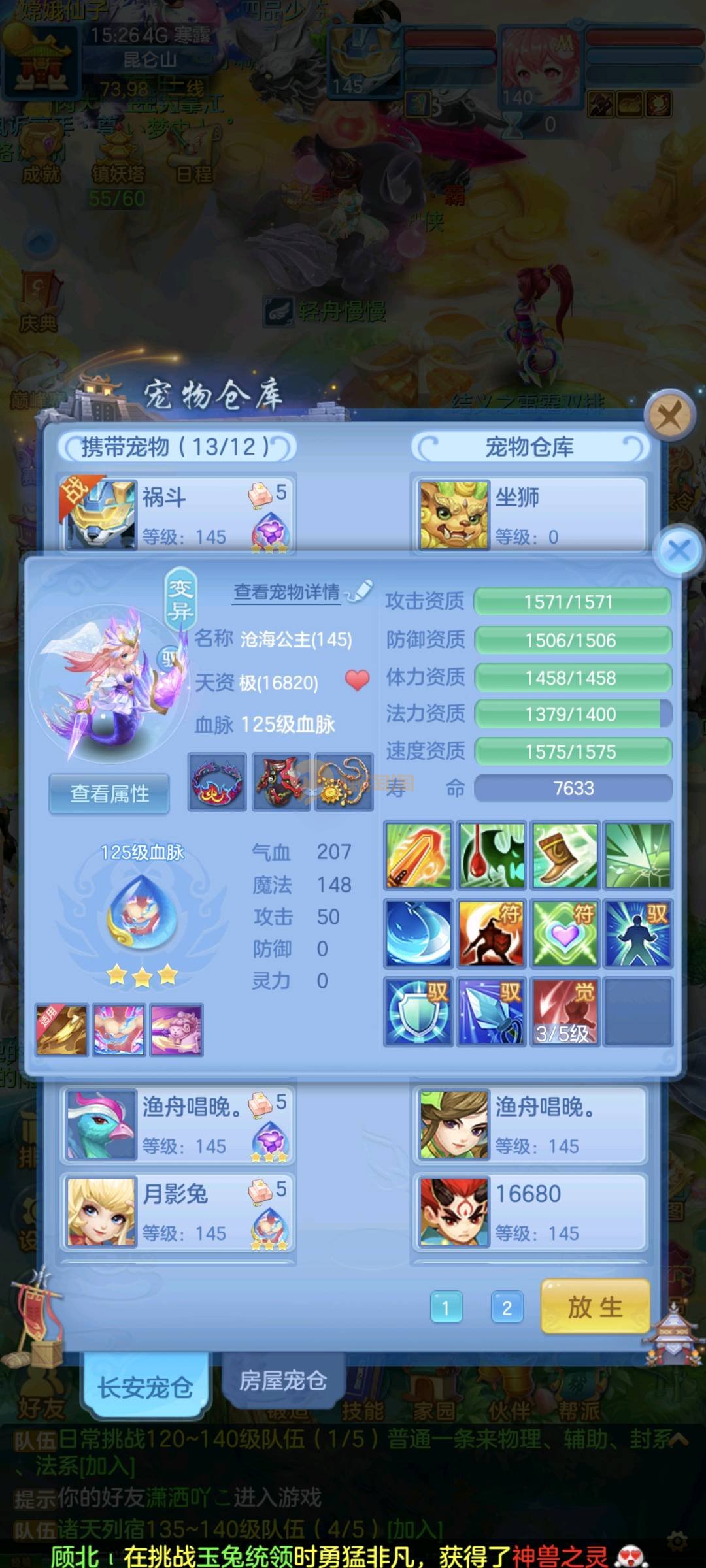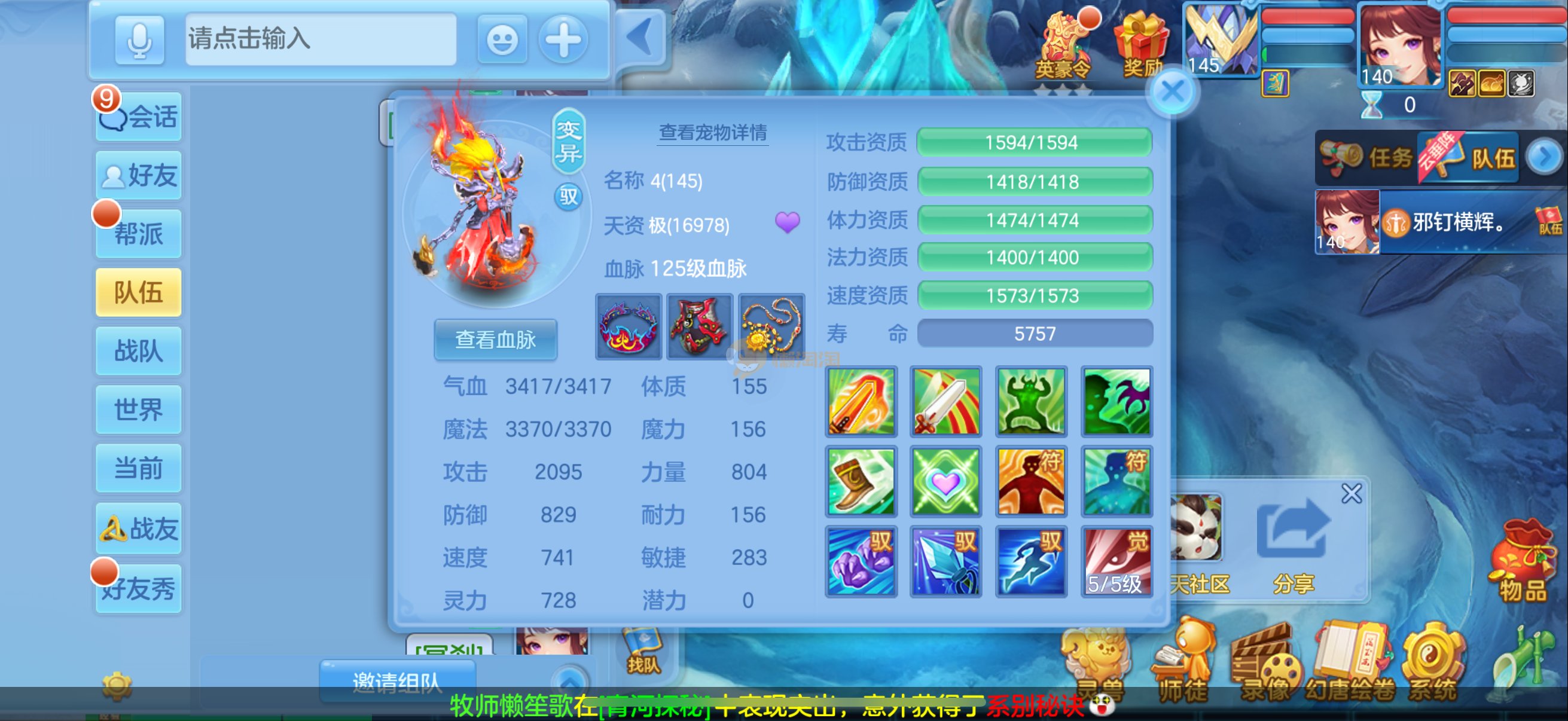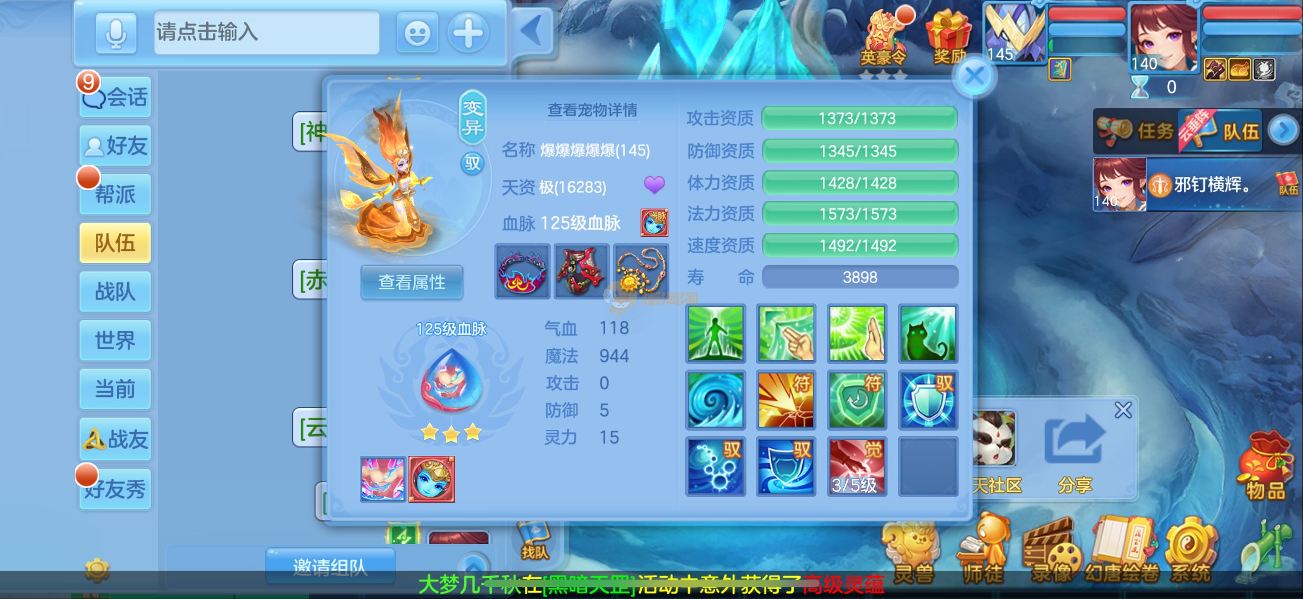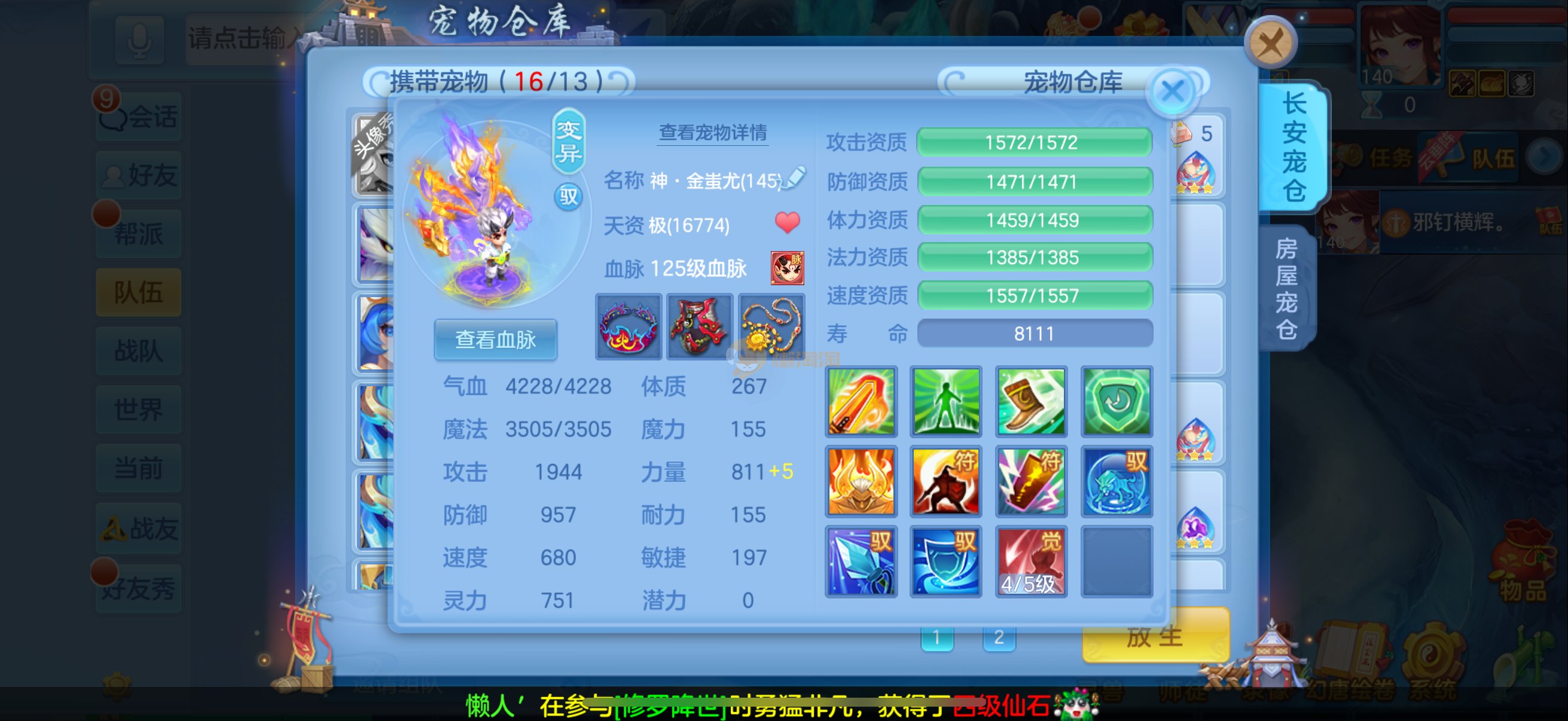 三仙带蛇宝宝齐14段天策4套属性点化完不变卡可以到2700伤