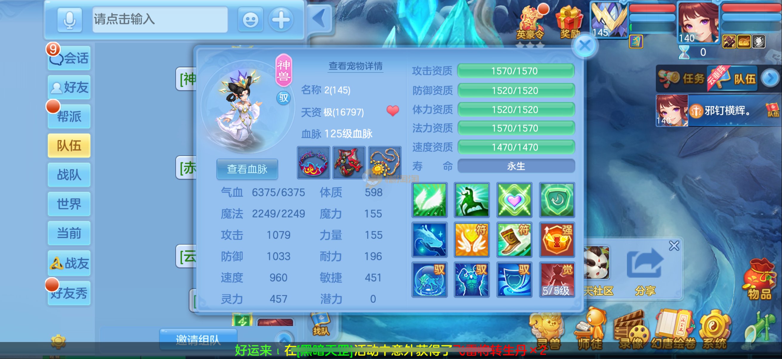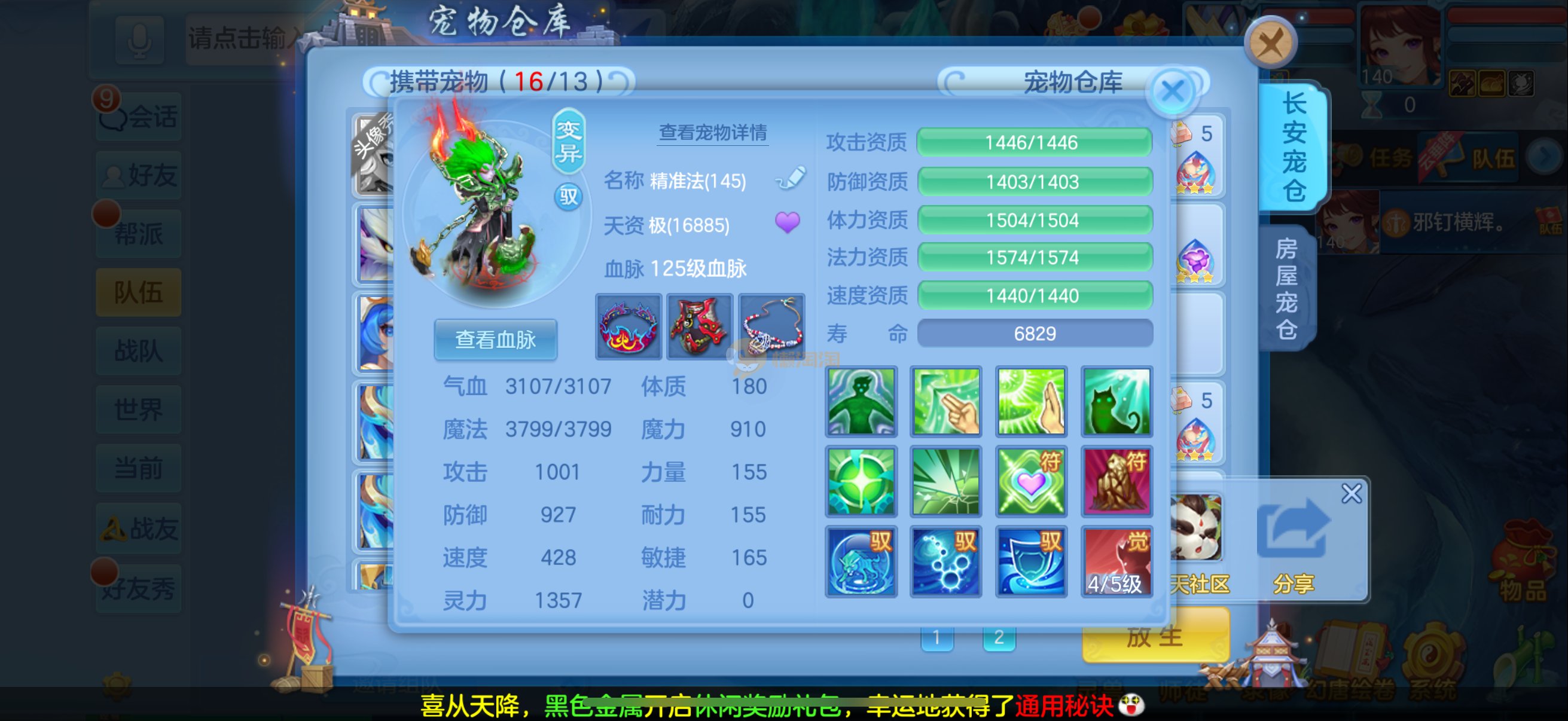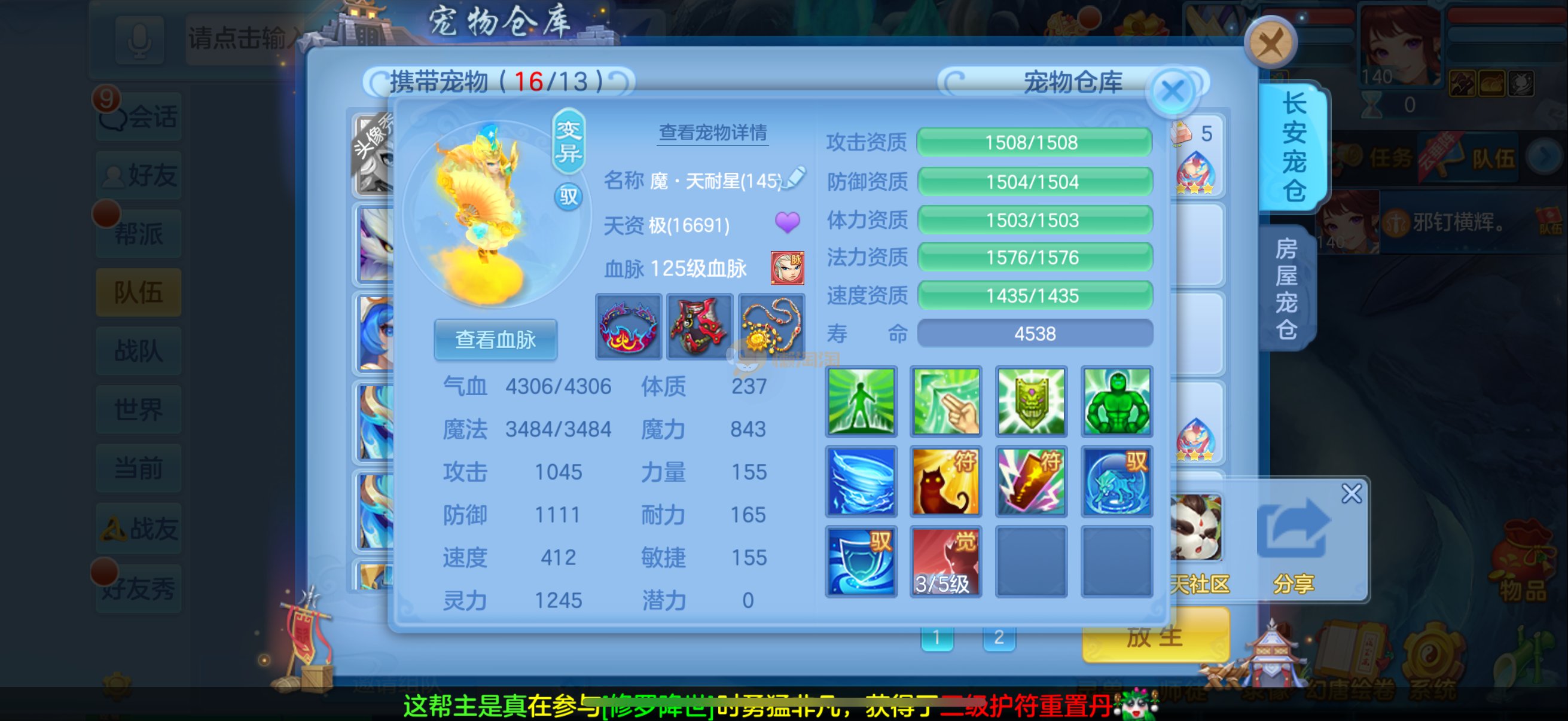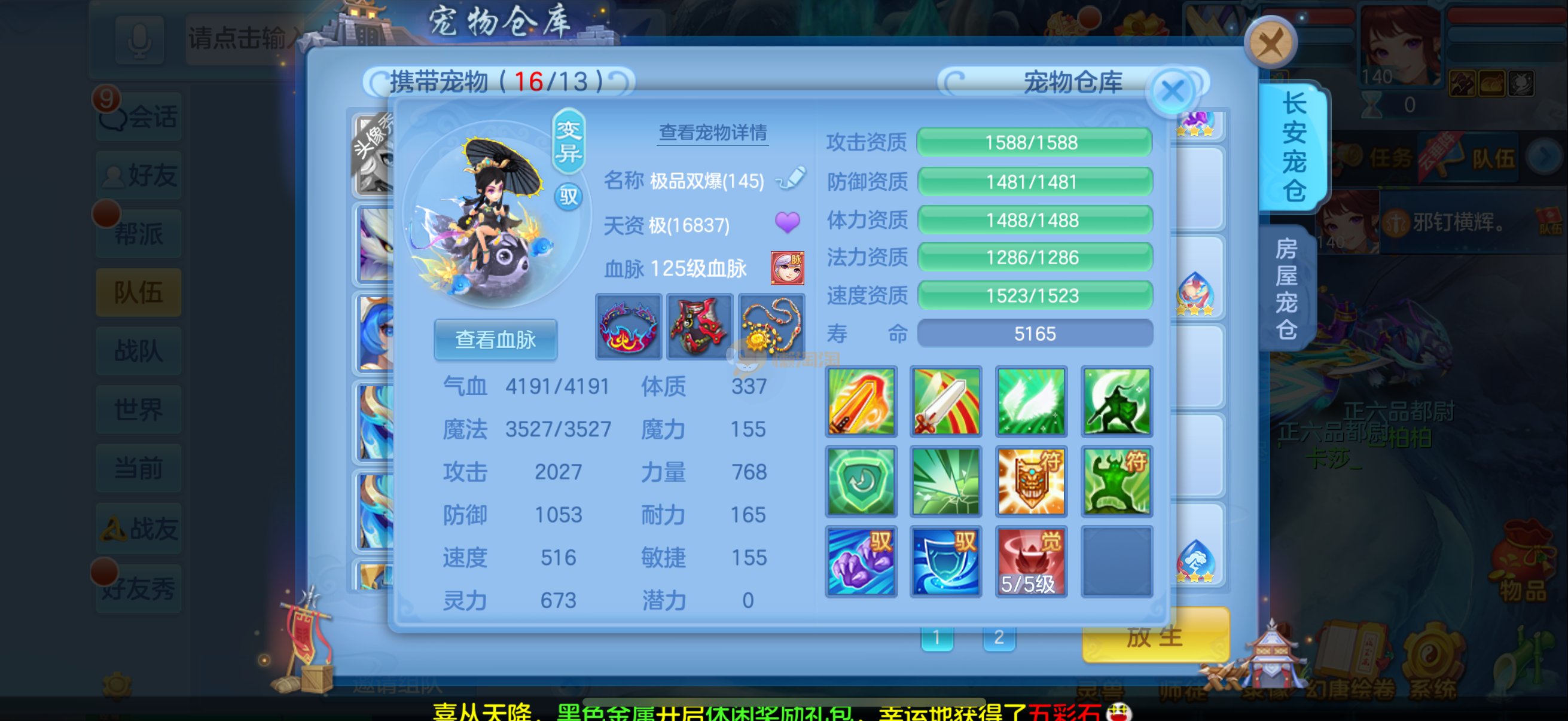 三仙带蛇宝宝齐14段天策4套属性点化完不变卡可以到2700伤
