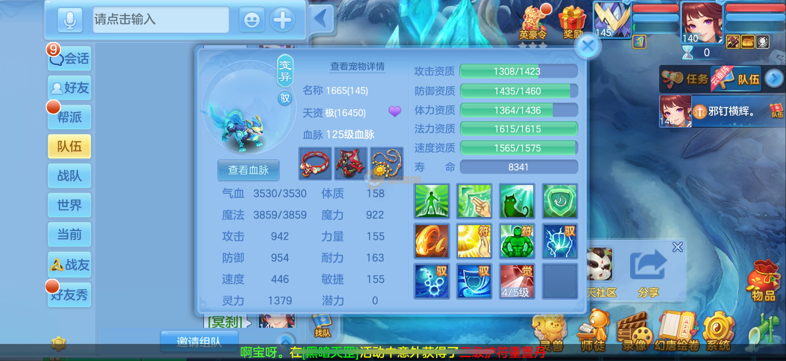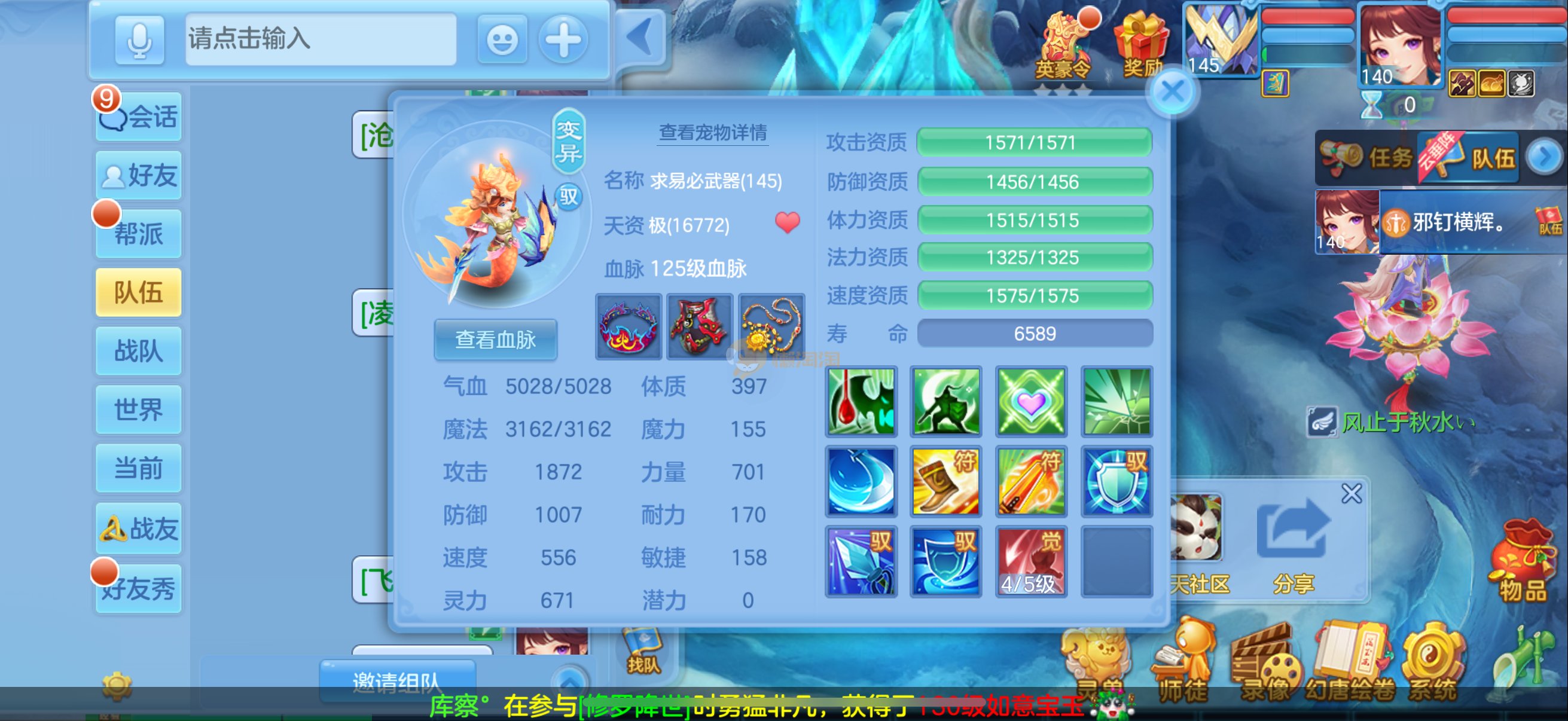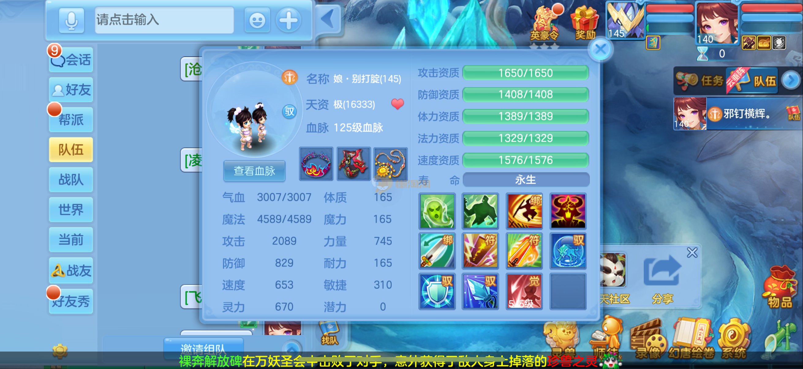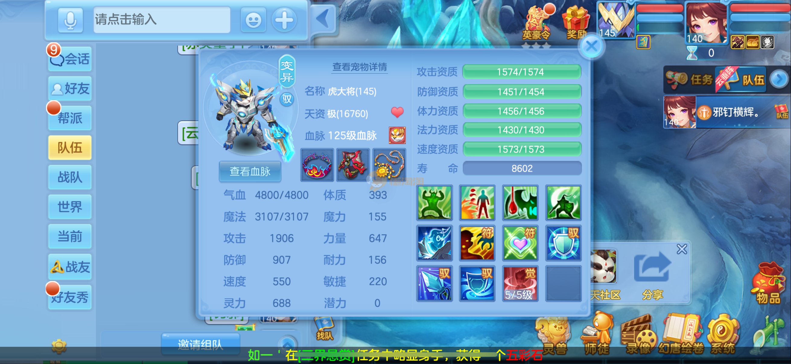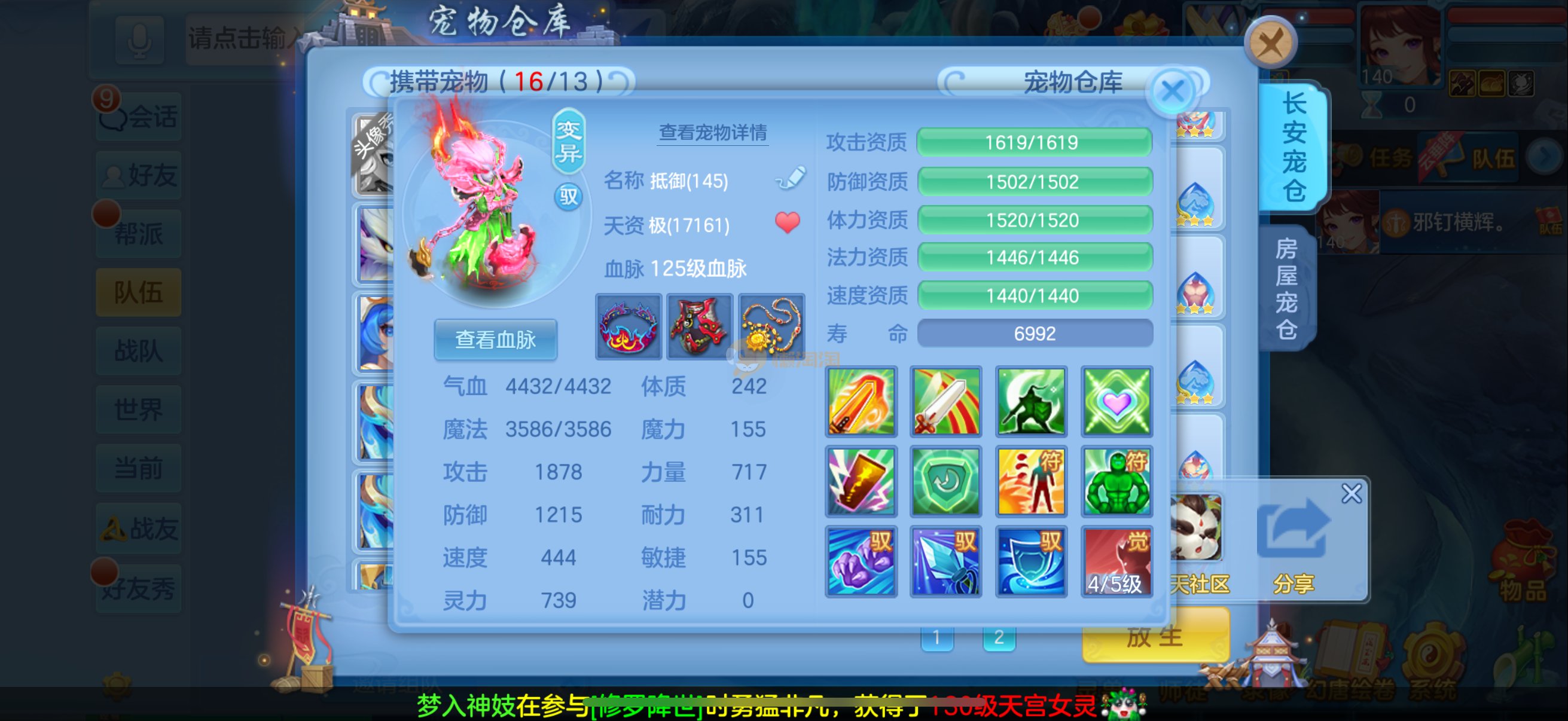 三仙带蛇宝宝齐14段天策4套属性点化完不变卡可以到2700伤