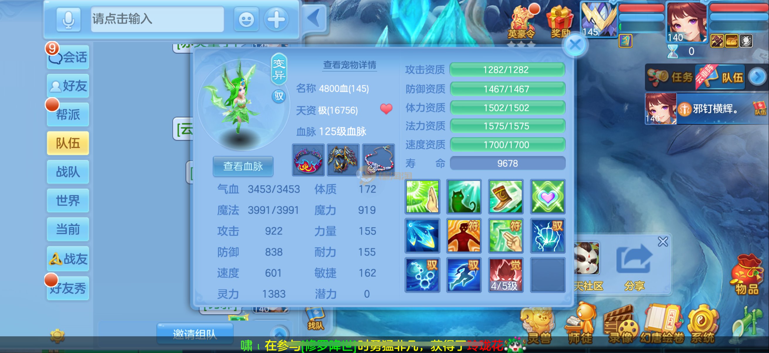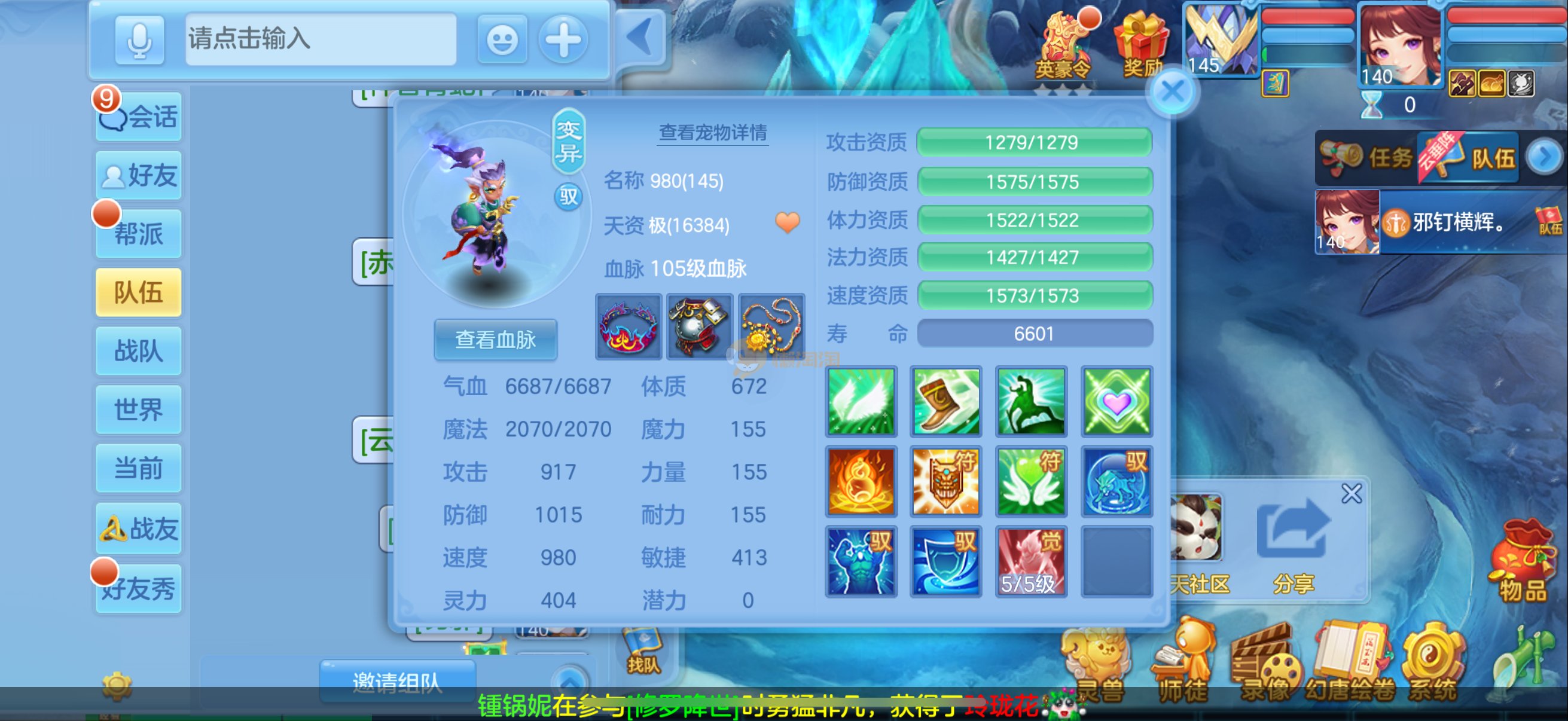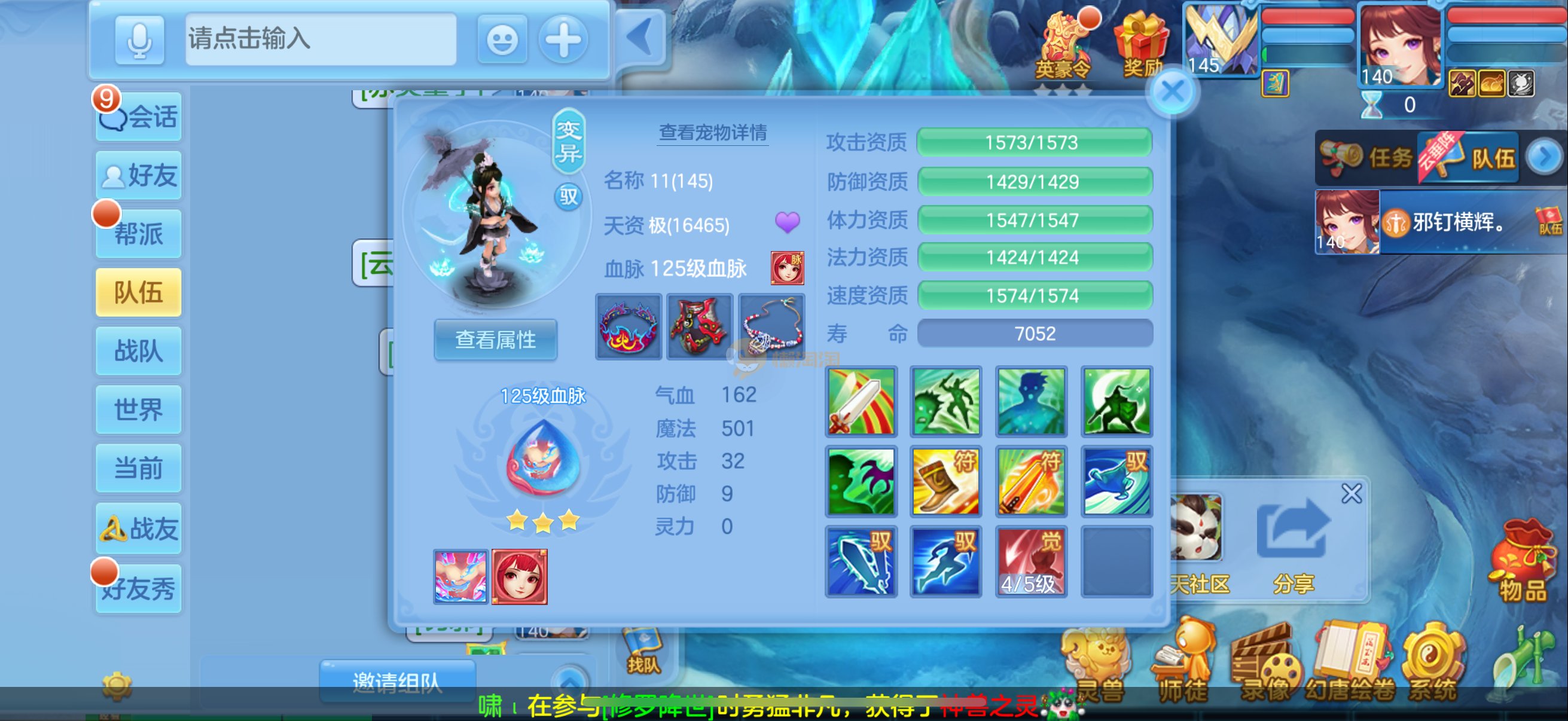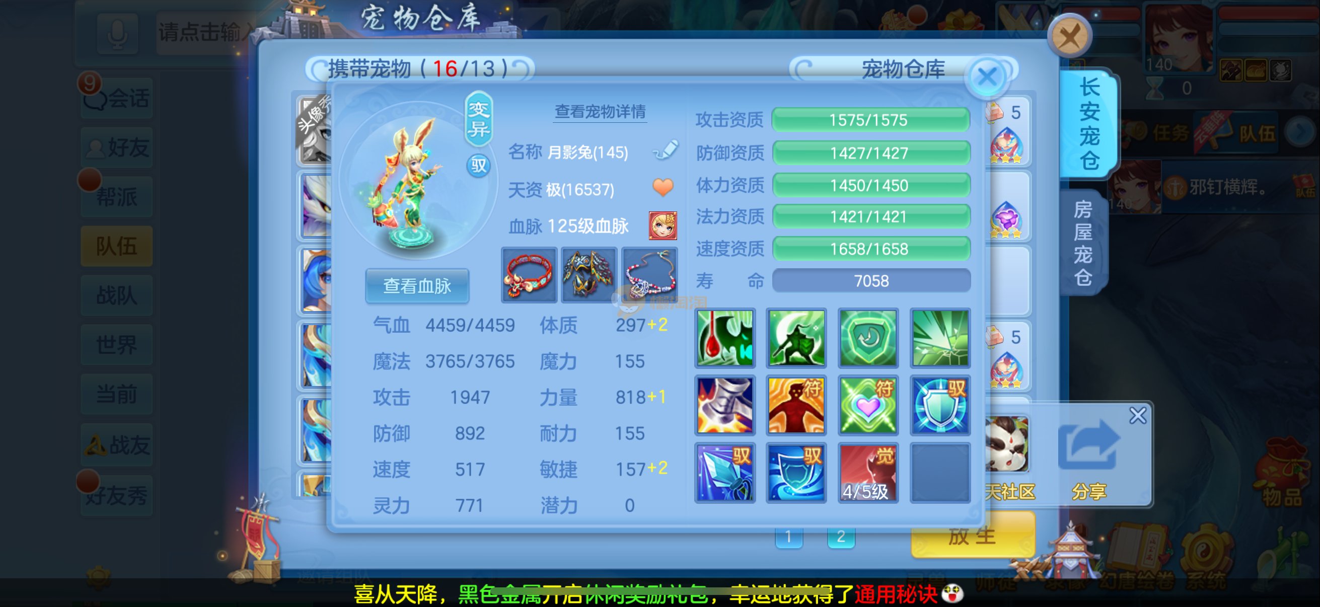 三仙带蛇宝宝齐14段天策4套属性点化完不变卡可以到2700伤