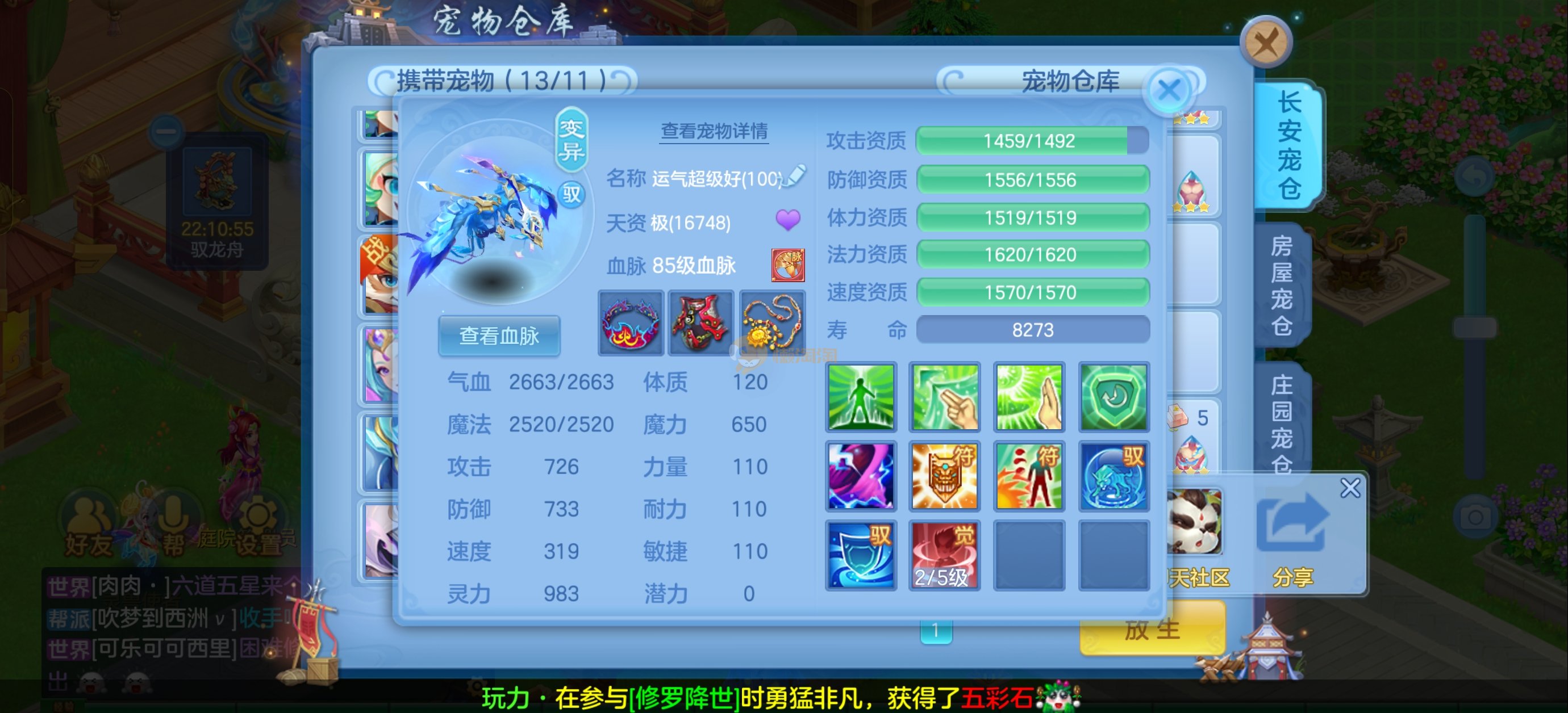 2025新区卡95级耀华,10段,带霸王龙坐骑,自己的庄园,内丹蛇,宝宝资质爆炸,8个专属血脉,仓库资源多。
